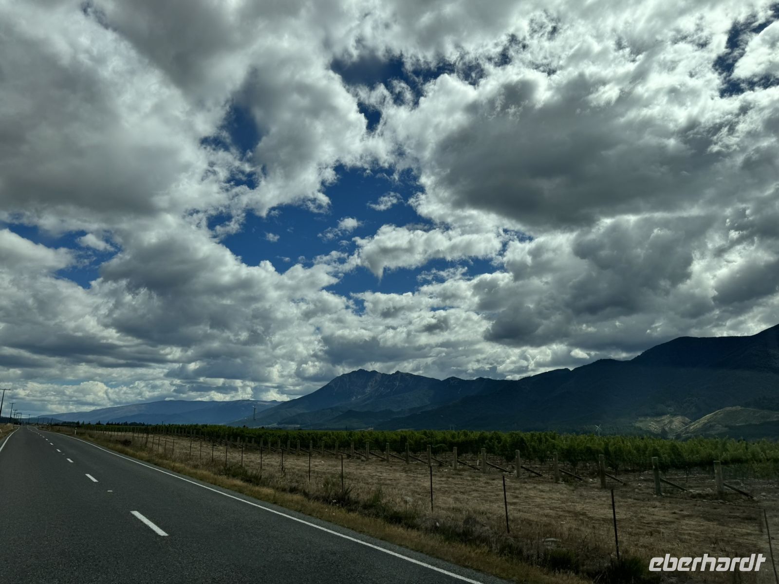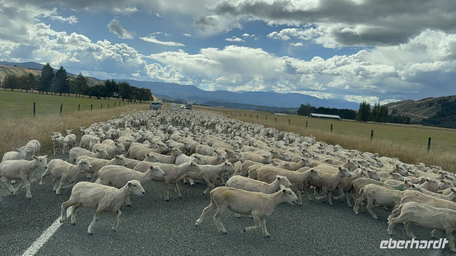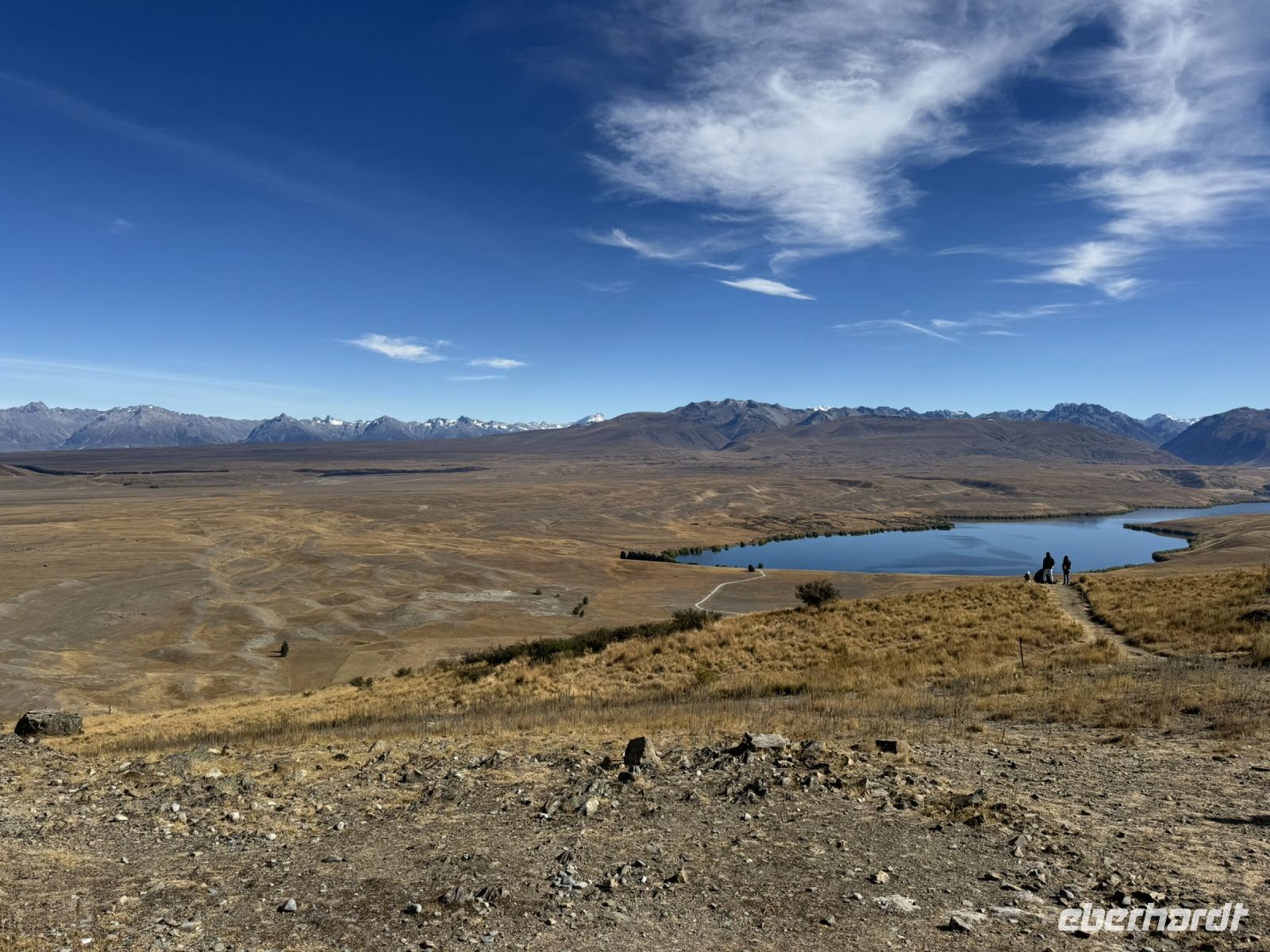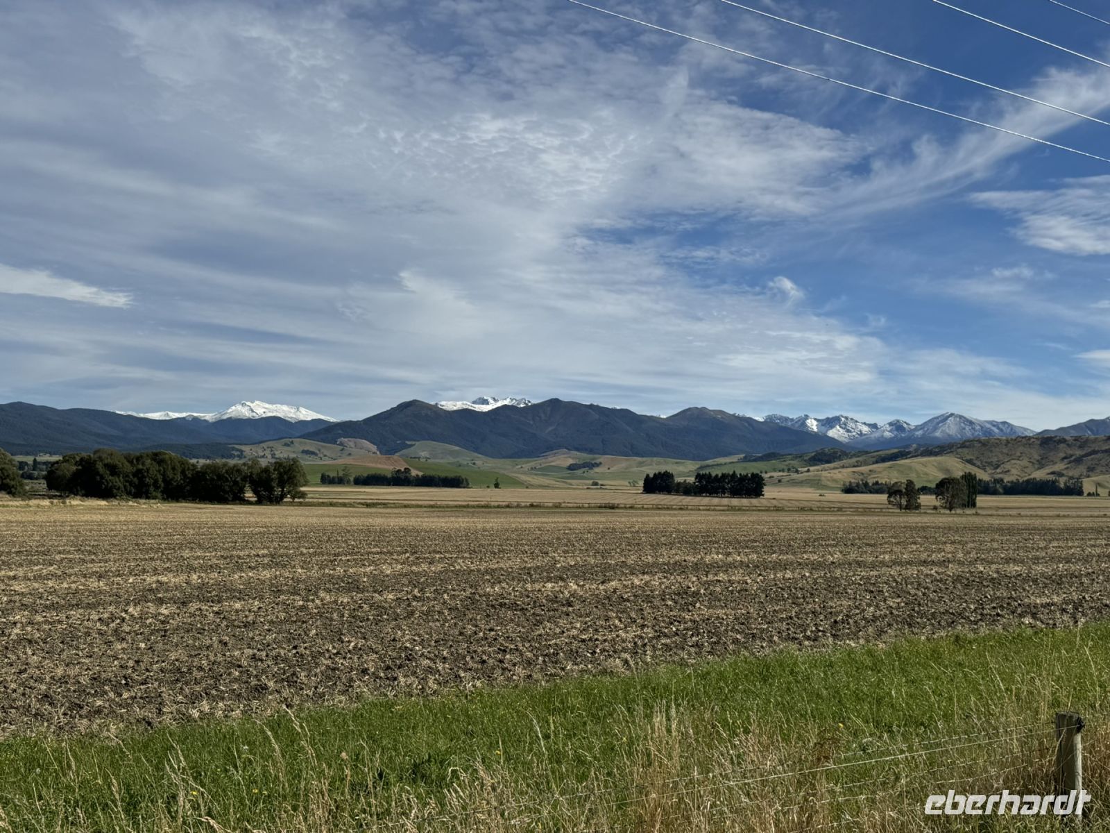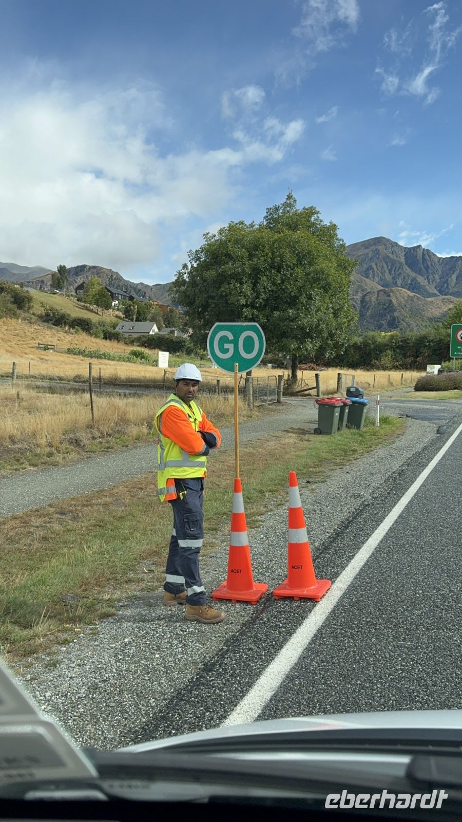 Dann sind wir bis 1.000 Meter Höhe gefahren und direkt am Crown Range Pass angekommen. Da konnte man die schneebedecken Südalpen sowie die Stadt Queenstown und den Flughafen sehen.