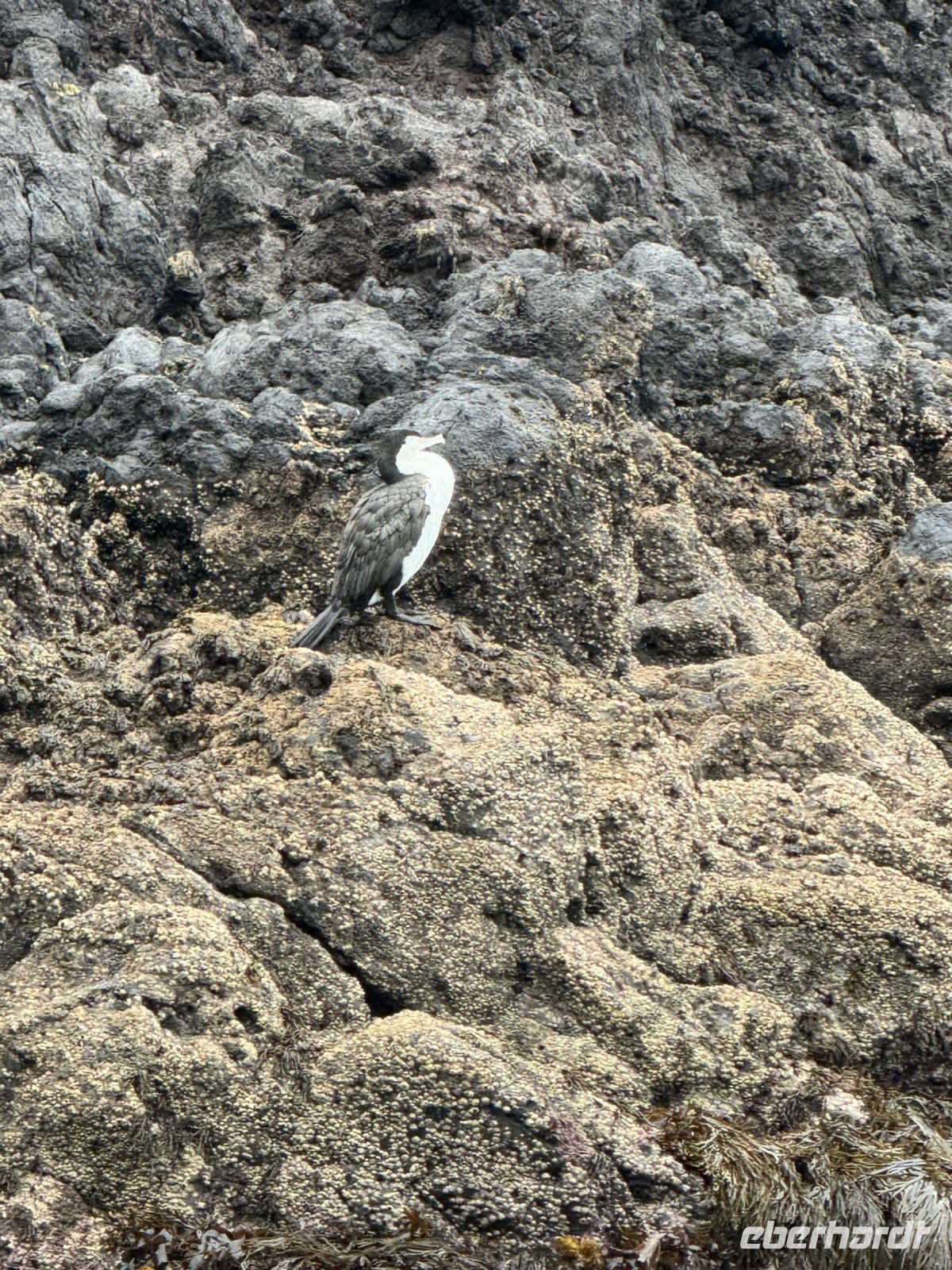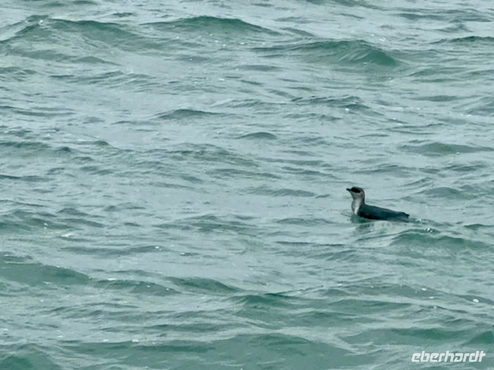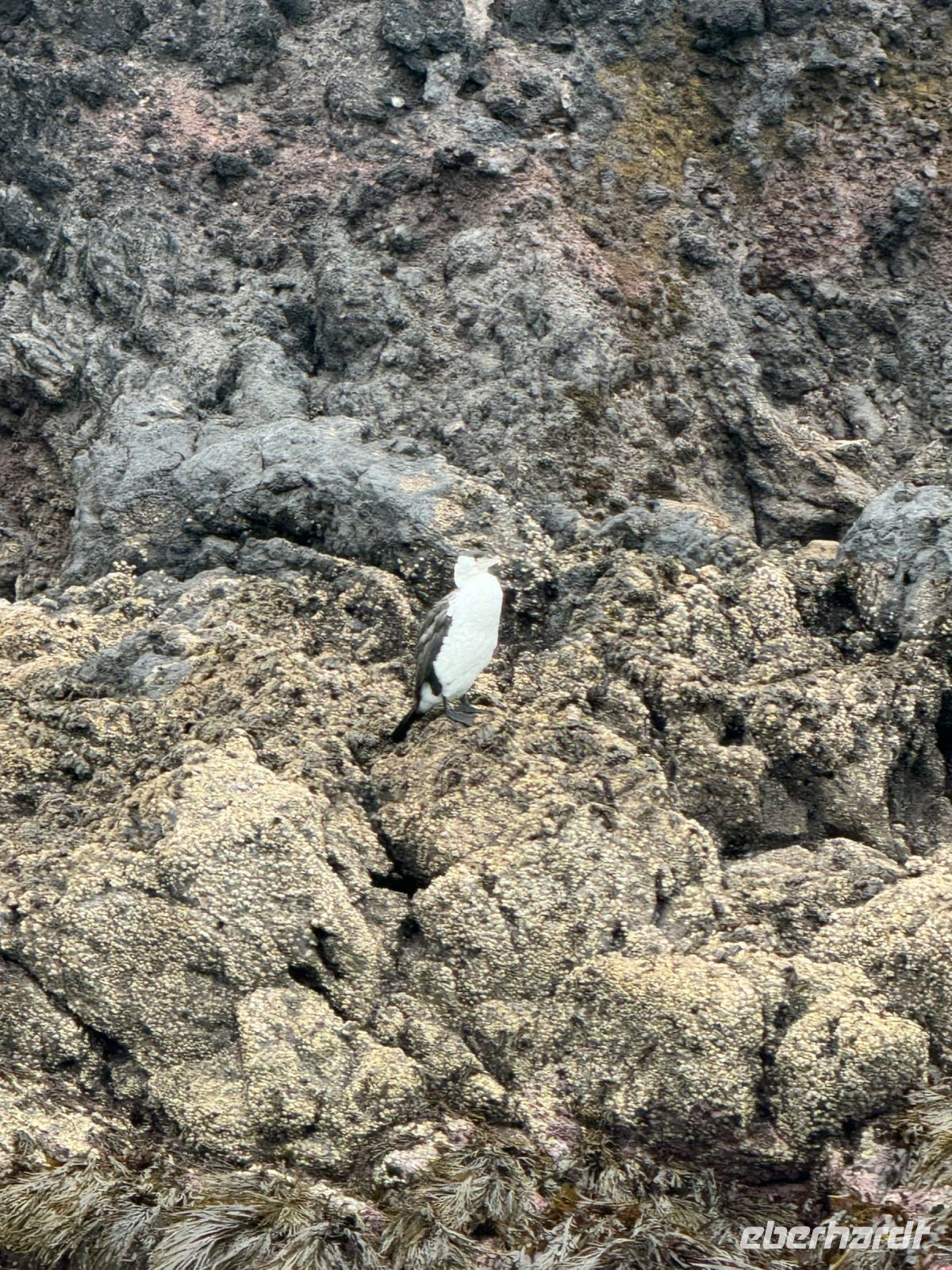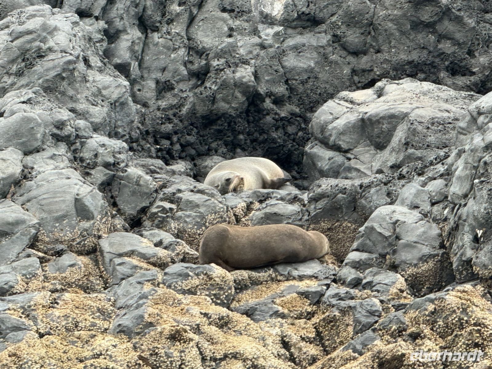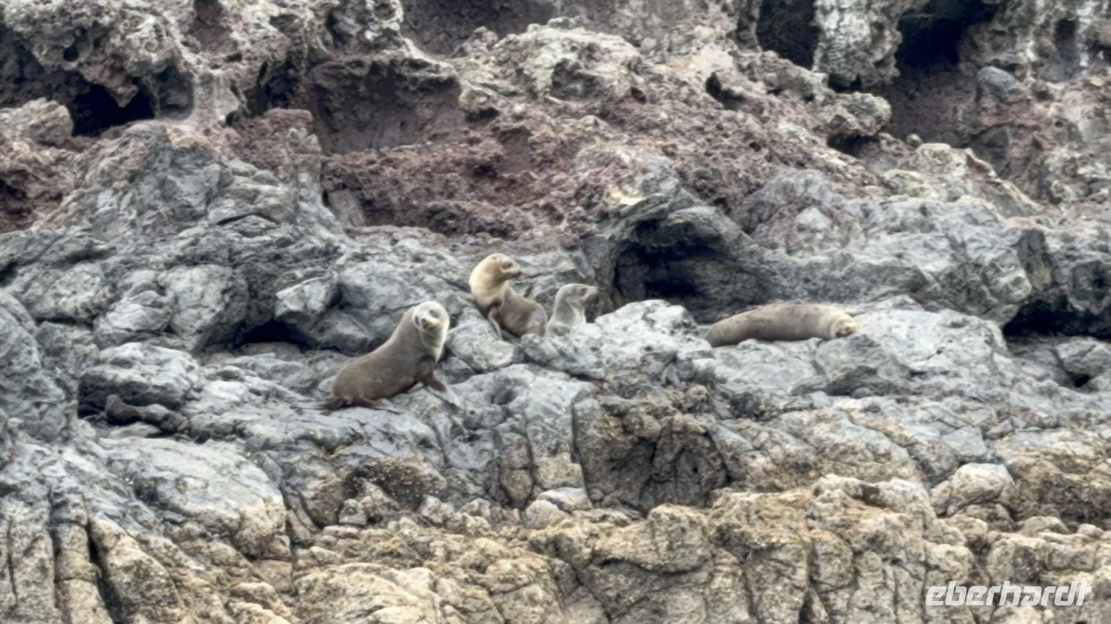 Obwohl der Himmel etwas bewölkt war, genossen wir angenehme Temperaturen und türkisfarbenes Wasser. Während wir entlang des alten Lavaverlaufs und der Höhlen fuhren, wurden wir von Delphinen begrüßt. Wir sahen außerdem Möwen, Kormorane, Seebären und Albatrosse, und später begegneten wir auch den seltenen Blauen Pinguinen. Sie kamen alle ganz nah an unser Boot heran, und wir erlebten ein unvergessliches Erlebnis.