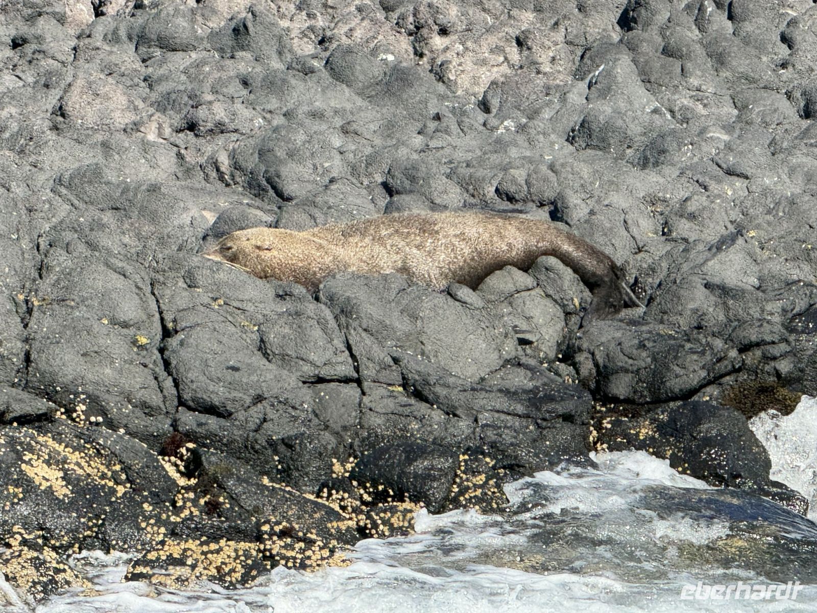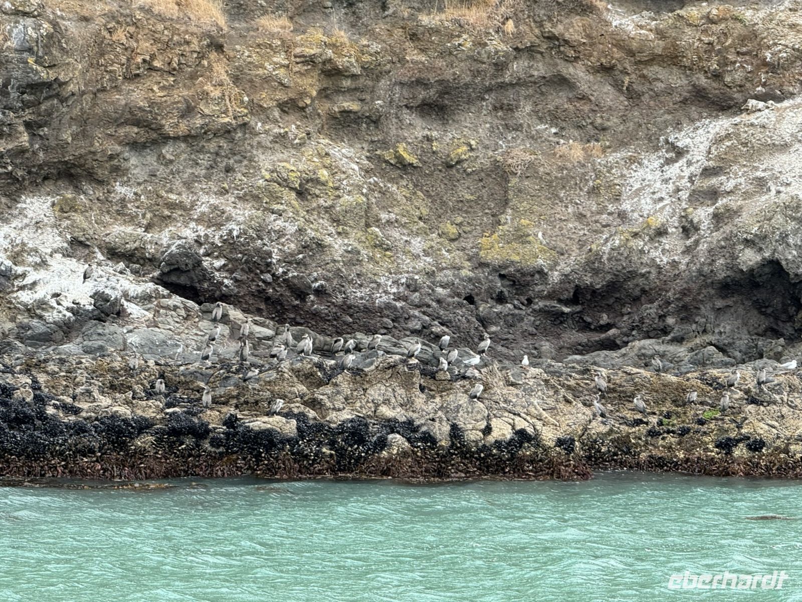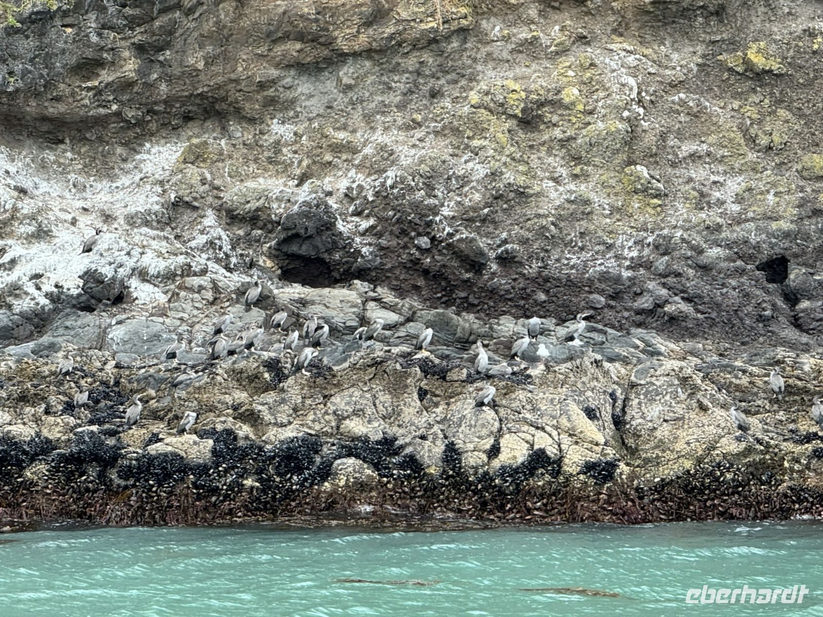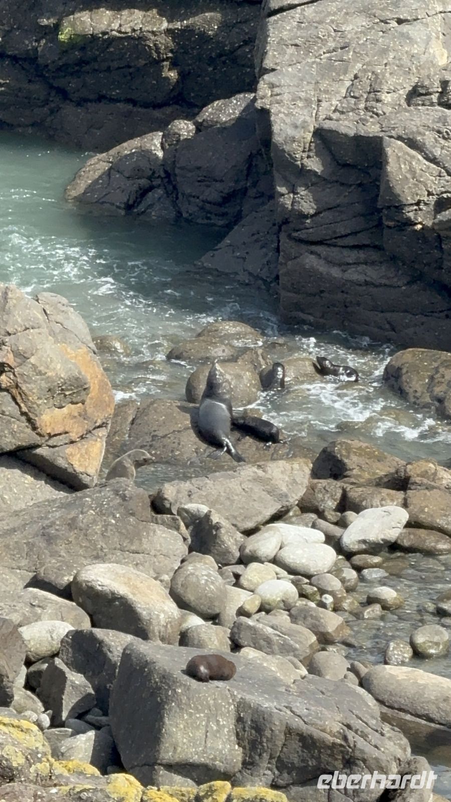 Obwohl der Himmel etwas bewölkt war, genossen wir angenehme Temperaturen und türkisfarbenes Wasser. Während wir entlang des alten Lavaverlaufs und der Höhlen fuhren, wurden wir von Delphinen begrüßt. Wir sahen außerdem Möwen, Kormorane, Seebären und Albatrosse, und später begegneten wir auch den seltenen Blauen Pinguinen. Sie kamen alle ganz nah an unser Boot heran, und wir erlebten ein unvergessliches Erlebnis.