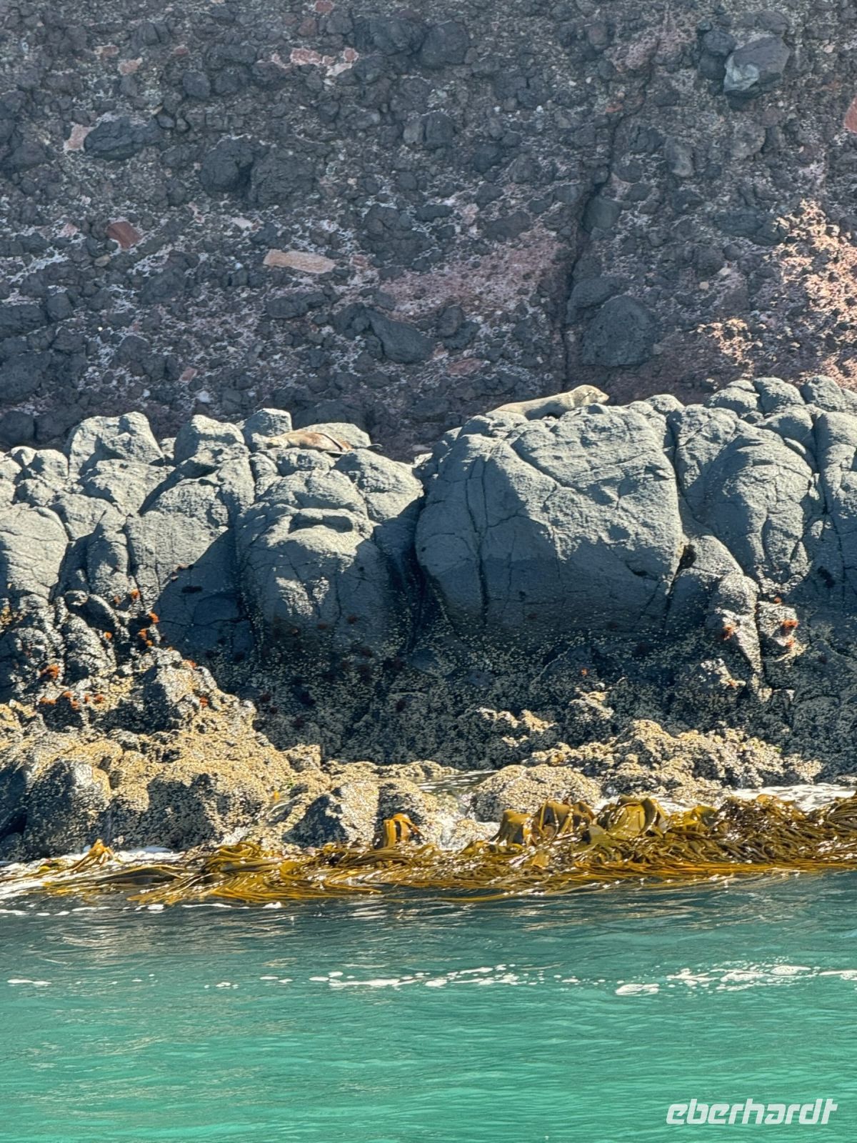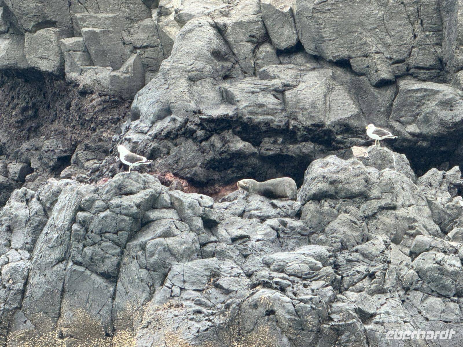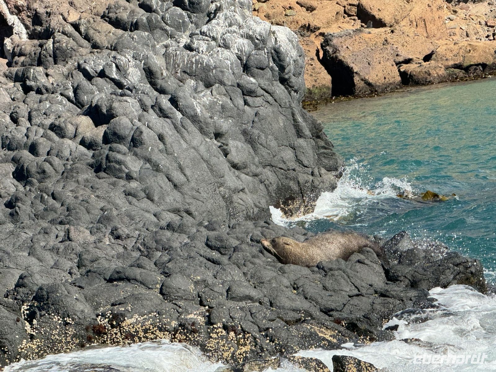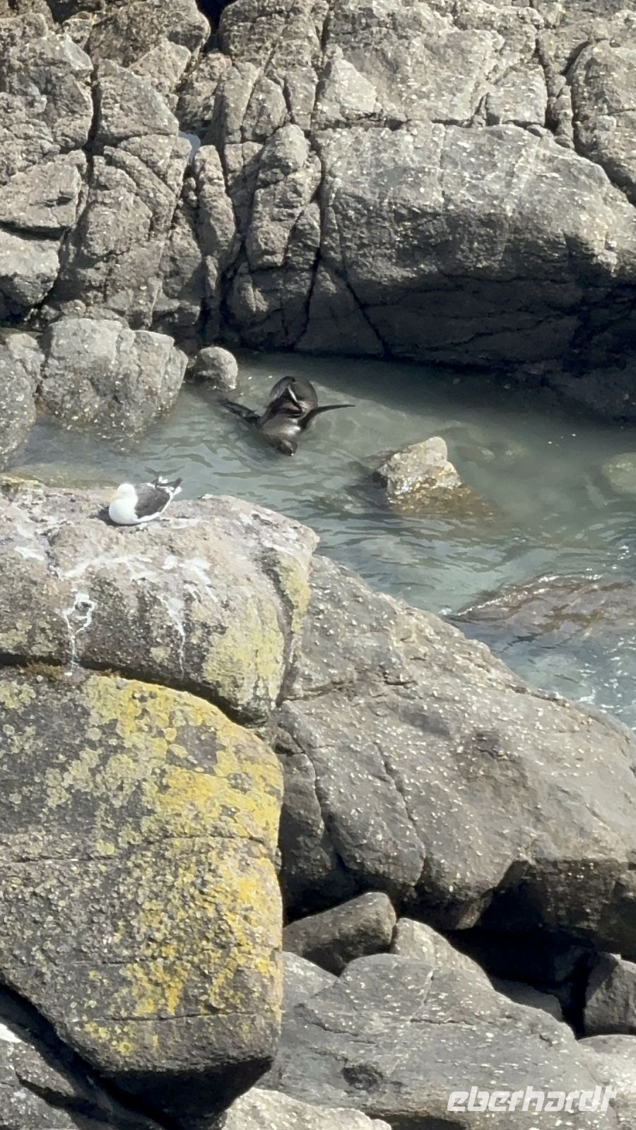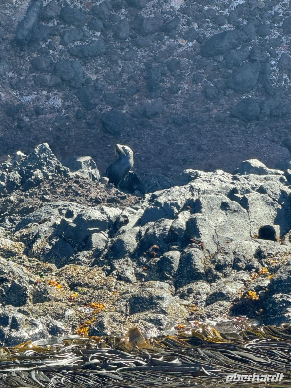 Obwohl der Himmel etwas bewölkt war, genossen wir angenehme Temperaturen und türkisfarbenes Wasser. Während wir entlang des alten Lavaverlaufs und der Höhlen fuhren, wurden wir von Delphinen begrüßt. Wir sahen außerdem Möwen, Kormorane, Seebären und Albatrosse, und später begegneten wir auch den seltenen Blauen Pinguinen. Sie kamen alle ganz nah an unser Boot heran, und wir erlebten ein unvergessliches Erlebnis.