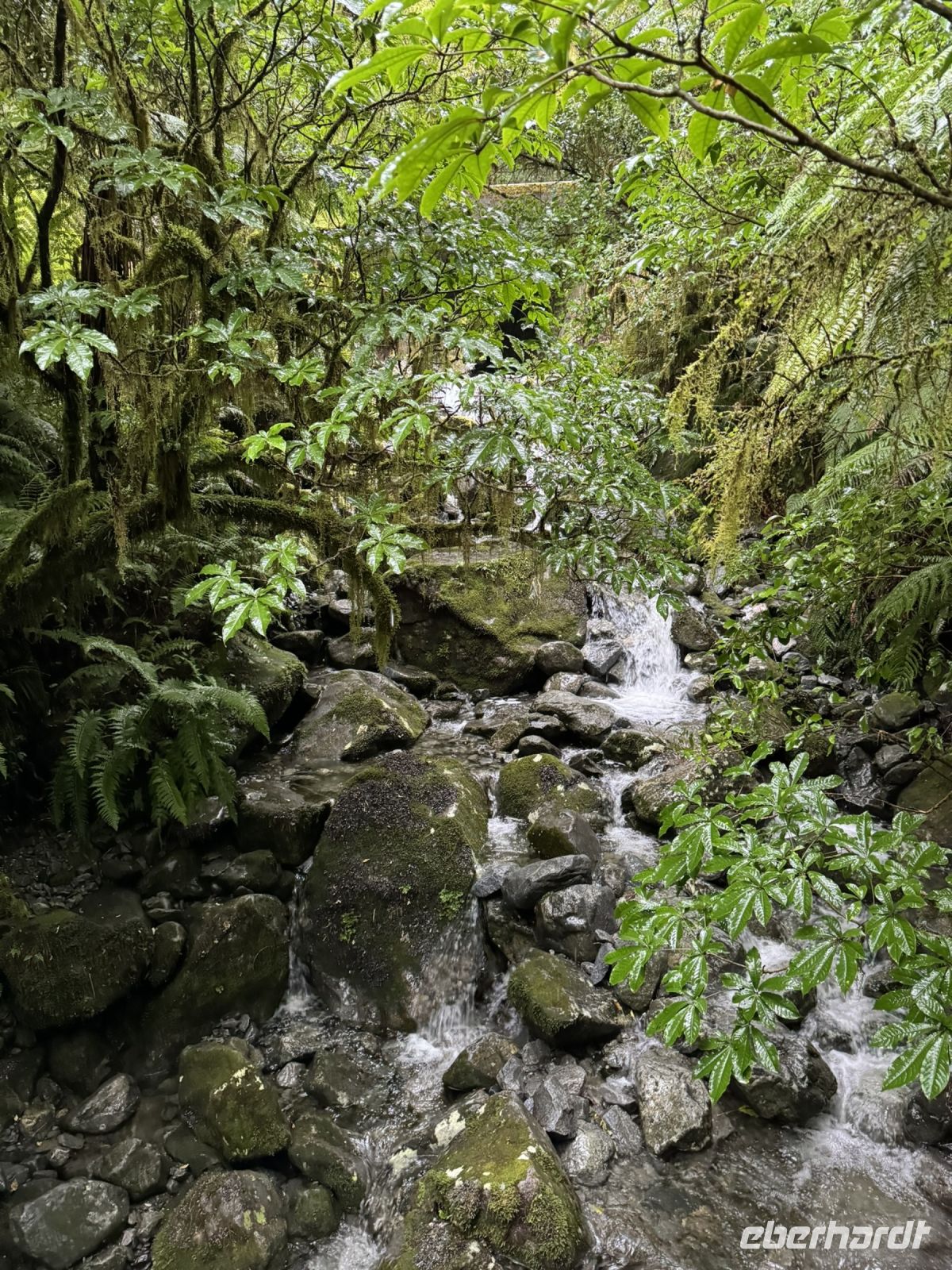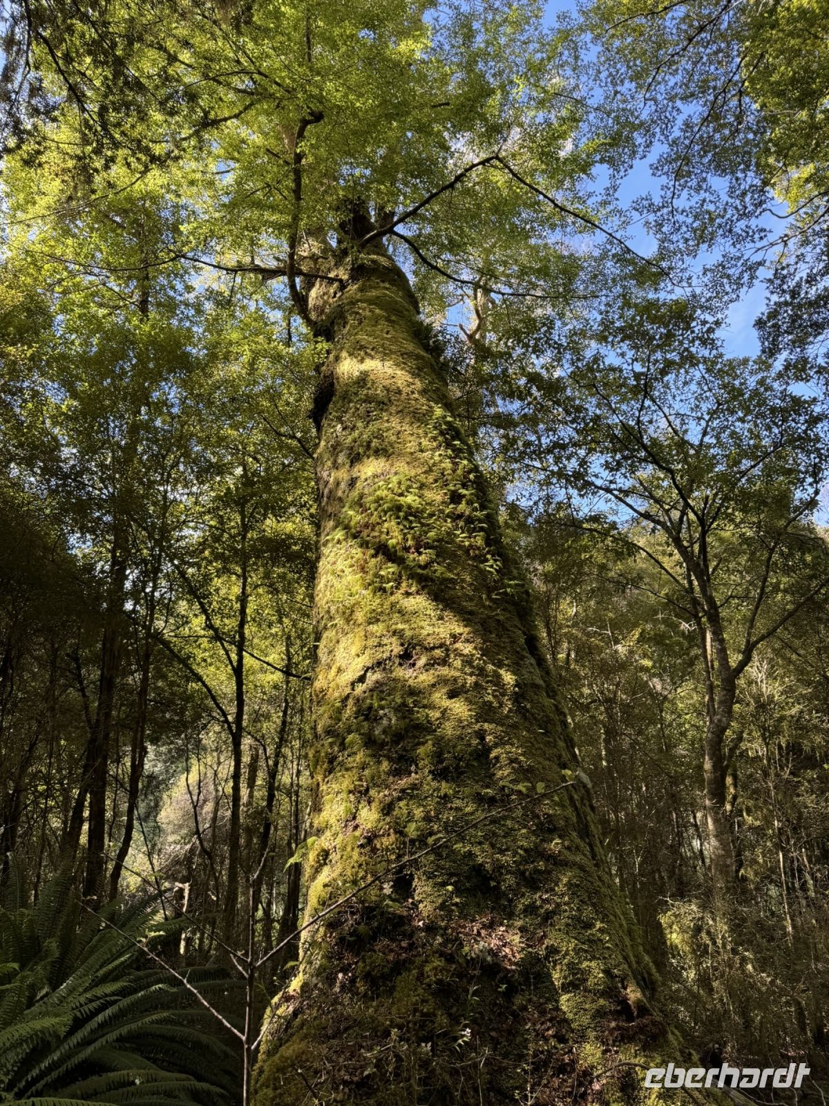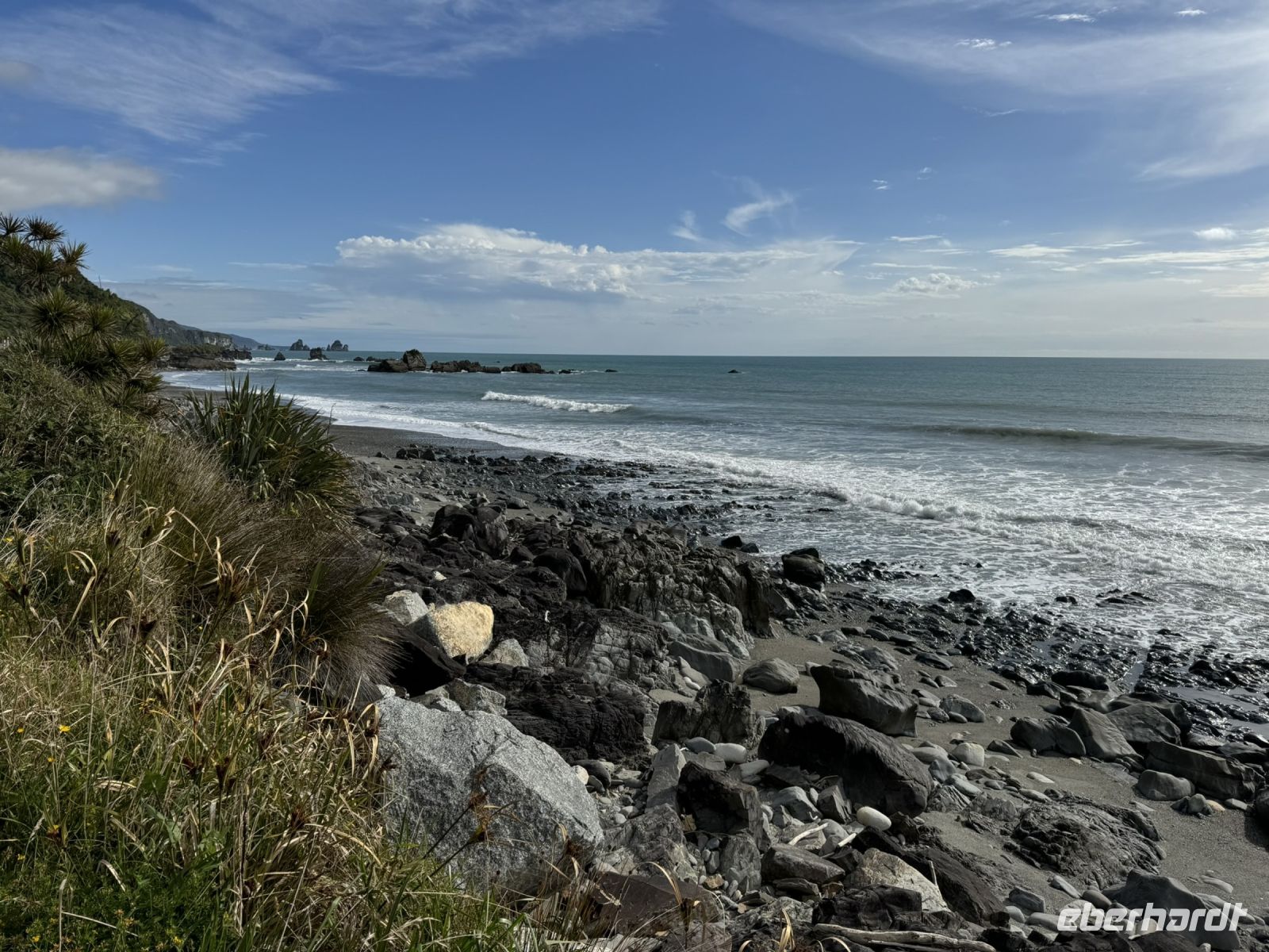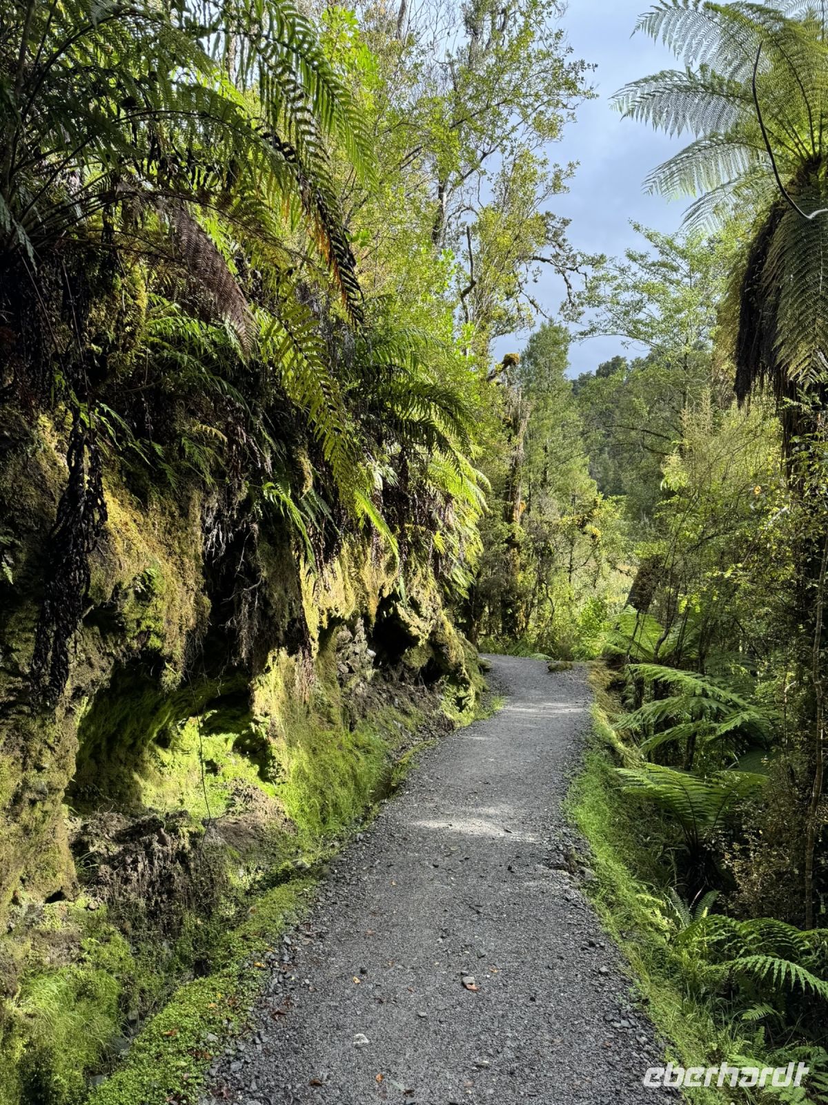 Wir fuhren weiter entlang der Westküste und machten unterwegs verschiedene Stopps, um die Fels-Formationen zu fotografieren, sowie zwei kleine Wanderung. Das erste war Trauman, in den gingen wir langsam runter zur Küstenlinie und fanden auf unserem Weg einen imposanten nördlichen Rata Baum sowie einen tollen Strand mit kleinen Wasserfällen.