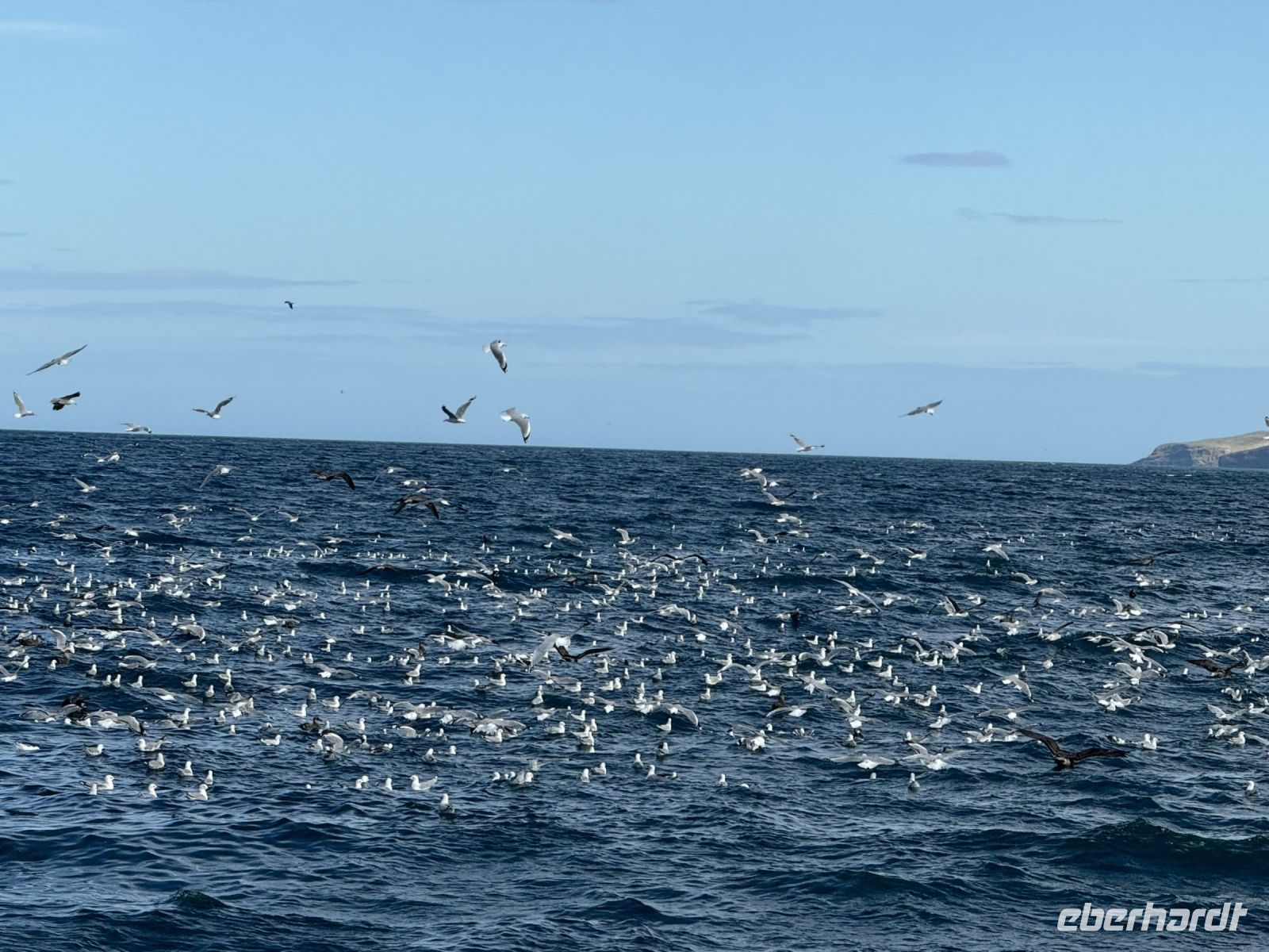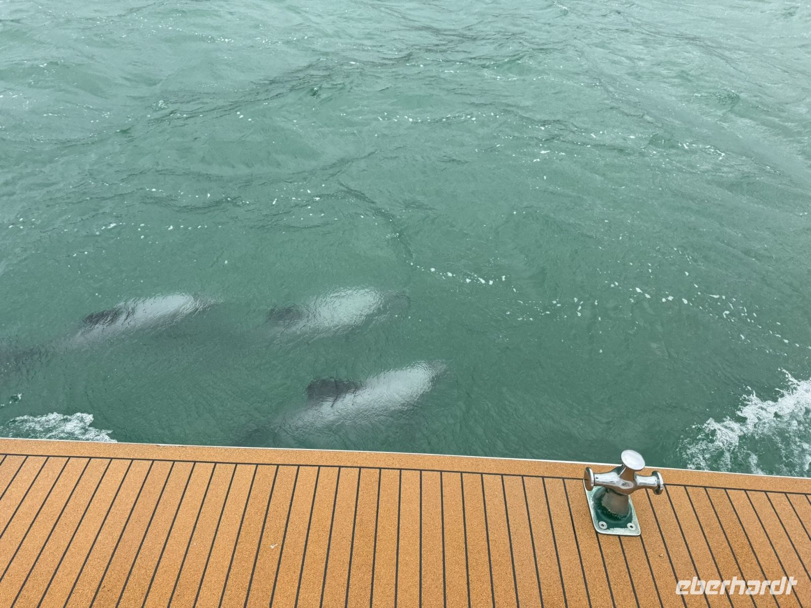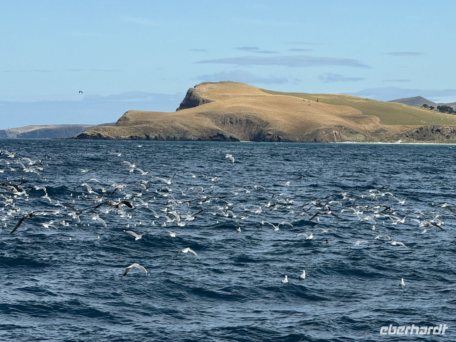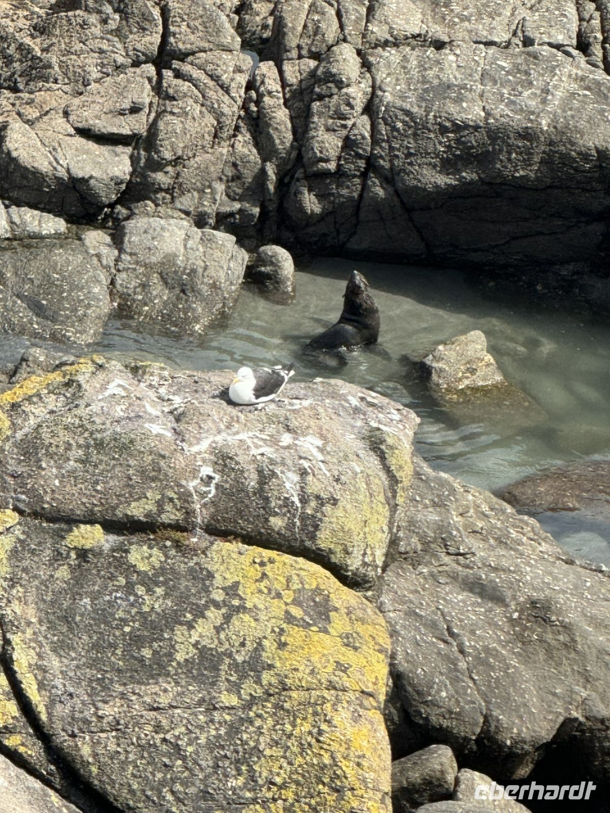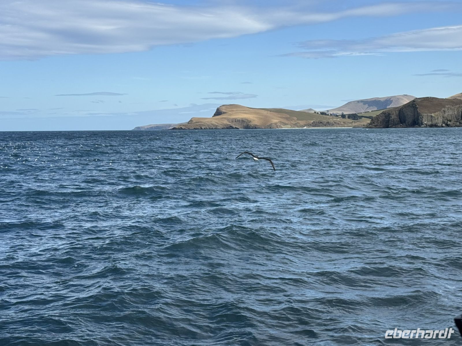 Anschließend machten wir eine Bootstour mit der Monarch durch die Bucht und konnten verschiedene Albatros Arten, Pinguine, Seelöwen, Seebären, Delphine und Kormorane bei traumhaftem Wetter und klarem Himmel sehen!
