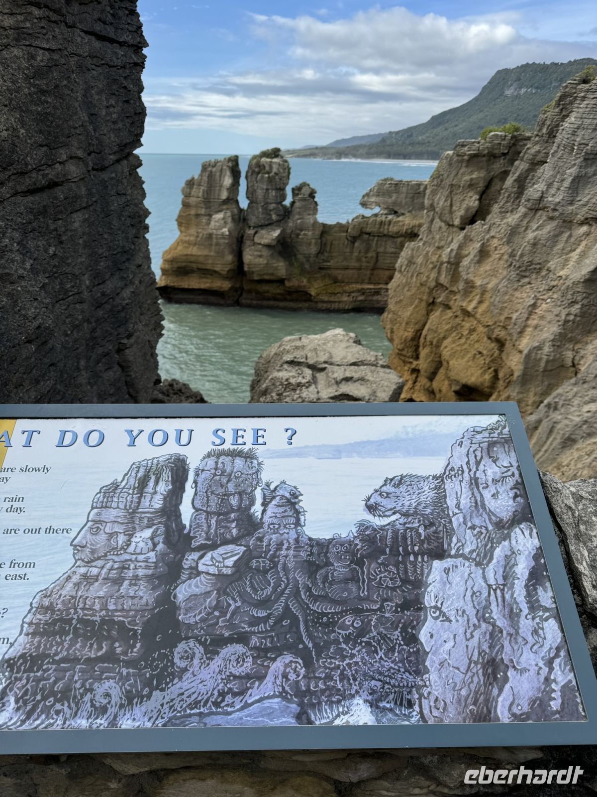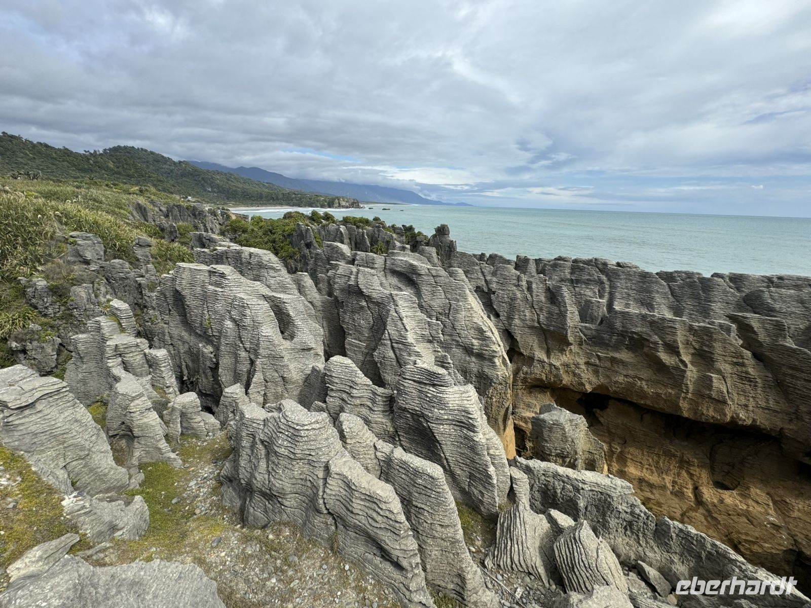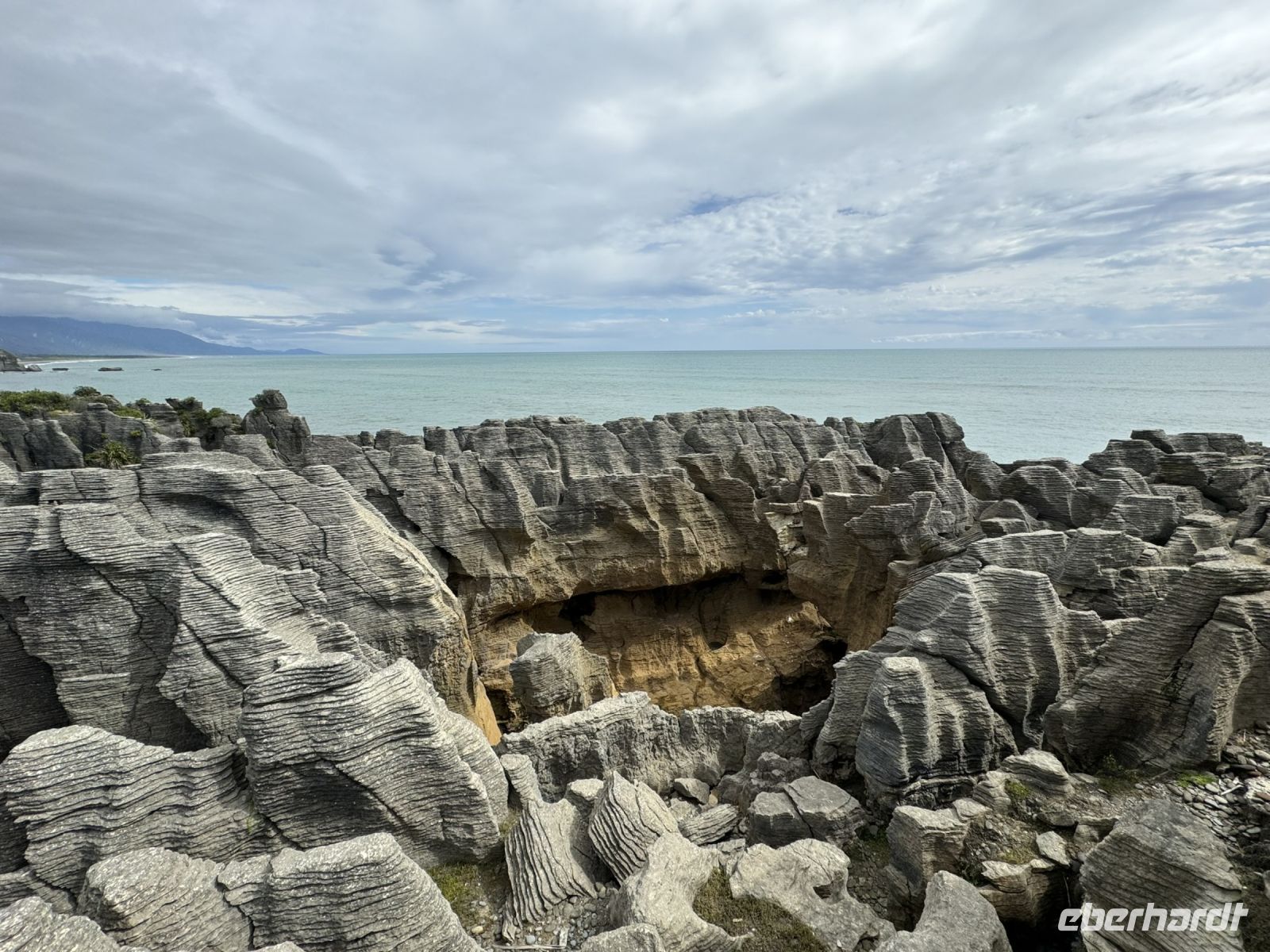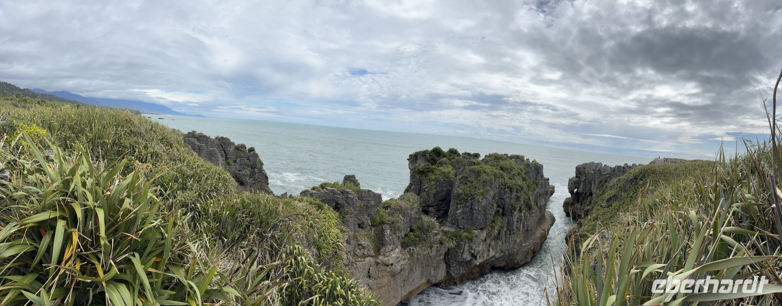 Die zweite Wanderung ging zwischen die Pancakes Rocks mit dem Meeresrauschen und unterschiedlichen Perspektiven der Küstenlinie.