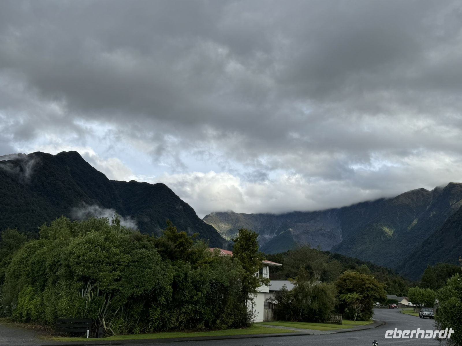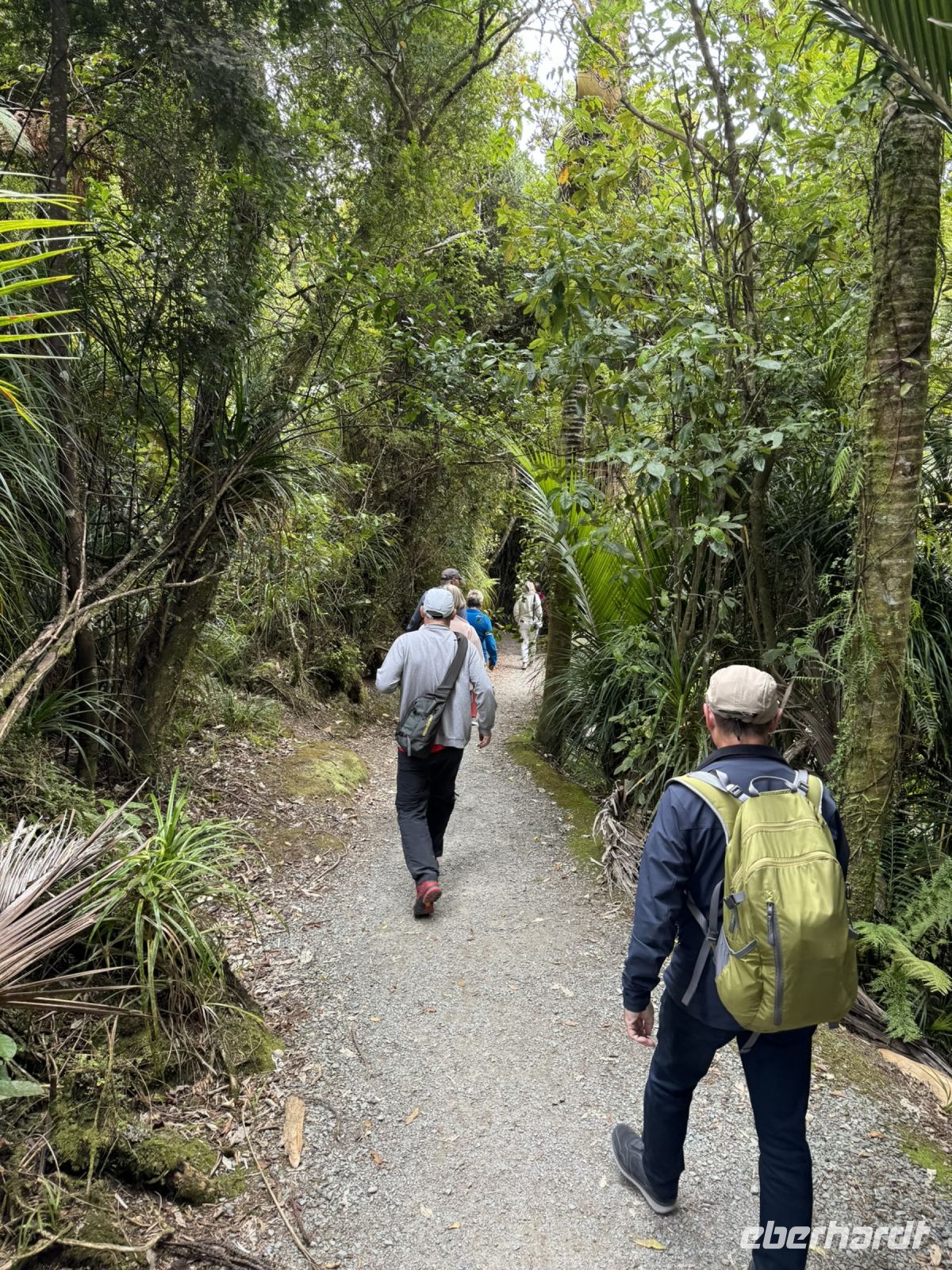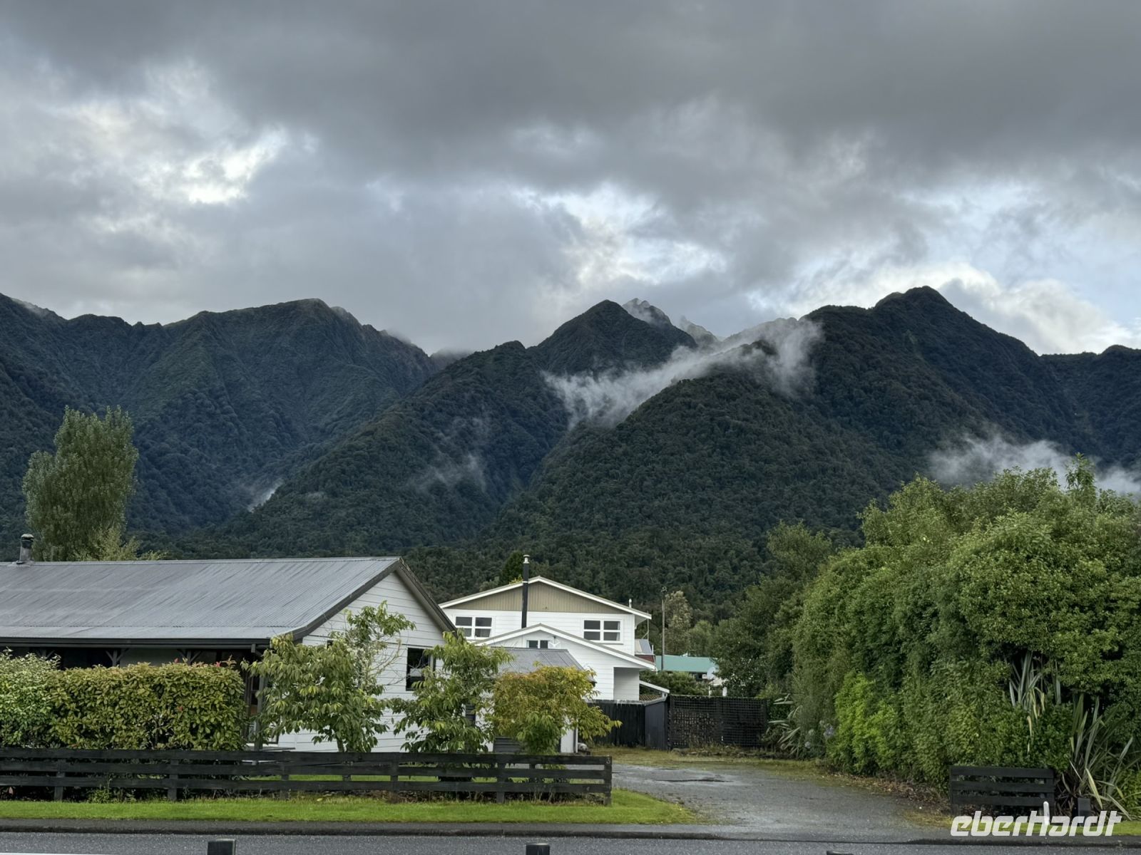 Die Fahrt ging weiter nach Fox, wo wir in unser Motel eingecheckt haben und kurze Minuten später zum Lake Matheson gefahren sind. Hier machten wir eine schöne Wanderung durch den Regenwald mit richtigem Regen. Obwohl wir in die richtige Richtung geschaut haben, konnte man manchmal nur ein Teil der Aussicht erkennen…natürlich so ist die Natur! Unsere gute Stimmung bringt die Sonne wieder und wir hatten viel Spaß.