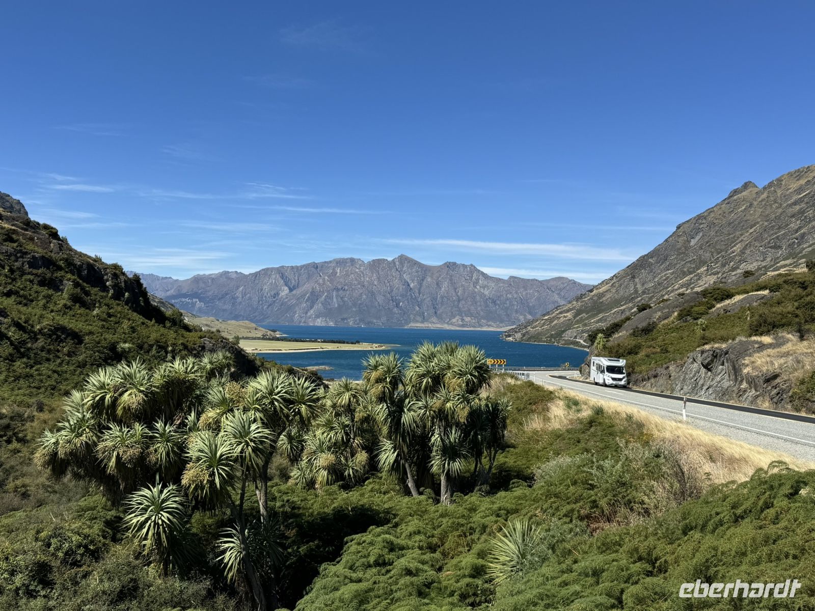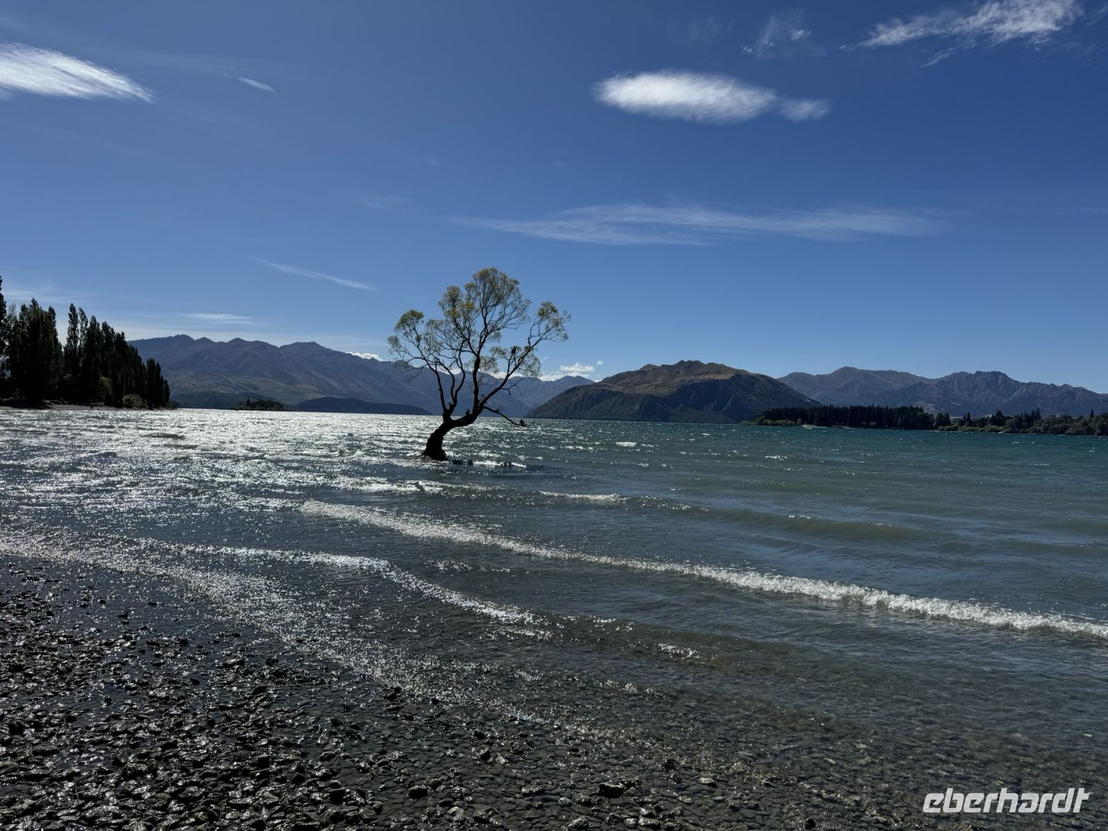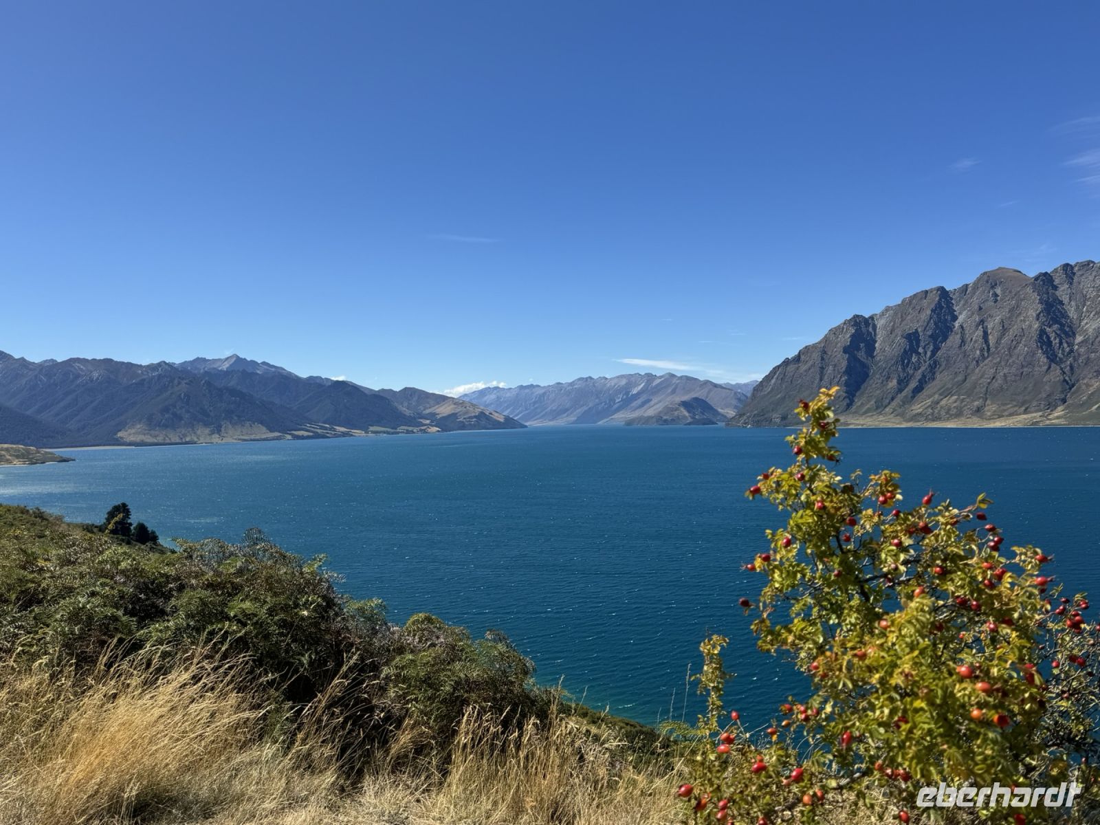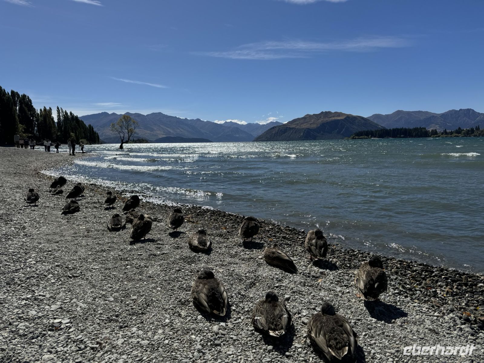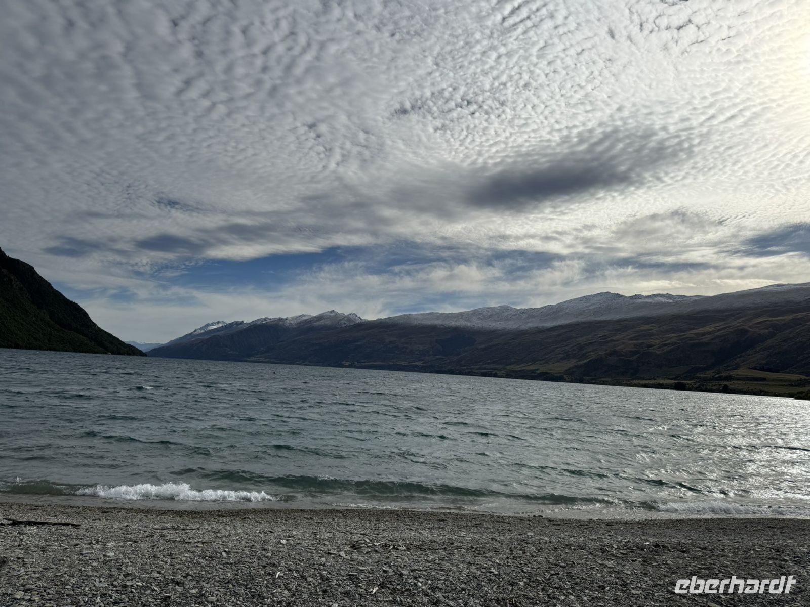 Danach hielten wir am Wanaka-See und nur weniger Meter weiter am Hawea-See. Unterwegs machten wir verschiedene Fotostopps bis nach Wanaka, wo wir unser Motel fanden.