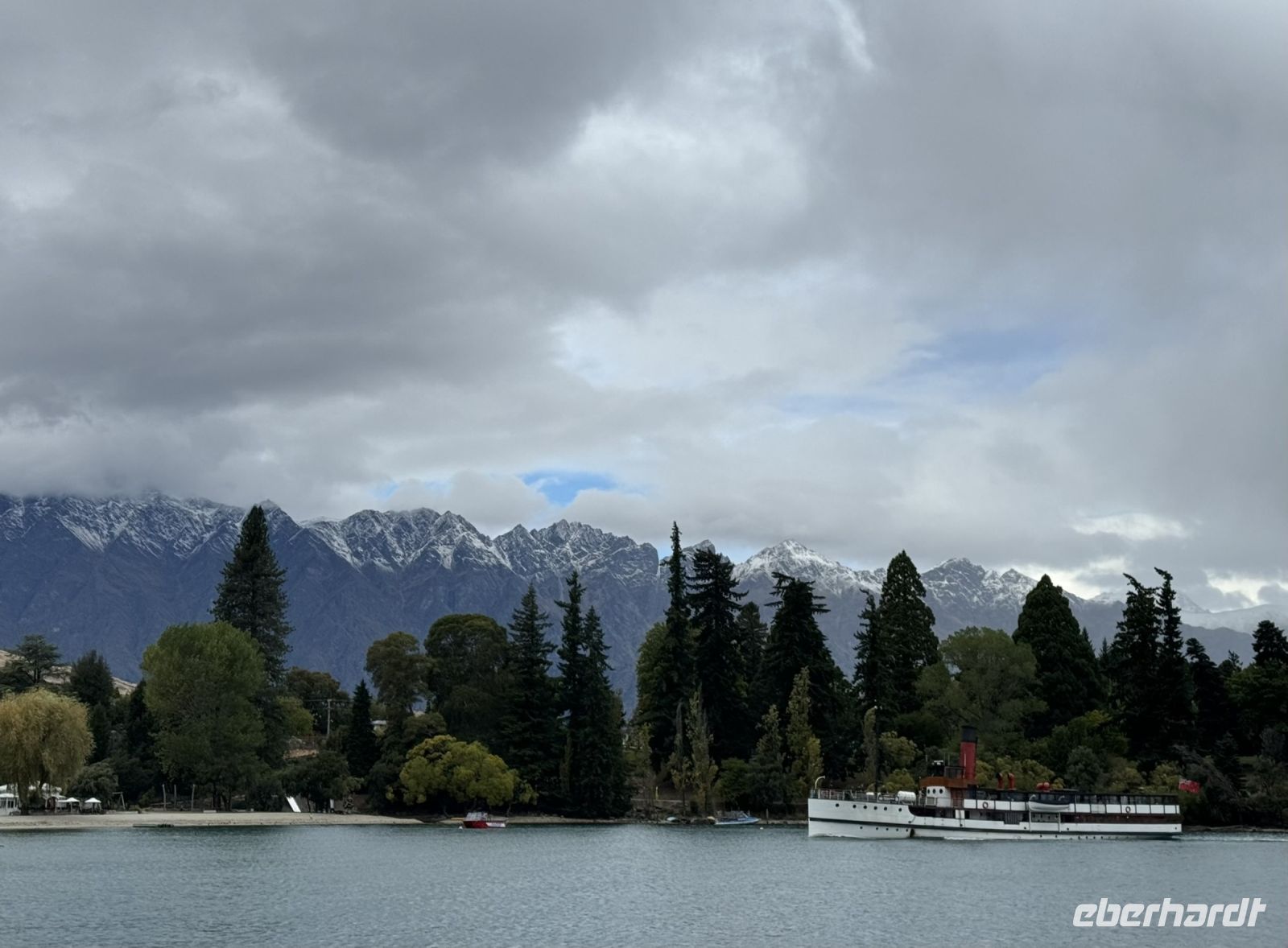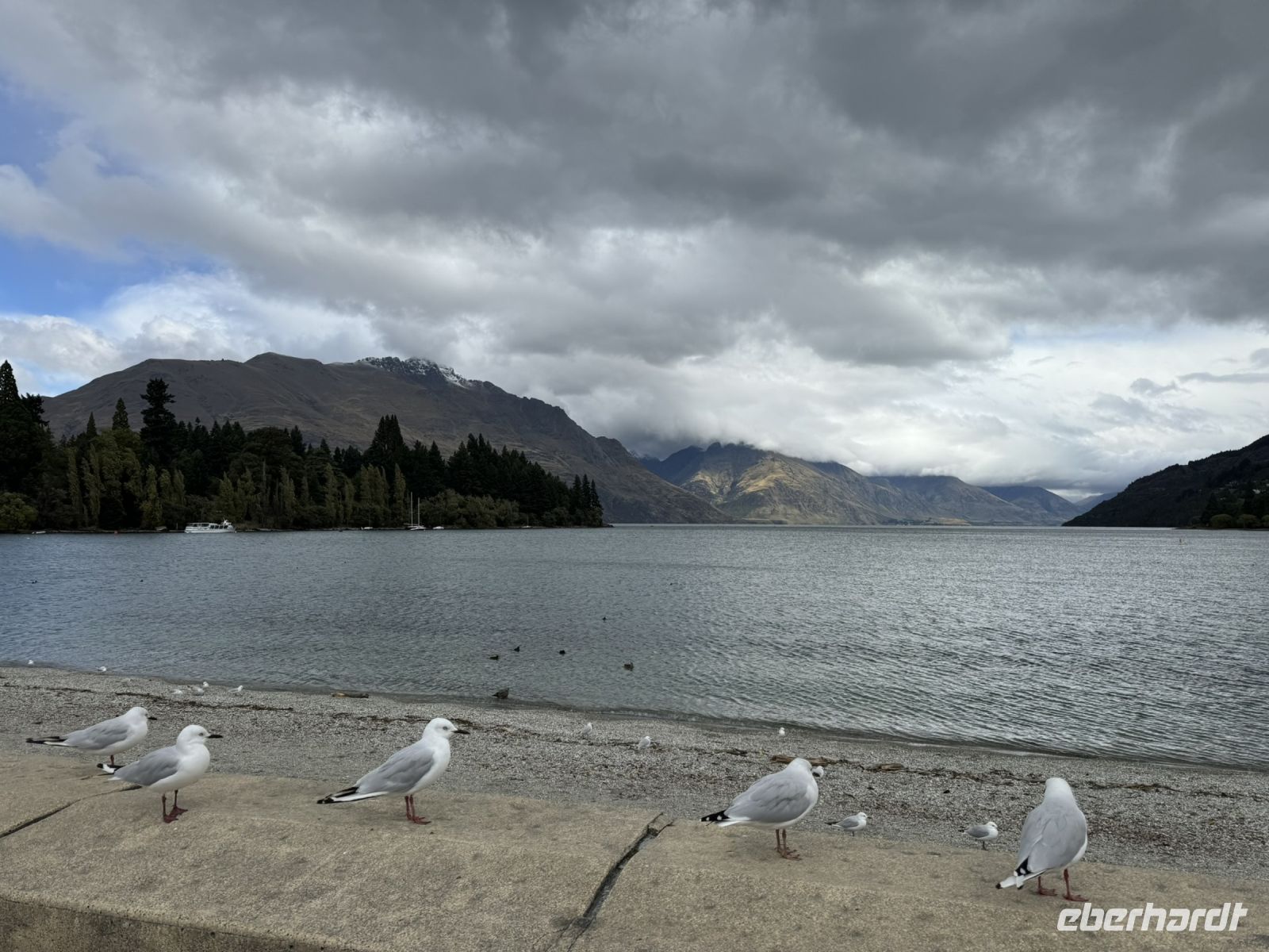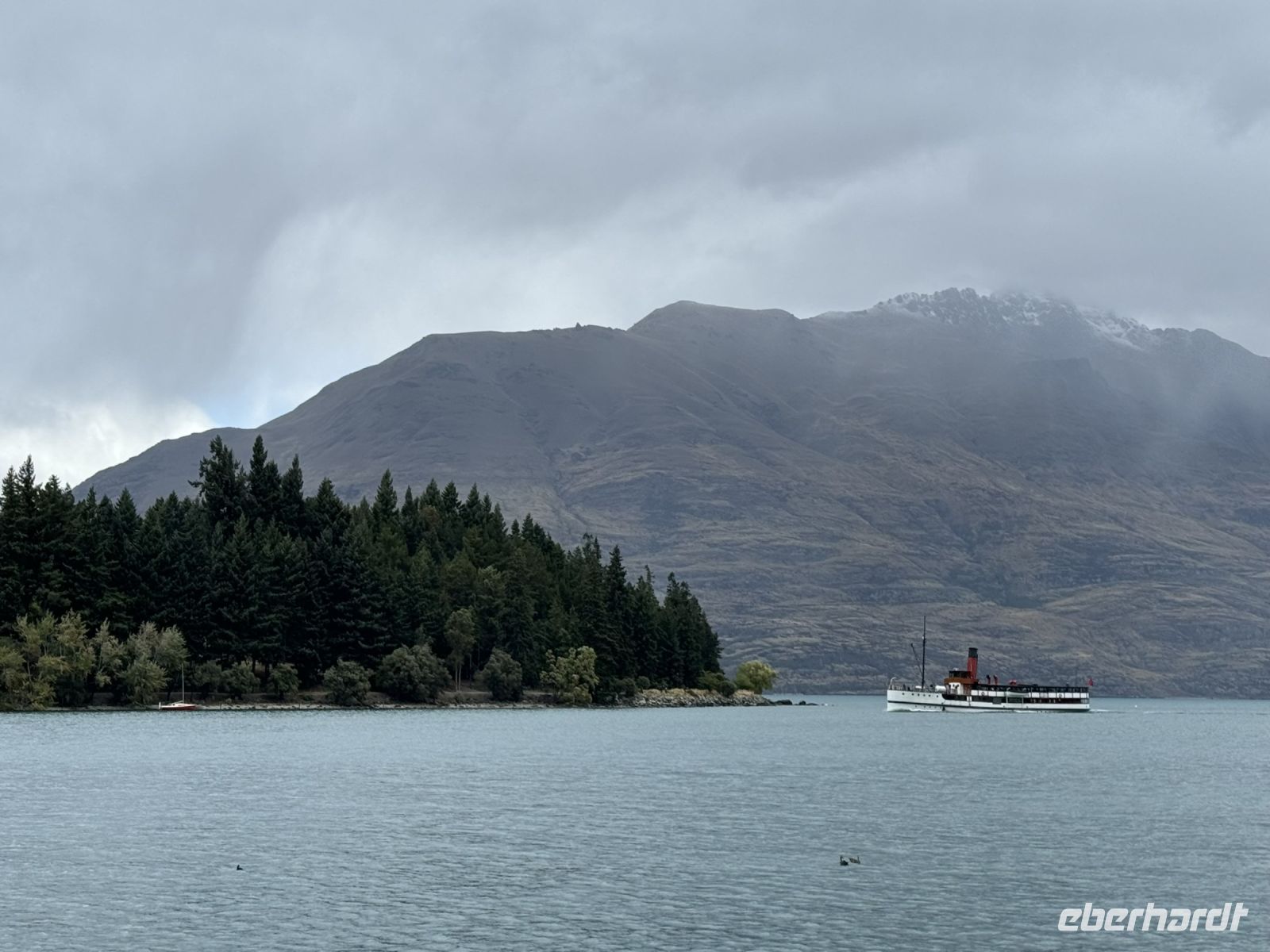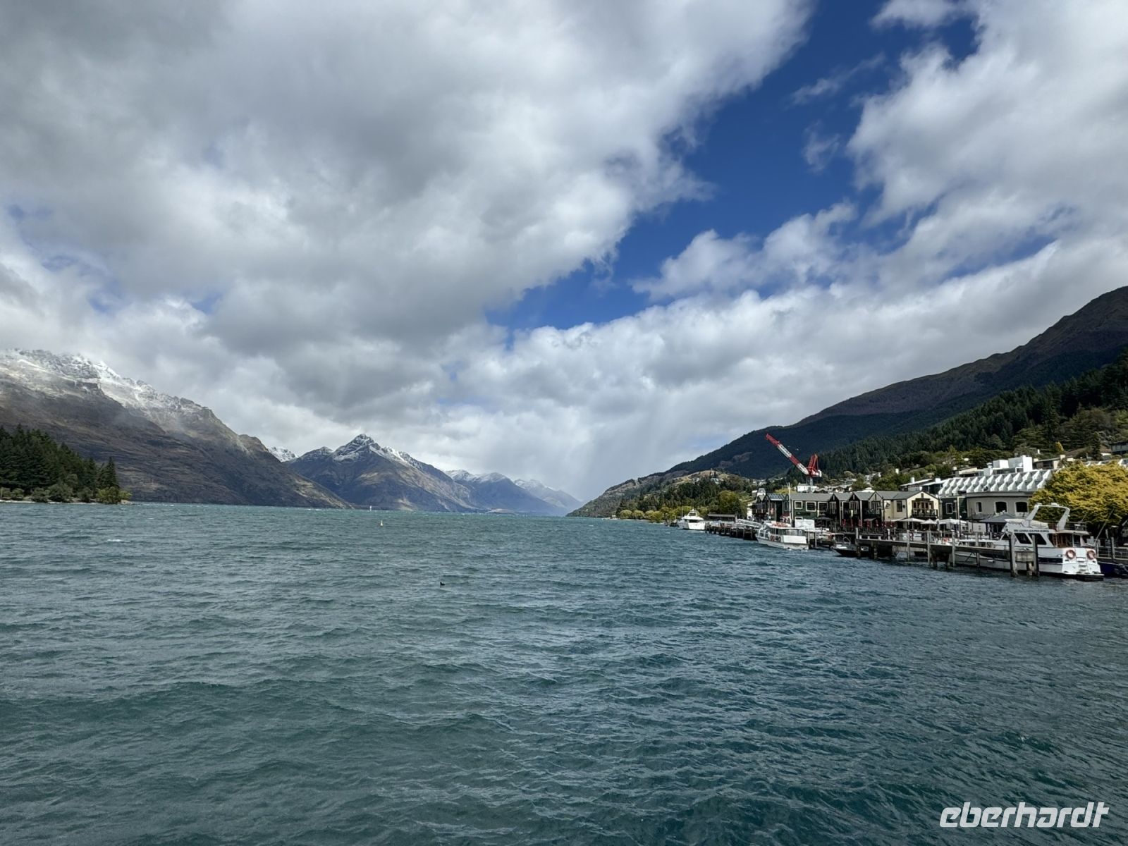 Nachmittags sind wir über Frankton nach Queenstown gefahren. Der Gletscher-See Lake Wakatipu mit seinen 80 km Länge liegt bei der Stadt und unser Michael erzählt uns die Liebesgeschichte laut der Maori.