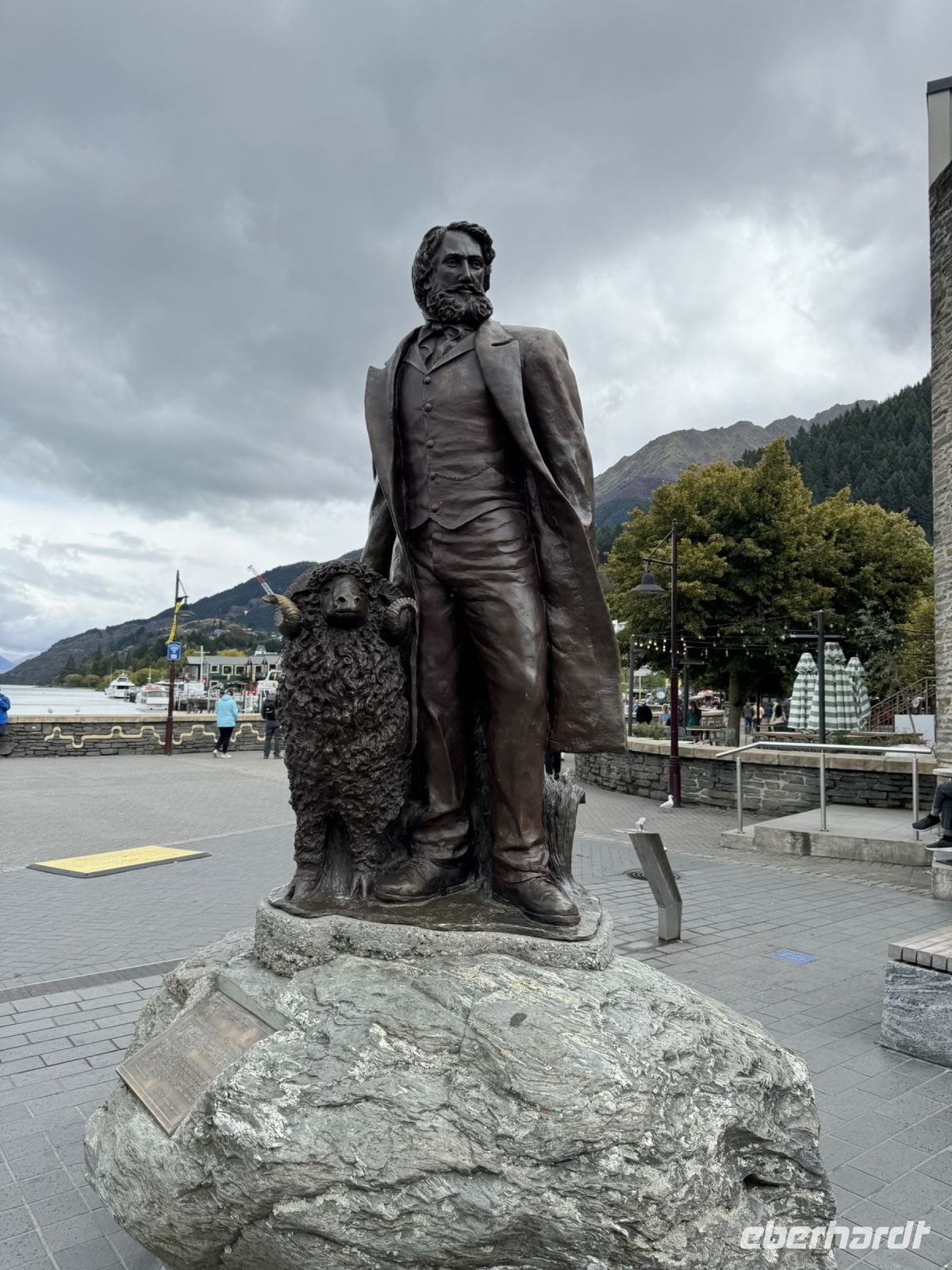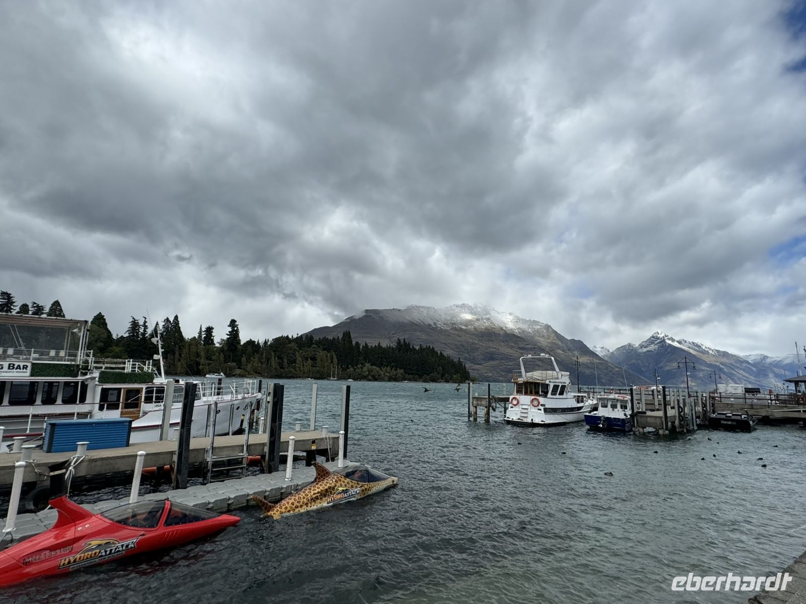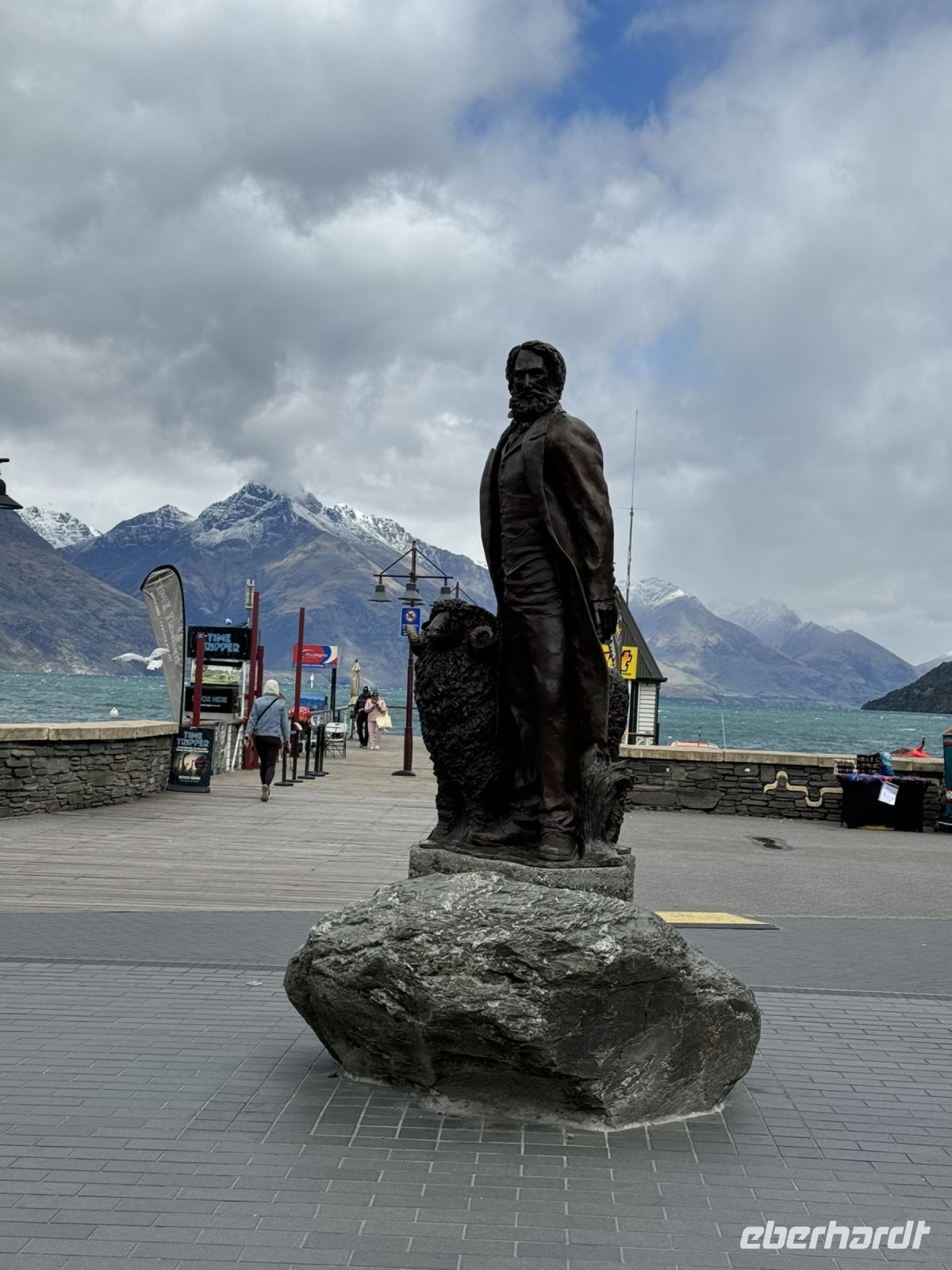 Nachmittags sind wir über Frankton nach Queenstown gefahren. Der Gletscher-See Lake Wakatipu mit seinen 80 km Länge liegt bei der Stadt und unser Michael erzählt uns die Liebesgeschichte laut der Maori.