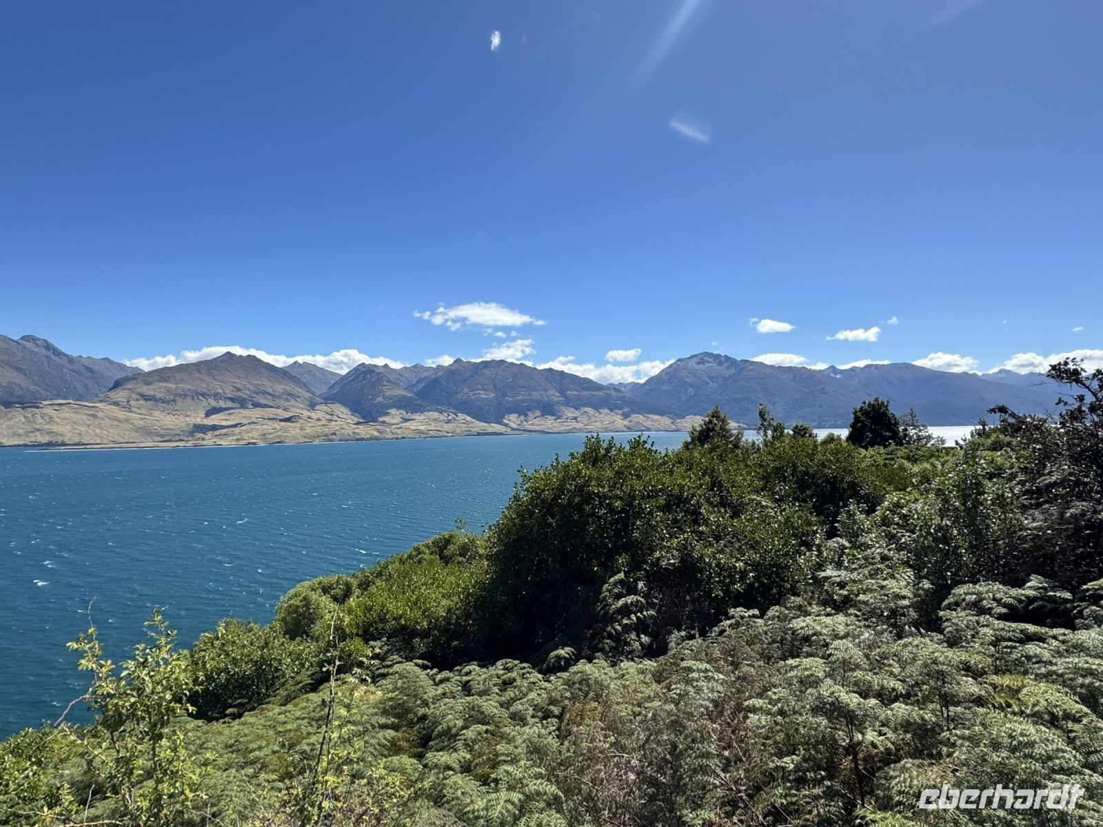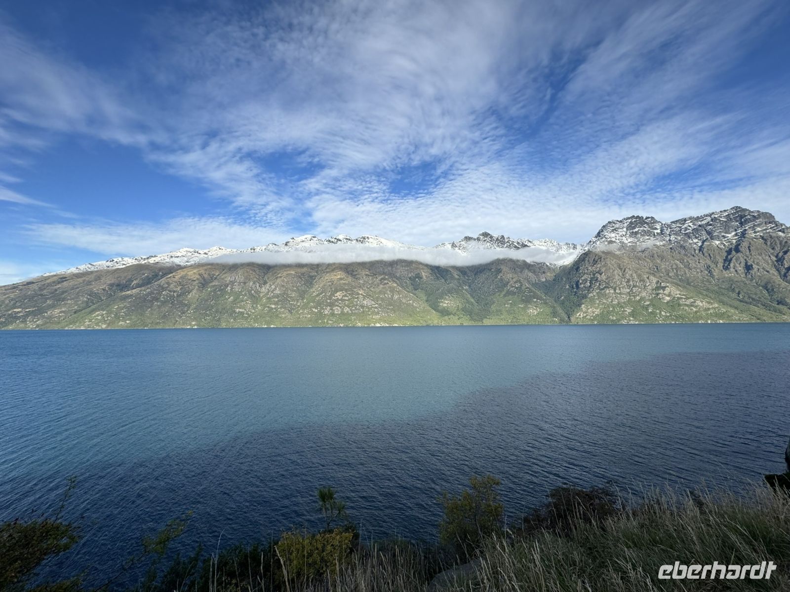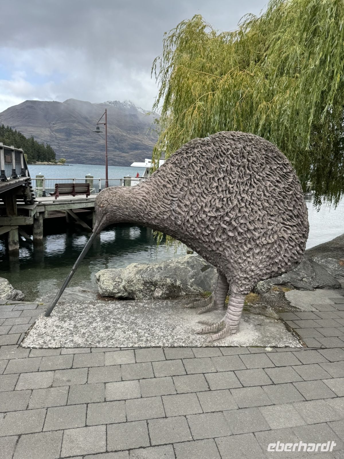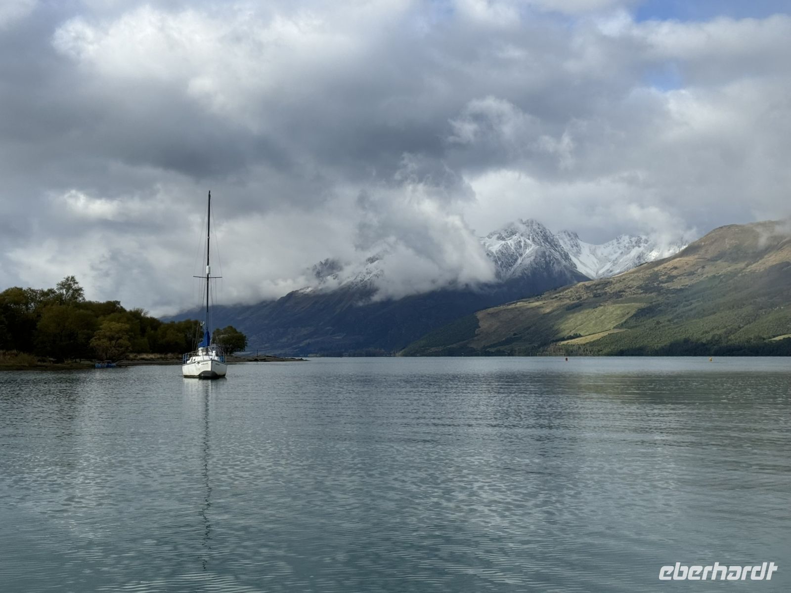 Nachmittags sind wir über Frankton nach Queenstown gefahren. Der Gletscher-See Lake Wakatipu mit seinen 80 km Länge liegt bei der Stadt und unser Michael erzählt uns die Liebesgeschichte laut der Maori.