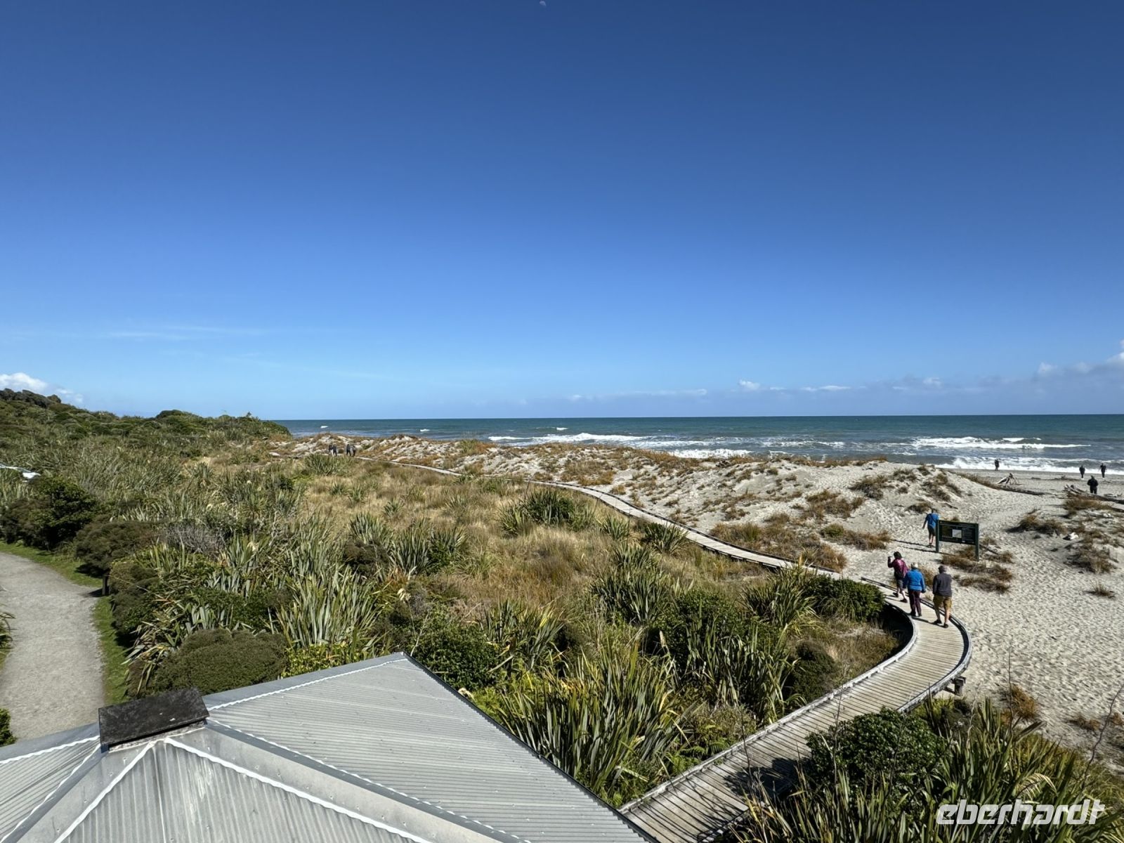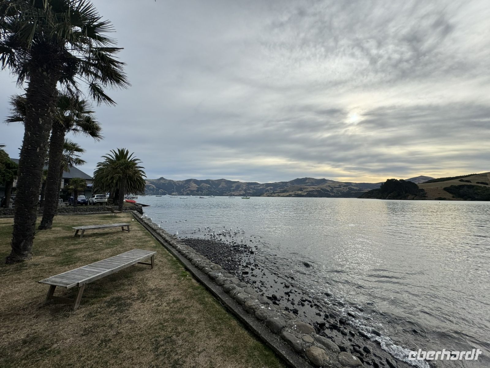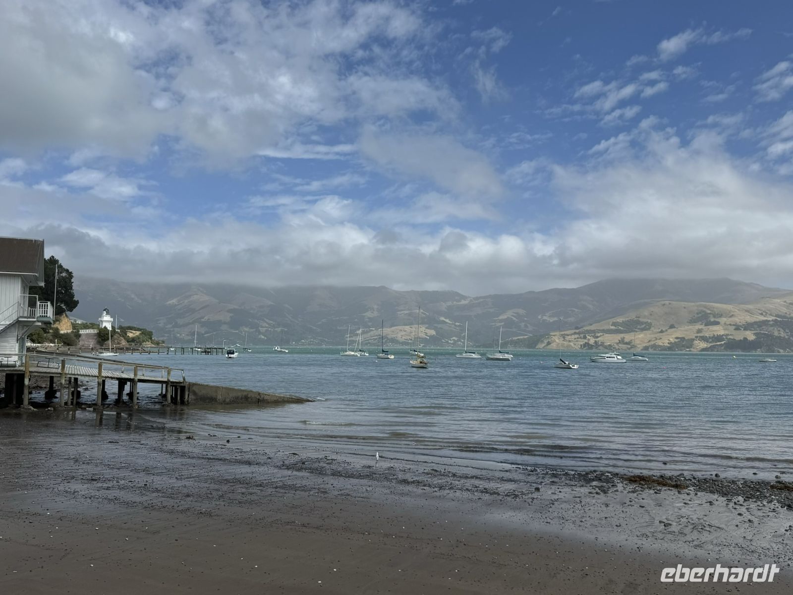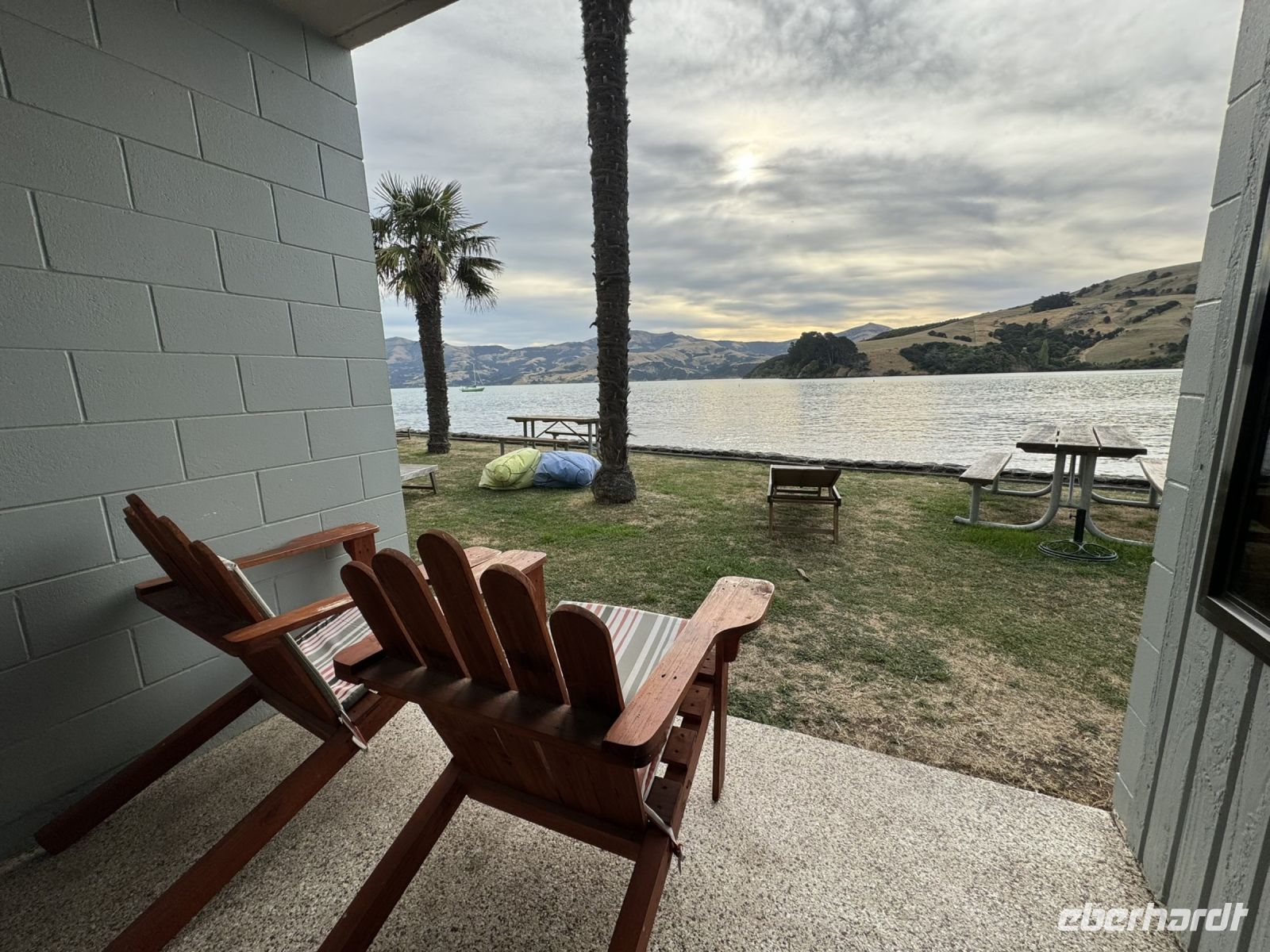 Nach dieser Zwischenstation machten wir unsere Mittagspause in der lebendigen Stadt Geraldine und genossen das wunderschöne sommerliche Wetter. Anschließend erreichten wir die Banks Peninsula und erfreuten uns an der schönen Aussicht auf die Bucht und das malerische flämische Dorf Akaroa. Nach einer kurzen Orientierungsfahrt kamen wir in unserem romantischen Motel direkt am Wasser an, wo wir die letzten beiden Nächte unseres Abenteuers verbrachten.