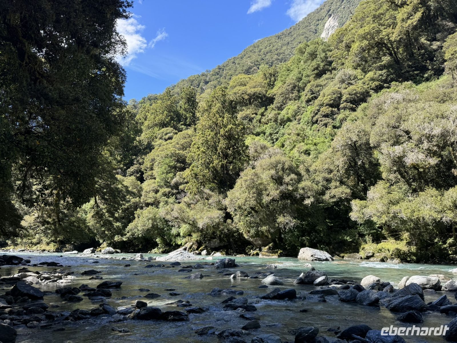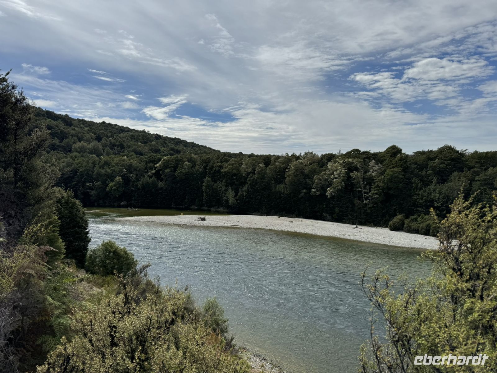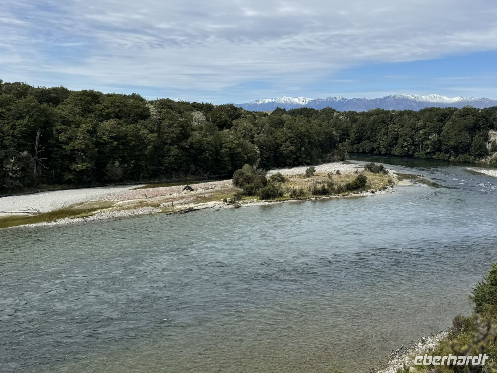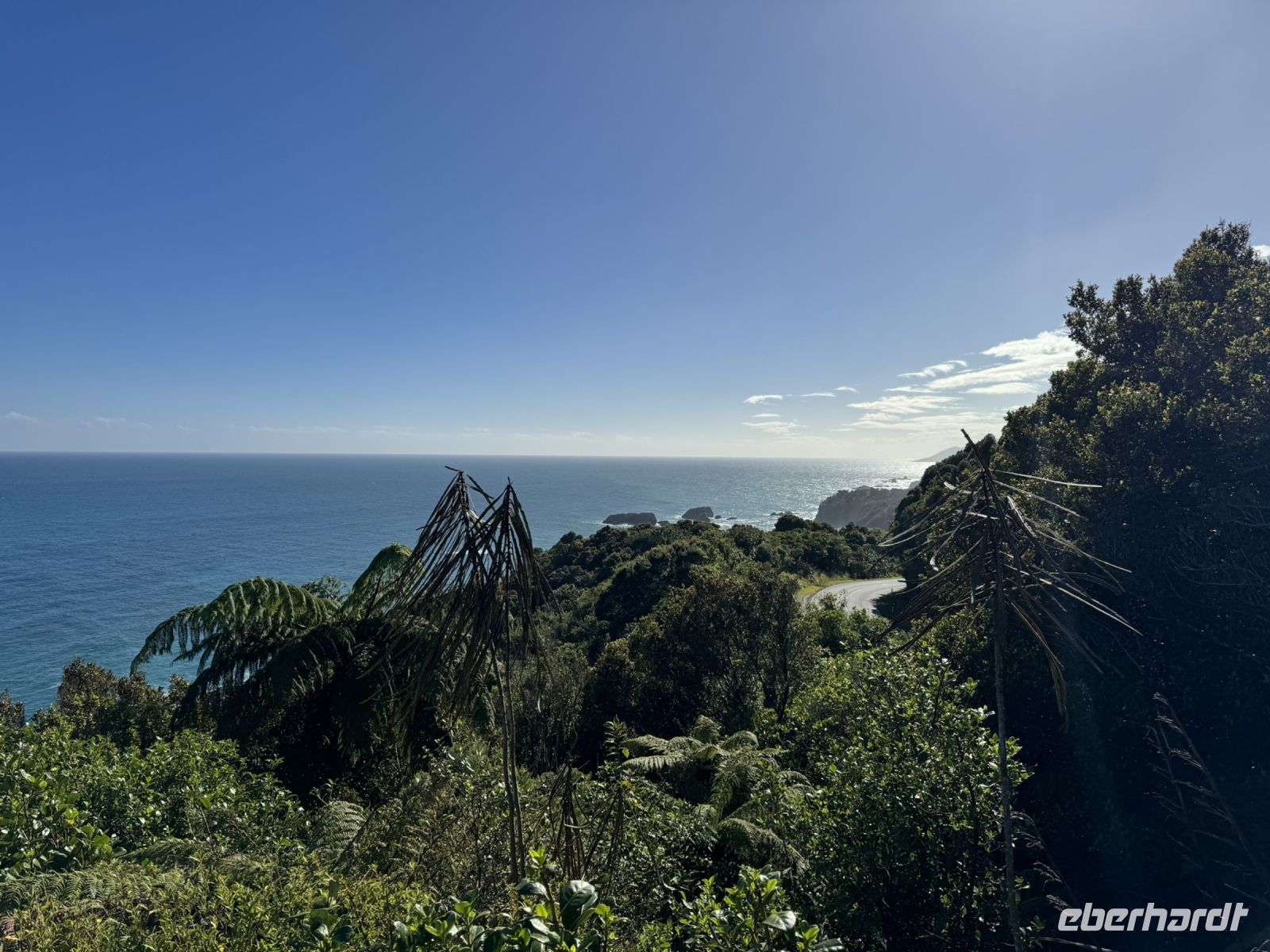 Nach dem Frühstück hatten wir eine lange Fahrt von Ost nach West durch die Serpentinenstraßen des Berges und folgten dem Buller Fluss. Das Panorama war traumhaft und die Sonnenstrahlen färbten die Natur besonders.