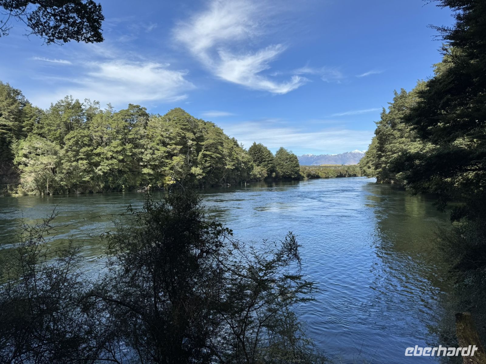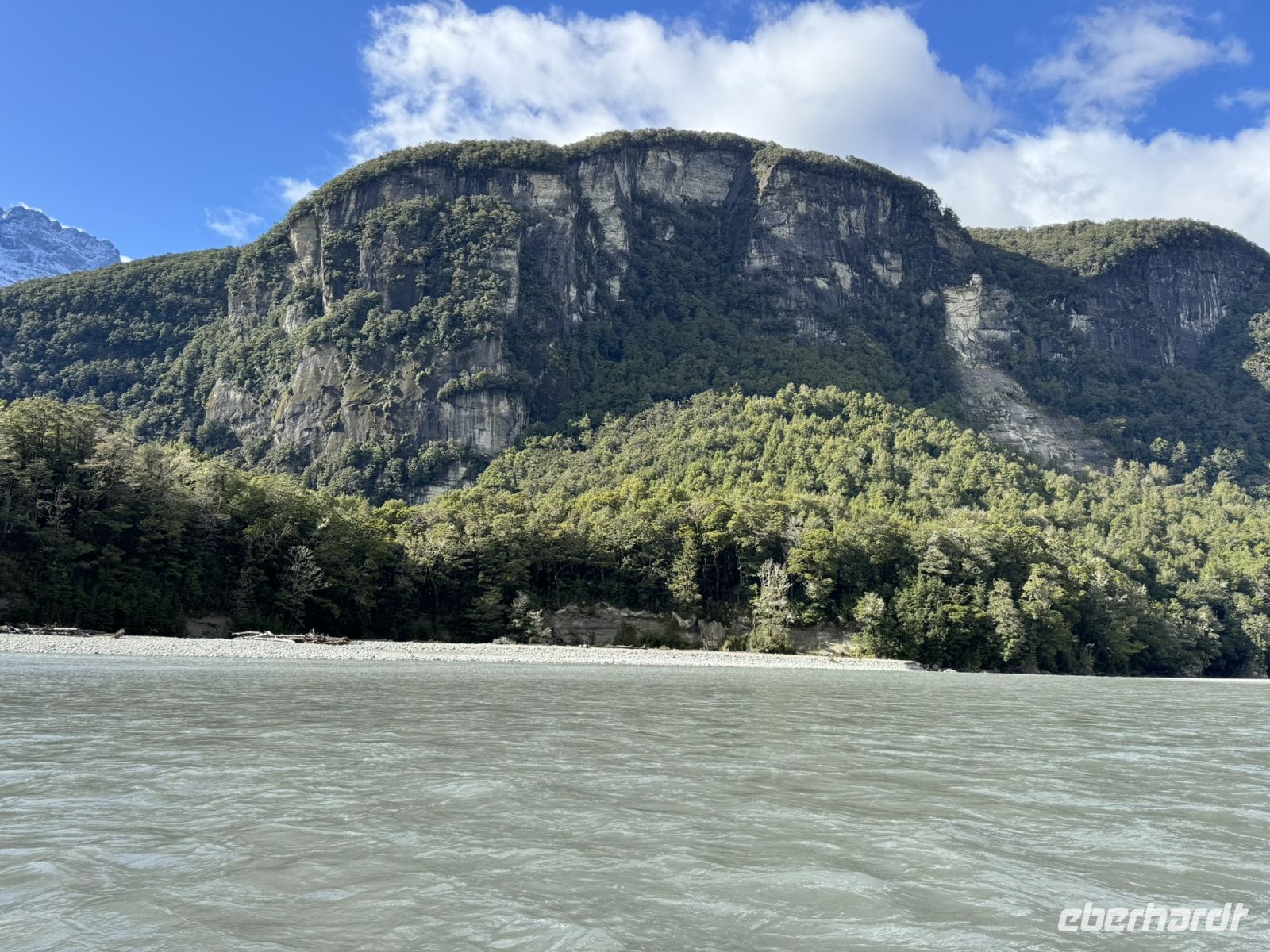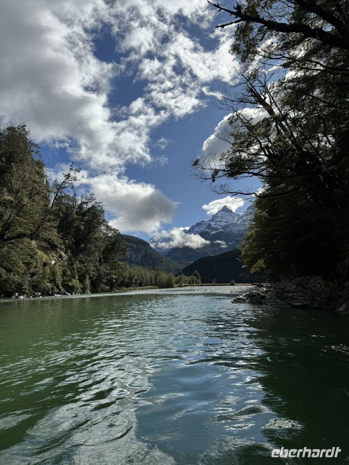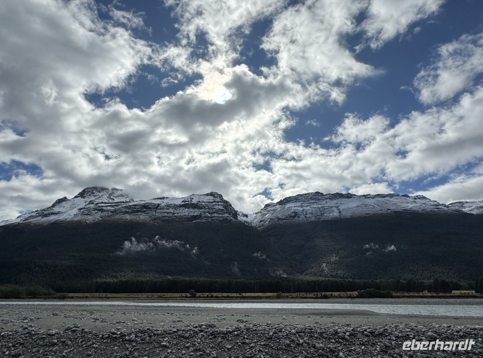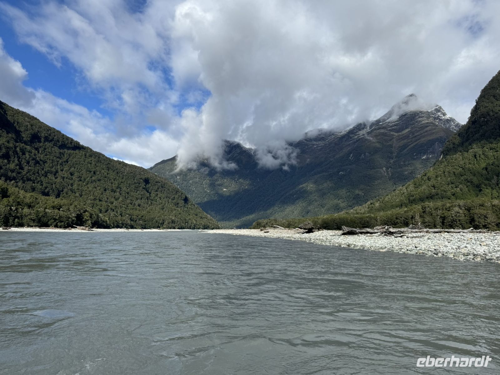 Eine andere Möglichkeit war die Dart River Safari von Glenorchy zum Dart River und nach Paradise. Unser Abenteuer begann mit einer entspannten Busfahrt entlang des Wakatipu-Sees mit schönen Ausblicken zu den Südalpen bis zum Dorf Glenorchy. Da verließen wir unseren Bus und wurden gut für unsere Bootsfahrt vorbereitet. In unser Jet Boot eingestiegen, begann die lustige und rasante Fahrt! Zunächst fuhren wir auf dem See und anschließend auf dem Dart River und drehten hier unsere Runden. Außerdem konnte man alle Berge ganz klar sehen und etwas mehr darüber kennenlernen. In dieser schönen Gegend wurde Isengard von "Der Herr der Ringe" gedreht.