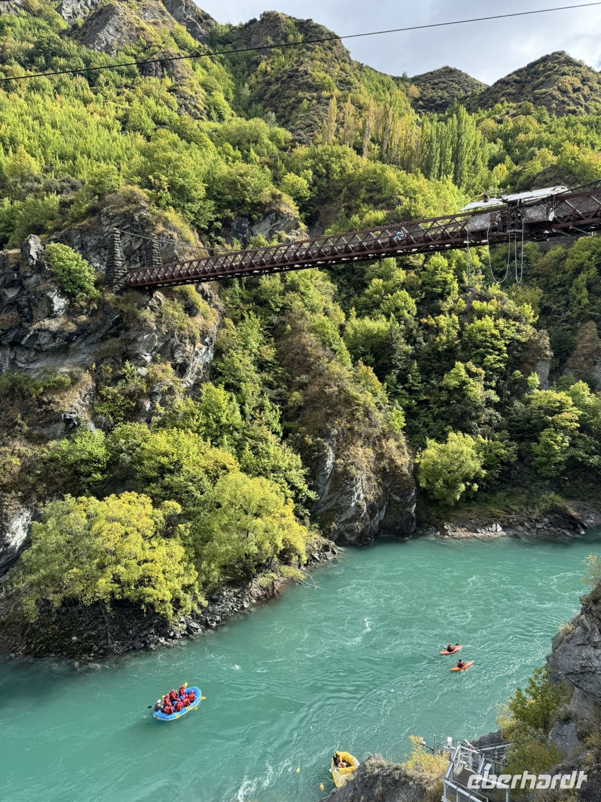 In Karawau fanden wir die alte Brücke, von der man heutzutage Bungy springen kann. Natürlich fanden wir dort einige Menschen, die das Adrenalin suchten und konnten das Video der Jumping Geschichte sehen. Hier wurden auch die Tore von Argonath oder die Tore des Königs, in dem Film "Der Herr der Ringe", gedreht.