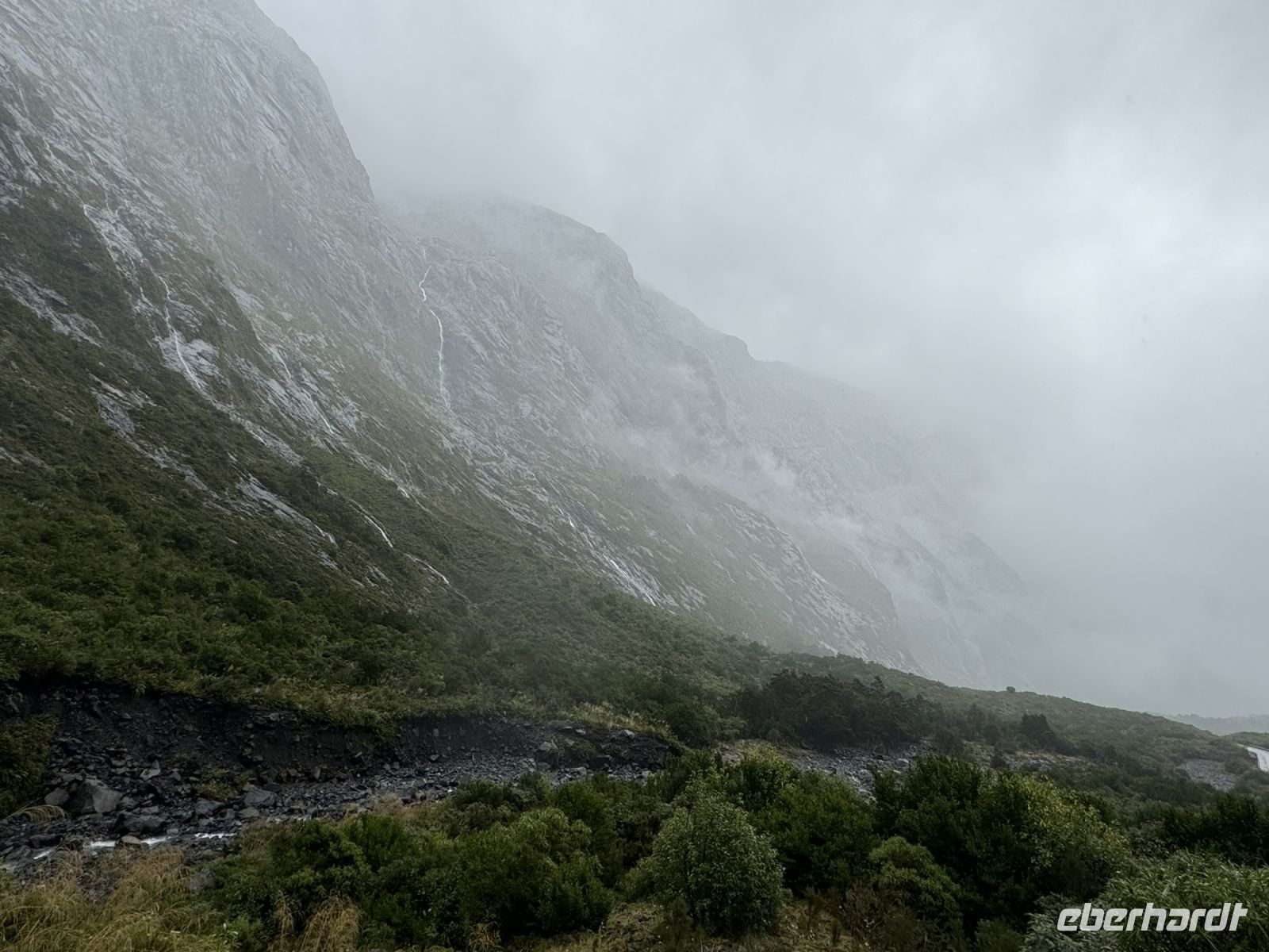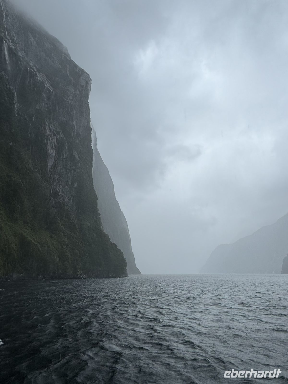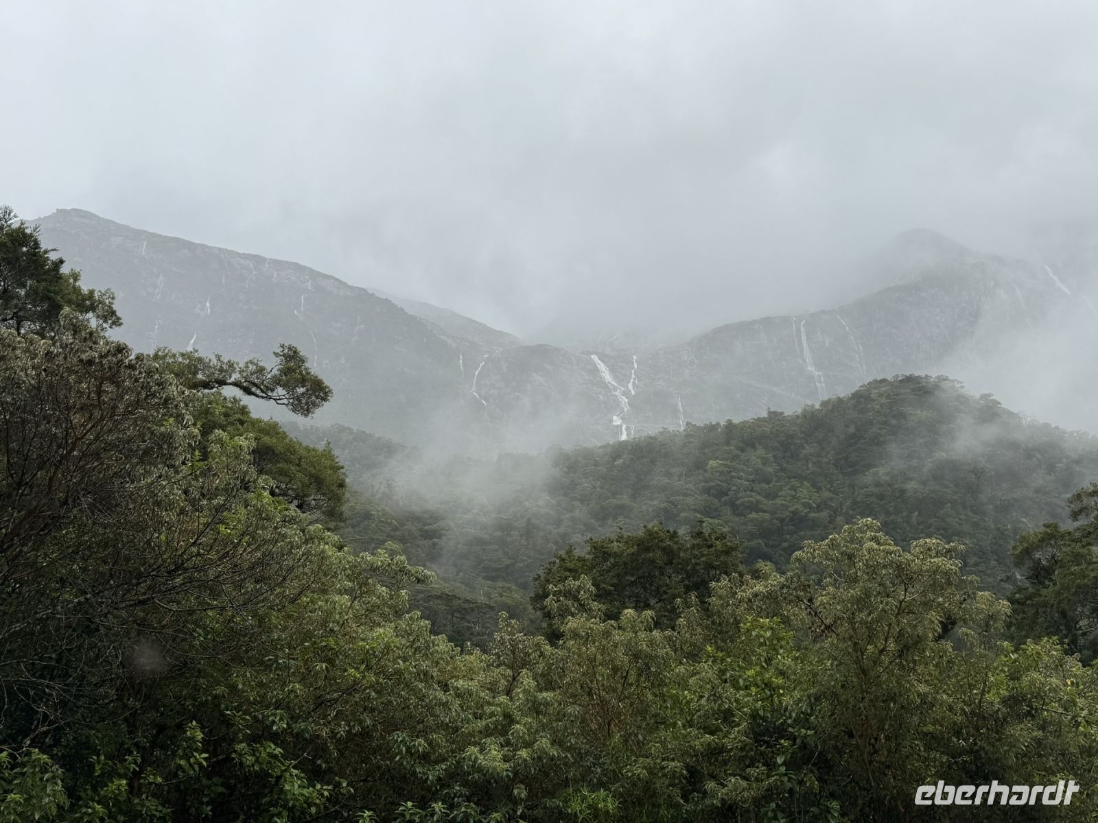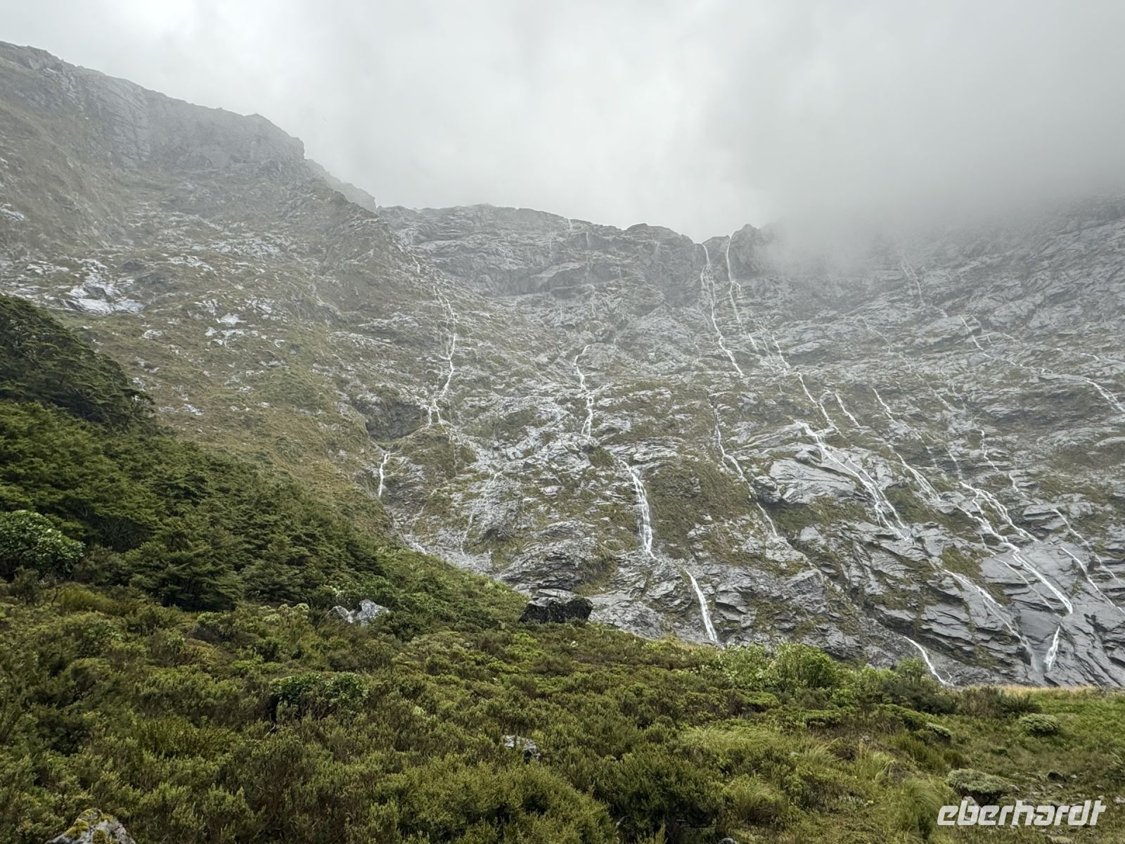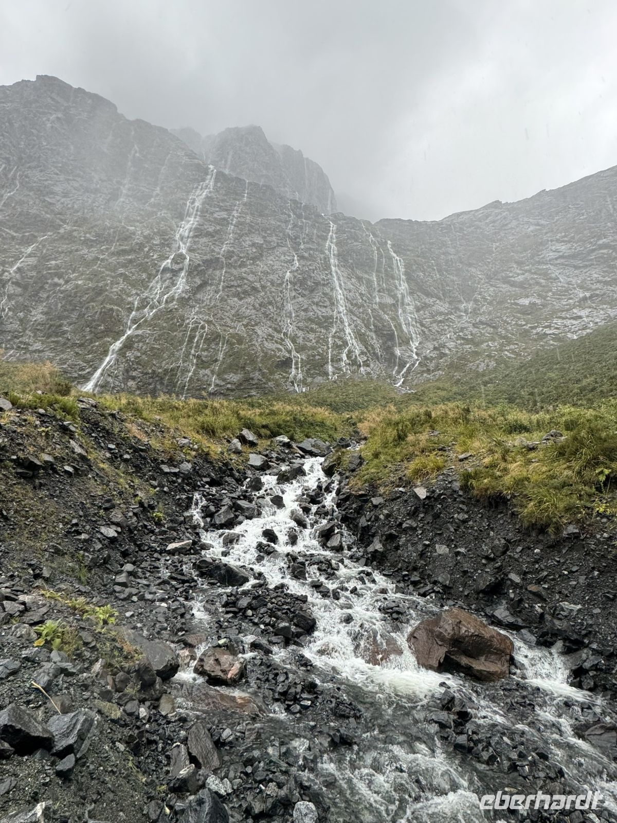 In der Nähe des Milford Sound entdeckten wir zahlreiche Wasserfälle. Normalerweise sind an sonnigen Tagen nur wenige zu sehen, aber bei Regen war es einfach unglaublich! Dieses Naturwunder gewinnt mit der Zeit an Kraft. Auf unserer Kreuzfahrt durch den Fjordland Nationalpark sahen wir spektakuläre Wasserfälle, von denen einige nicht ins Wasser stürzten, sondern vom Wind nach oben und zurück getragen wurden.