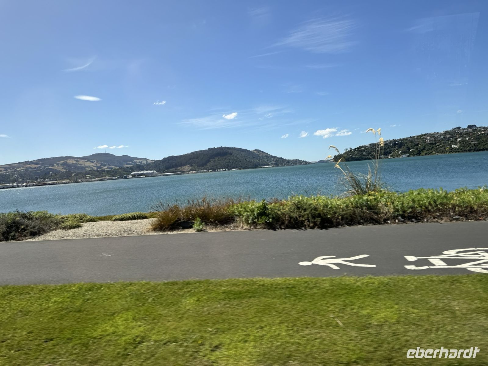 Der Tag begann mit einer langen Fahrt durch die Landschaft bis nach Dunedin. Unterwegs machten wir in einigen Dörfern halt und hielten unsere Mittagspause am Lake Waihola.