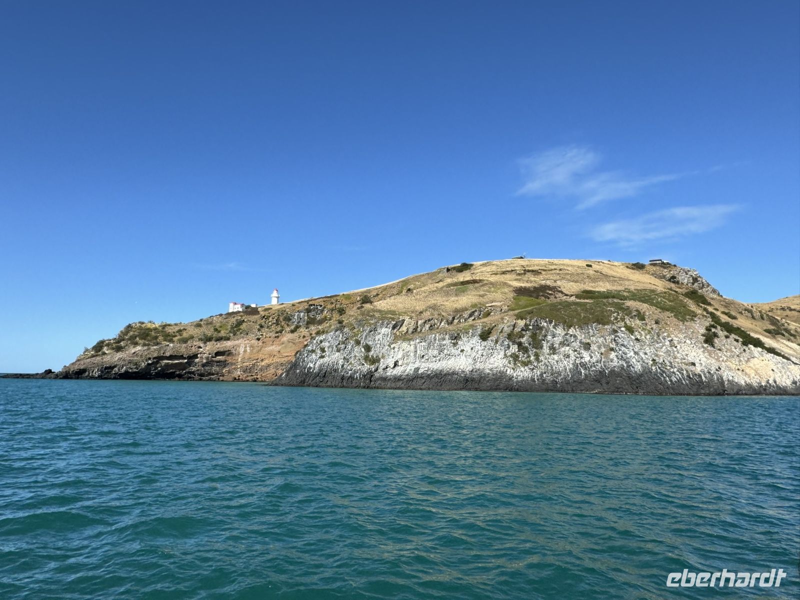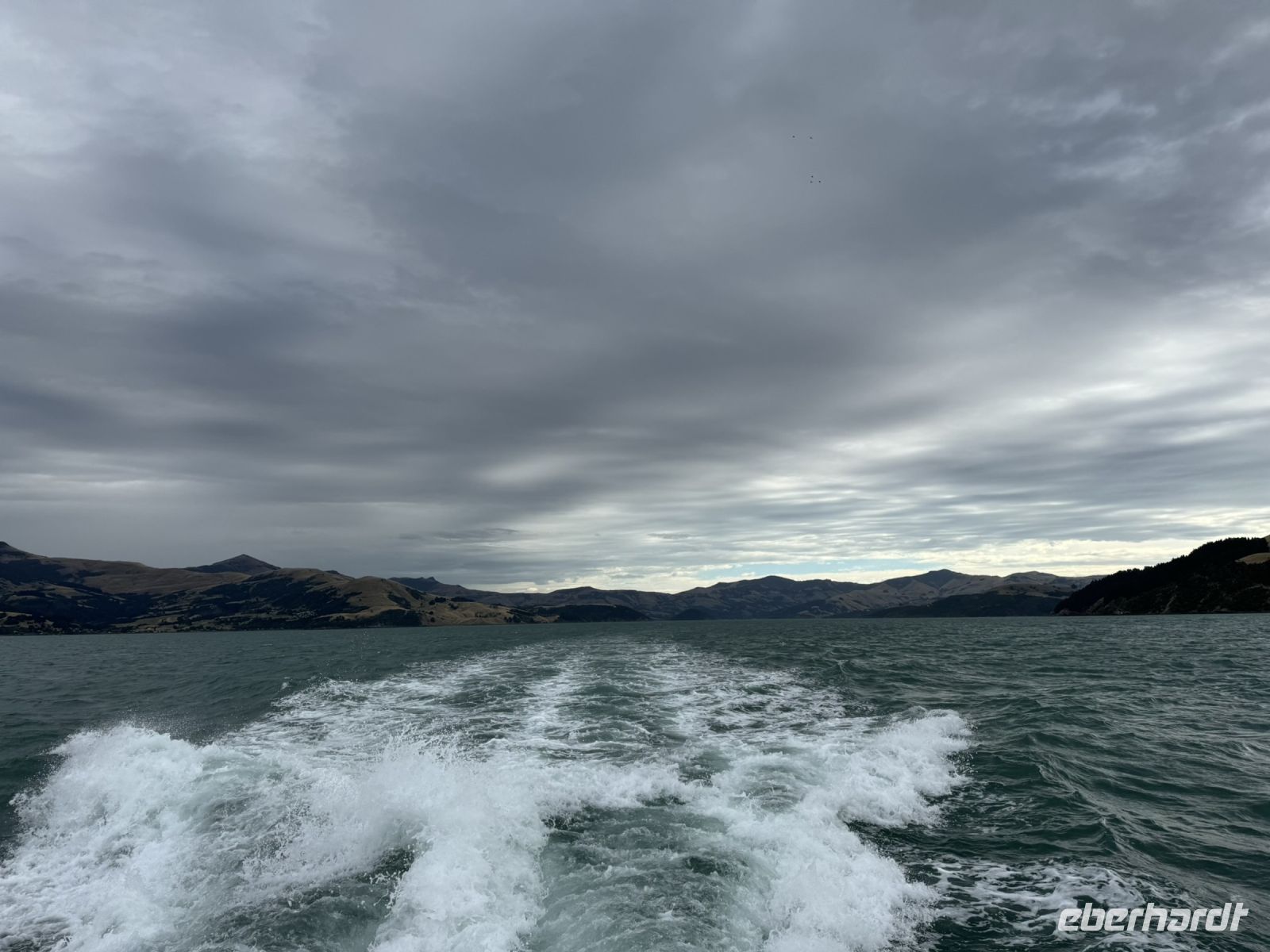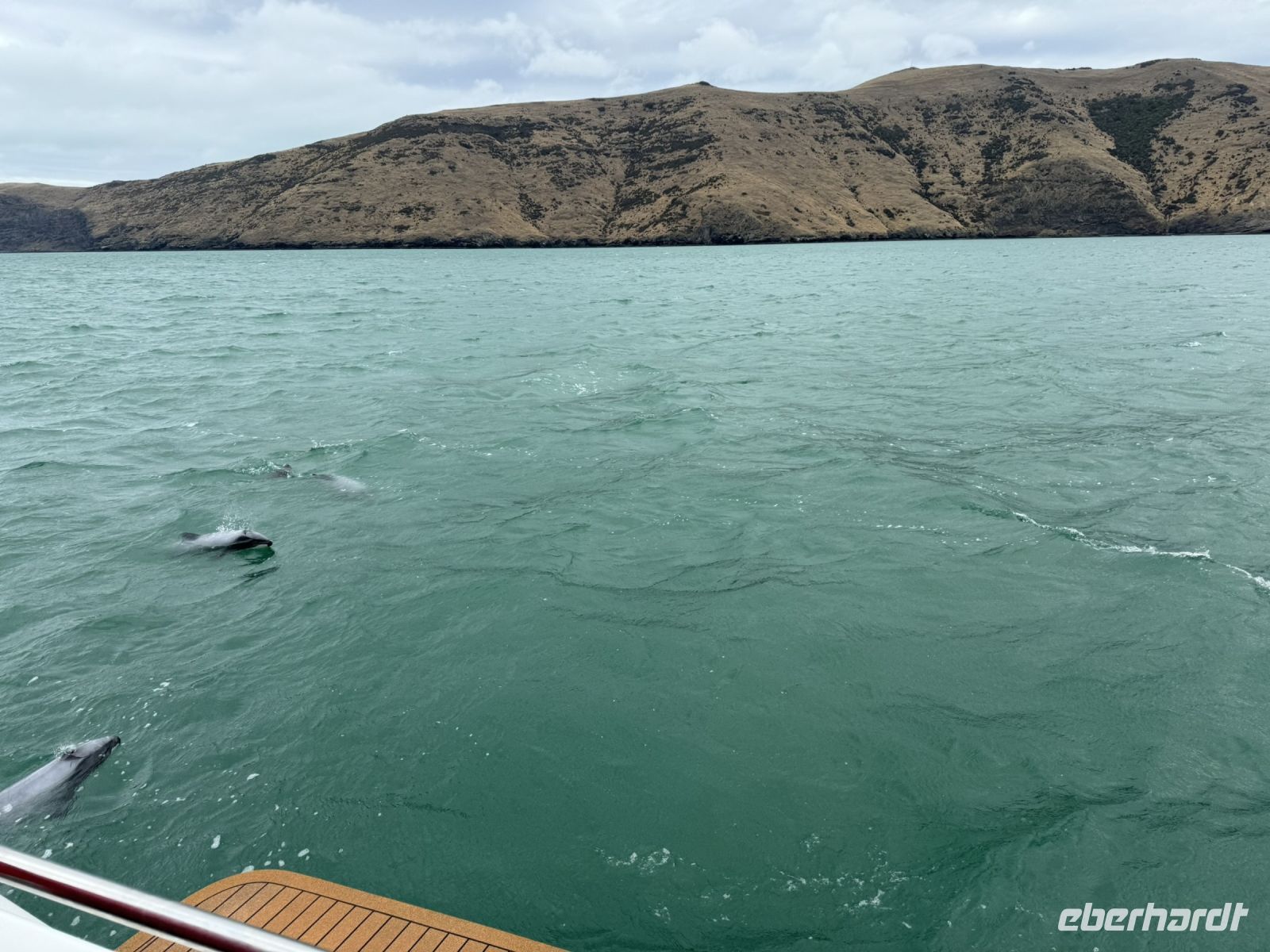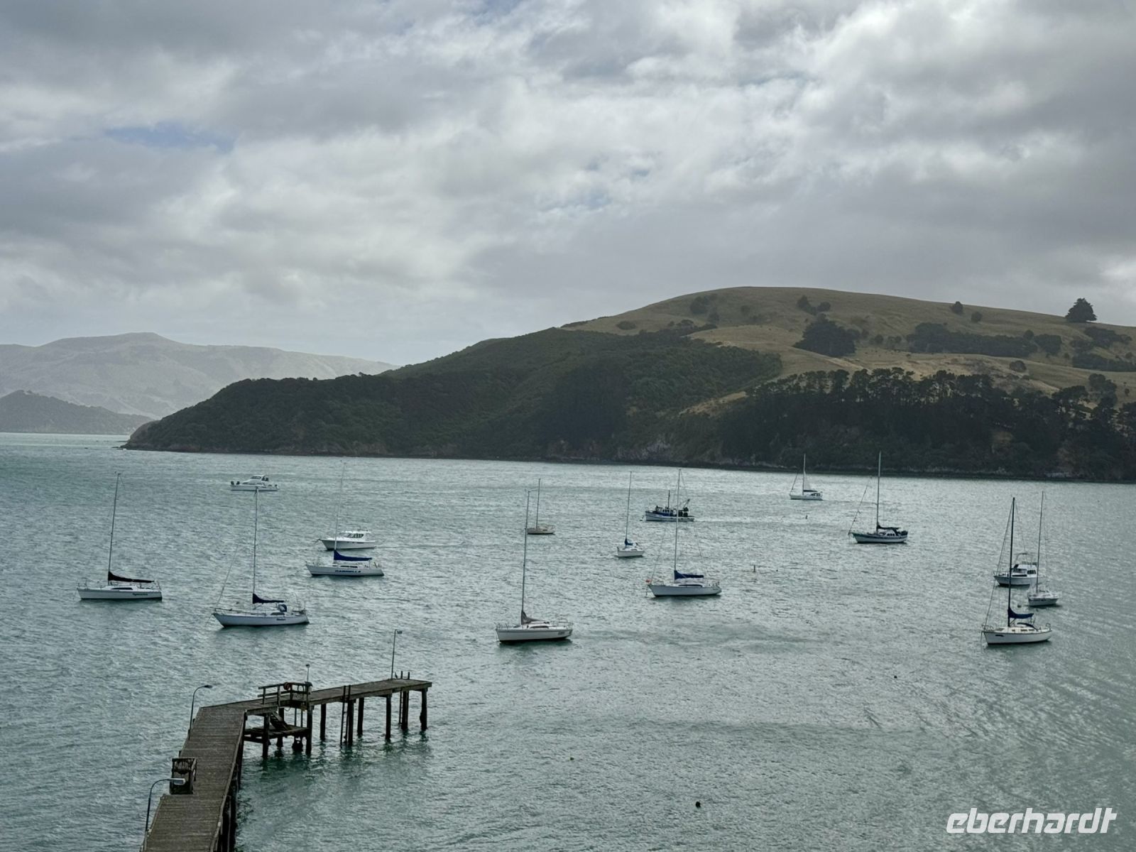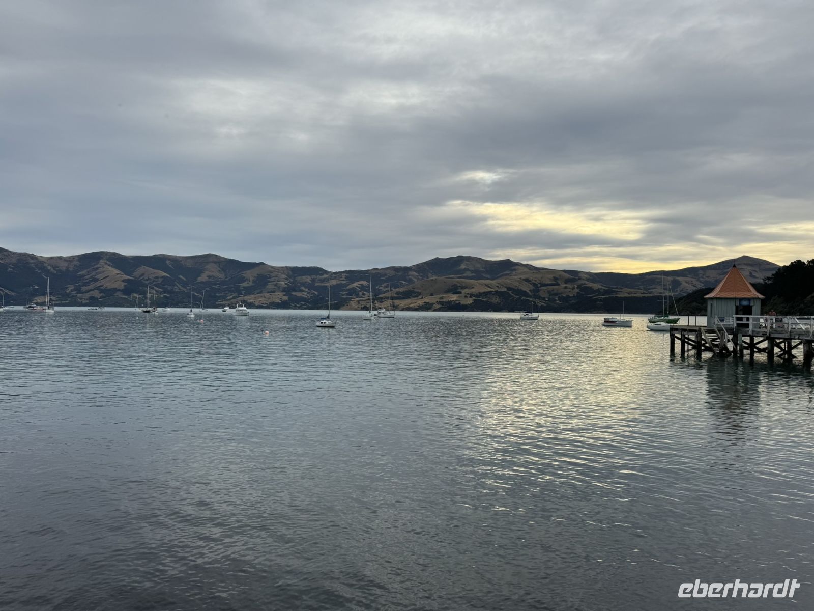 Der Tag begann mit einem gemeinsamen Frühstück in einer traditionellen Bäckerei mit französischem Einfluss und herzlicher Begrüßung, bevor wir zu einer entspannten Bootsfahrt aufbrachen. Schon unser Kapitän begrüßte uns herzlich, und wir fuhren durch die Bucht, die ursprünglich ein Krater des Vulkans war. Dabei erfuhren wir mehr über die Geschichte des Dorfes Akaroa und seine verschiedenen Häfen.