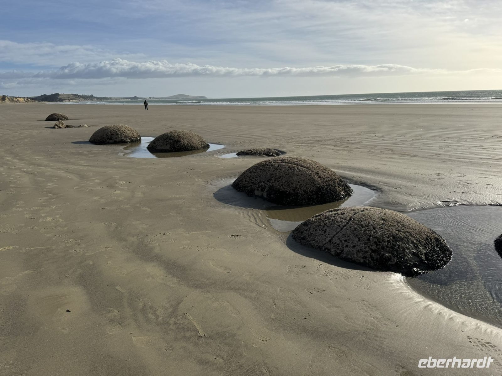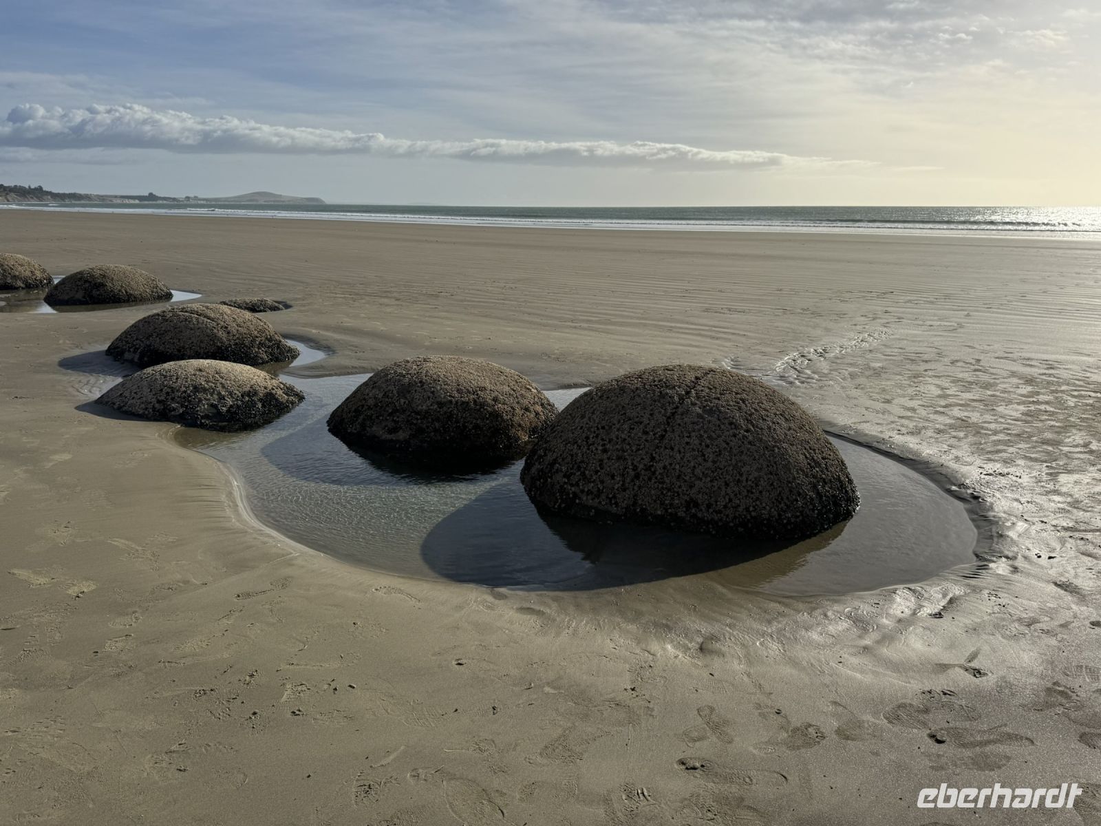 Nach dem Frühstück fuhren wir nach Moeraki und entdeckten bei strahlendem Sonnenschein einen wunderschönen Strand mit faszinierenden Felsformationen. Wir verbrachten einen vergnüglichen Tag begleitet von stimmungsvoller Musik.