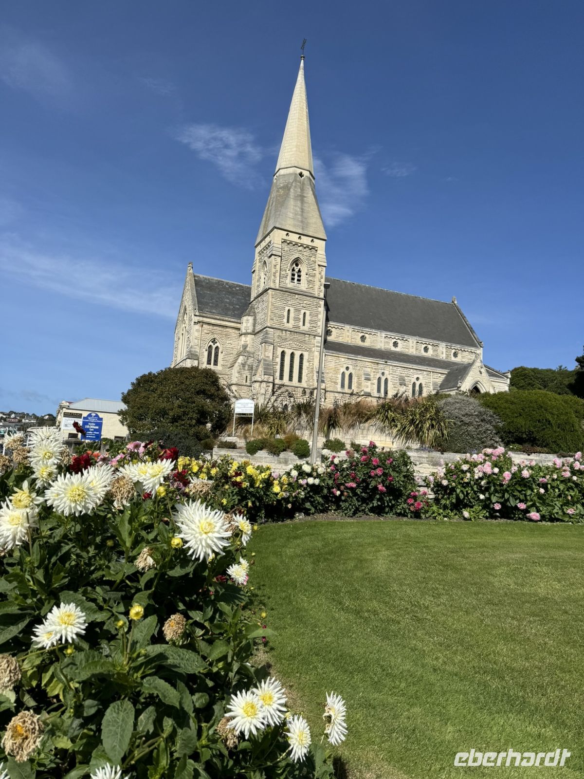 Anschließend haben wir die Stadt Dunedin erkundet und den schottischen Einfluss hautnah erlebt. Die Stadt wurde nach und nach wie ein kleines Edinburgh erbaut, allerdings etwas hügeliger und mit einem Universitätsambiente. Bei einer Stadtrundfahrt besichtigten wir die steilste Straße der Welt, den Bahnhof, die Kathedrale, die Hauptstraße, die Oper, das Regierungsgebäude, die Universität und den Octagon.