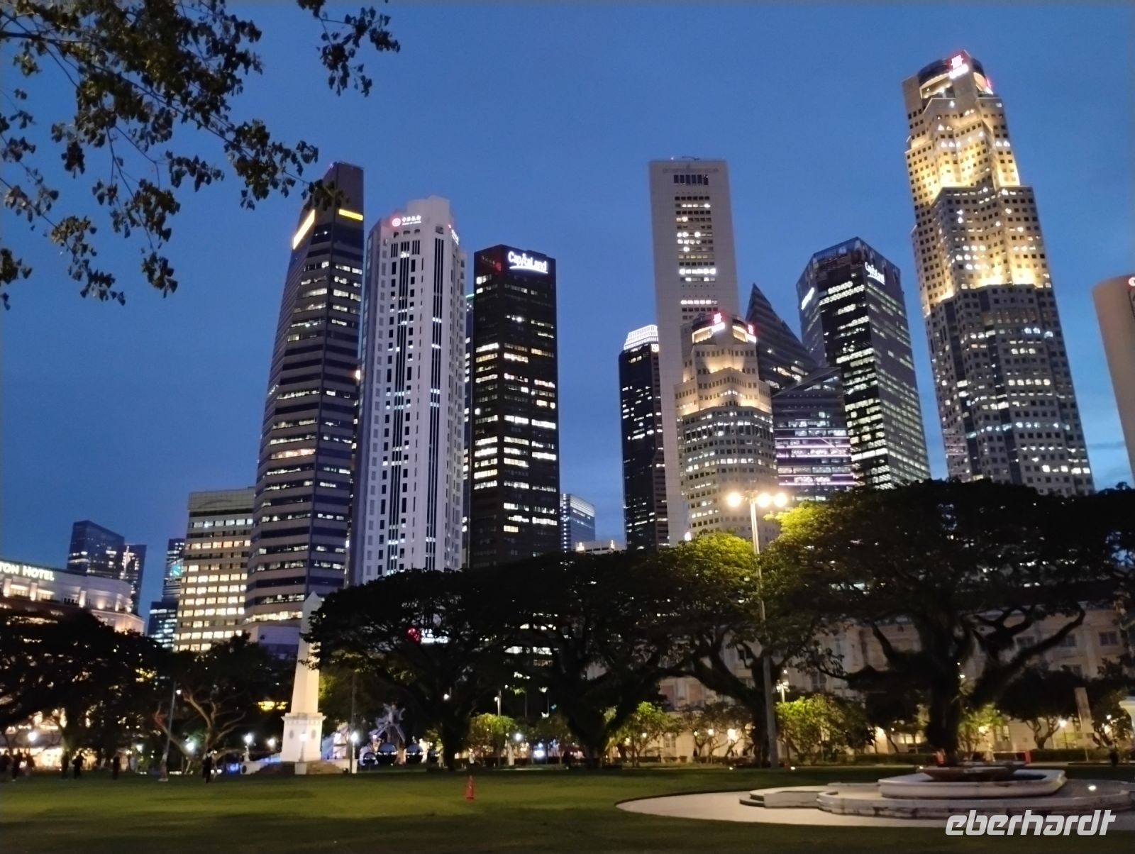 Am frühen Abend landeten wir pünktlich auf dem mehrfach ausgezeichneten Changi International Airport in Singapur – genau wie beim Abflug in Frankfurt bei Regen, allerdings bei rund 20 Grad mehr. Die Einreise verlief reibungslos, und nach der Gepäckausgabe brachte uns eine kurze Fahrt in unser zentral gelegenes Hotel, das Grand Park City Hall. Dort blieb uns ein Moment, um uns frisch zu machen, bevor wir zu unserer ersten Erkundungstour aufbrachen.