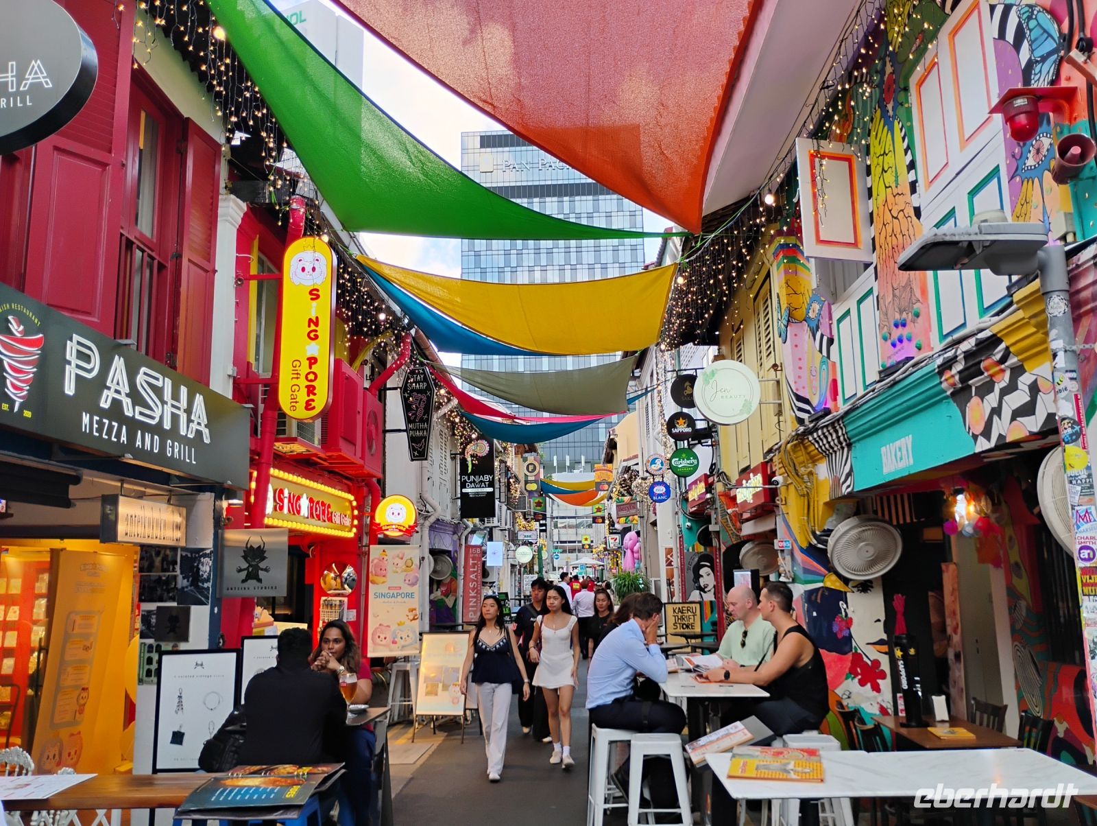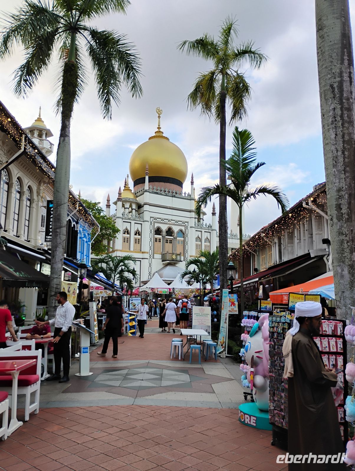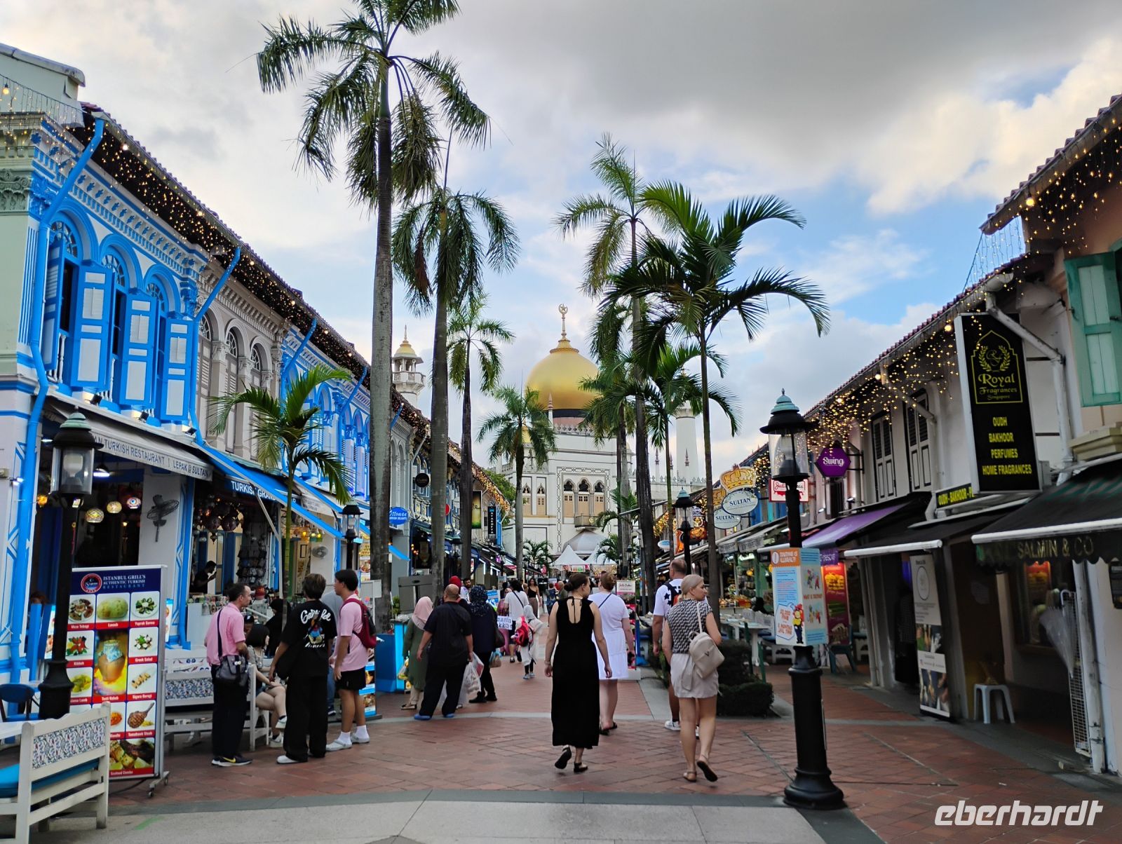 Danach besuchten wir das bunte Viertel Little India und unser letzter Halt führte uns nach Kampong Glam, das arabisch geprägte Viertel Singapurs. Hier steht die prachtvolle Sultan-Moschee mit ihrer goldenen Kuppel. Ein besonderer Kontrast: Während sich auf der einen Straßenseite denkmalgeschützte Häuser mit orientalischen Restaurants und kleinen Kunstläden befinden, ragen auf der anderen Seite moderne Wolkenkratzer in den Himmel – ein Sinnbild für den Mix aus Tradition und Moderne, der Singapur so einzigartig macht.