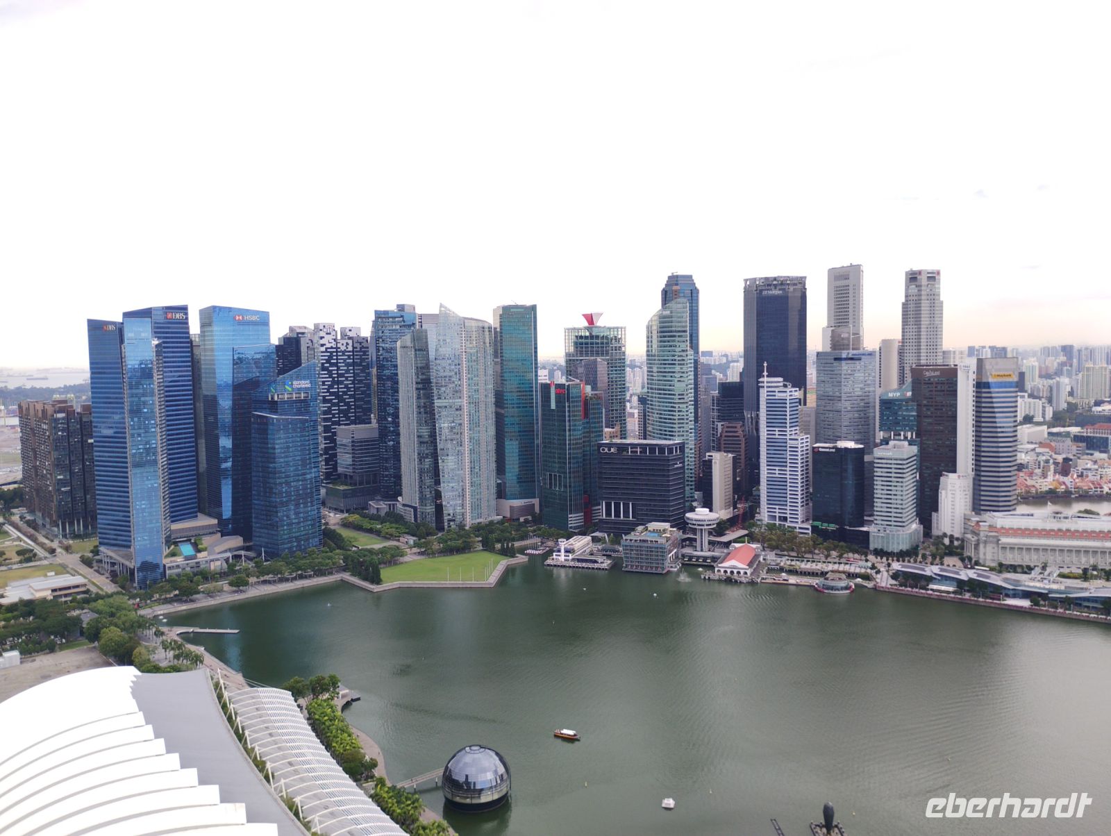 Nach einer erholsamen Nacht und einem ausgiebigen Frühstück im Hotel starteten wir gegen Mittag zu unserer Stadtrundfahrt durch Singapur. Unser erster Stopp führte uns zum beeindruckenden Marina Bay Sands, einem der spektakulärsten Hotelkomplexe der Welt. Von der Aussichtsplattform in 200 Metern Höhe hatten wir einen atemberaubenden Blick: Auf der einen Seite erstreckte sich die Skyline der Stadt, auf der anderen lagen die Gardens by the Bay, der Hafen und unzählige Containerschiffe, die in der Bucht auf ihre Weiterfahrt warteten.
