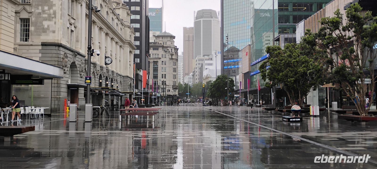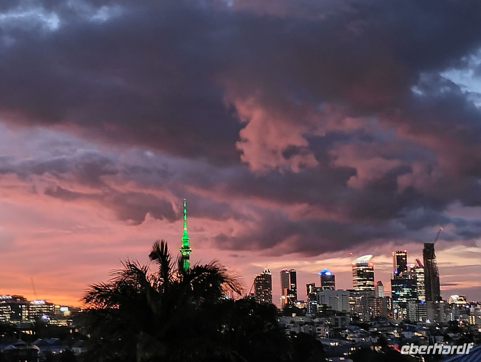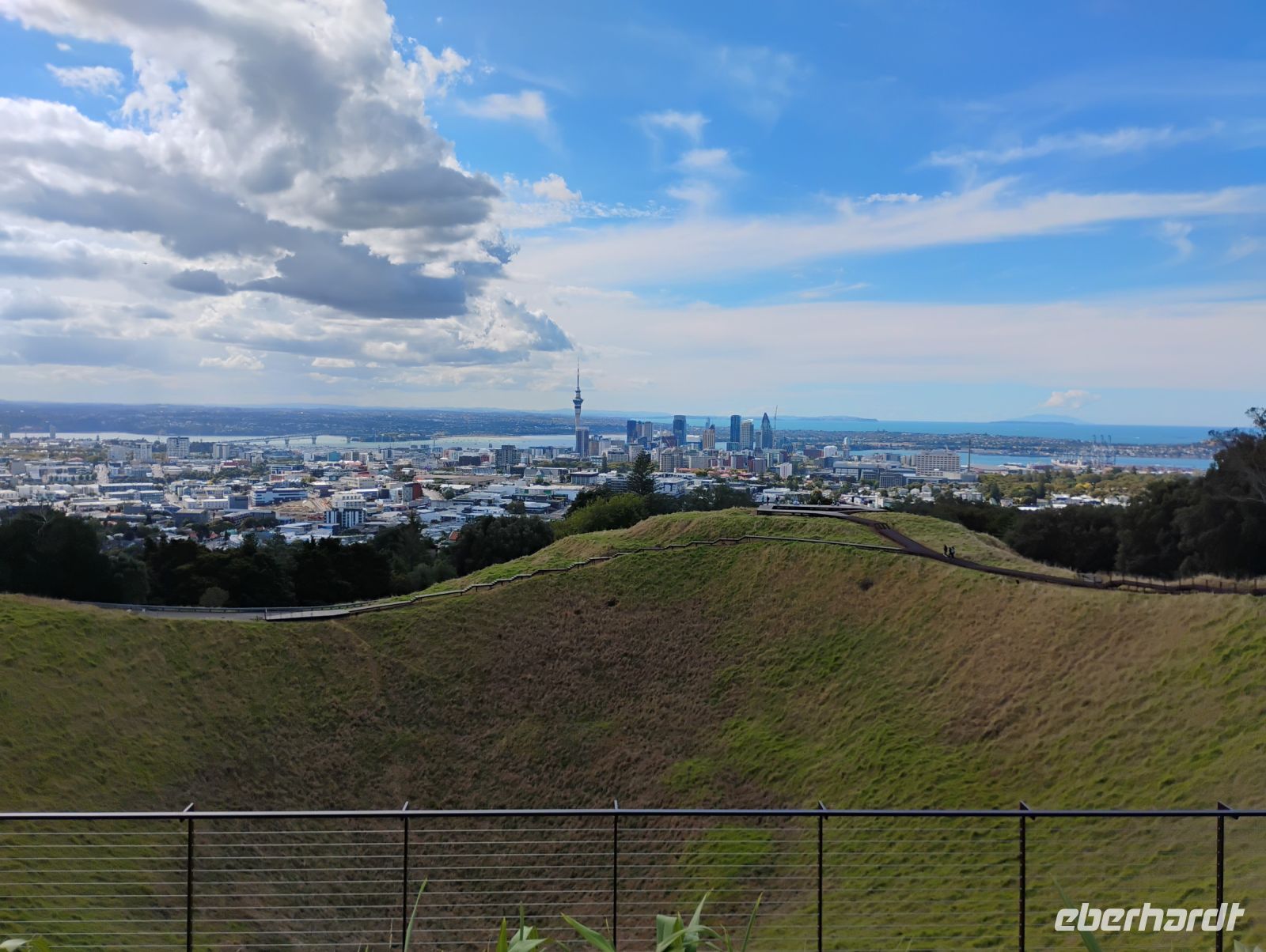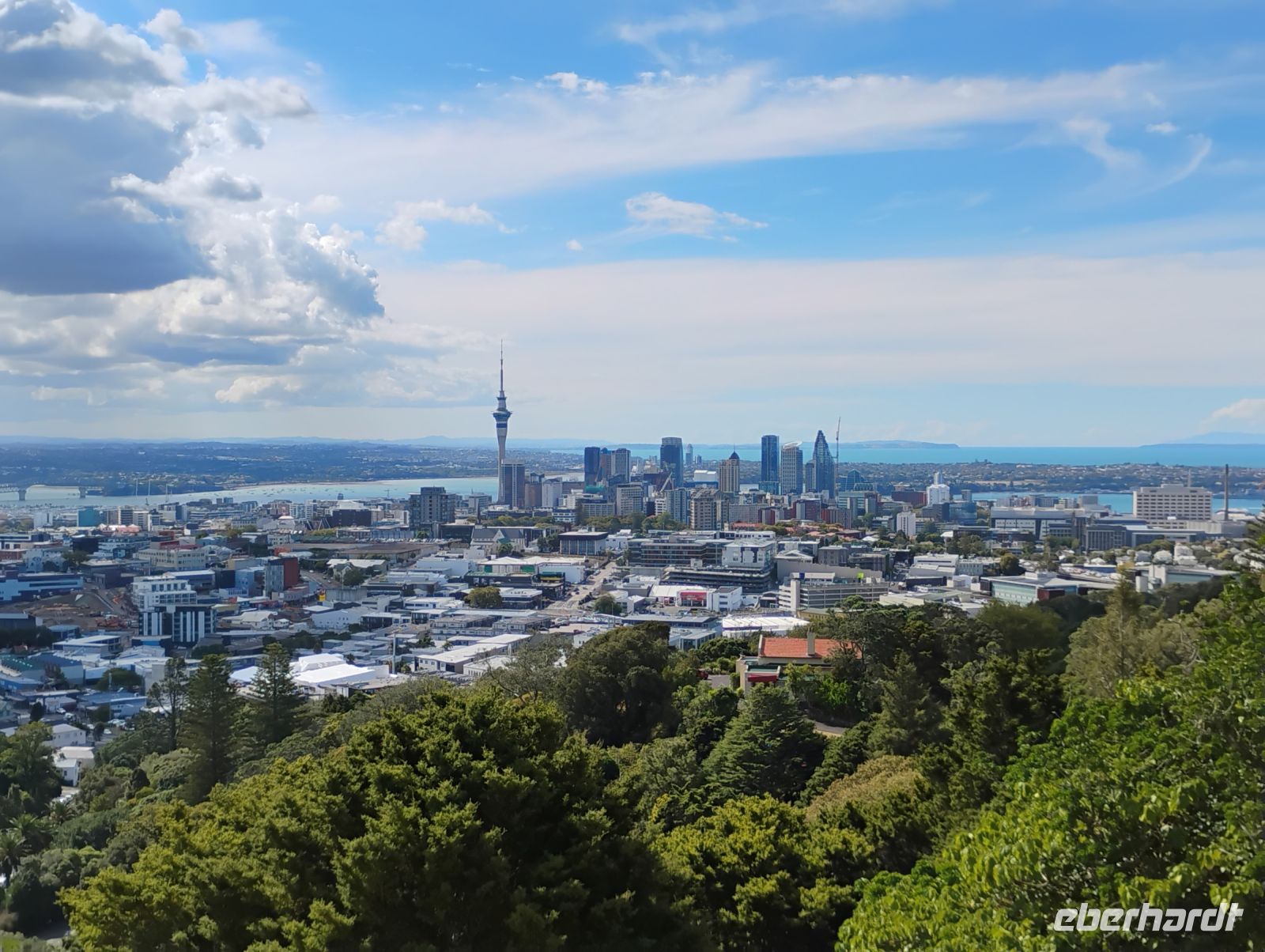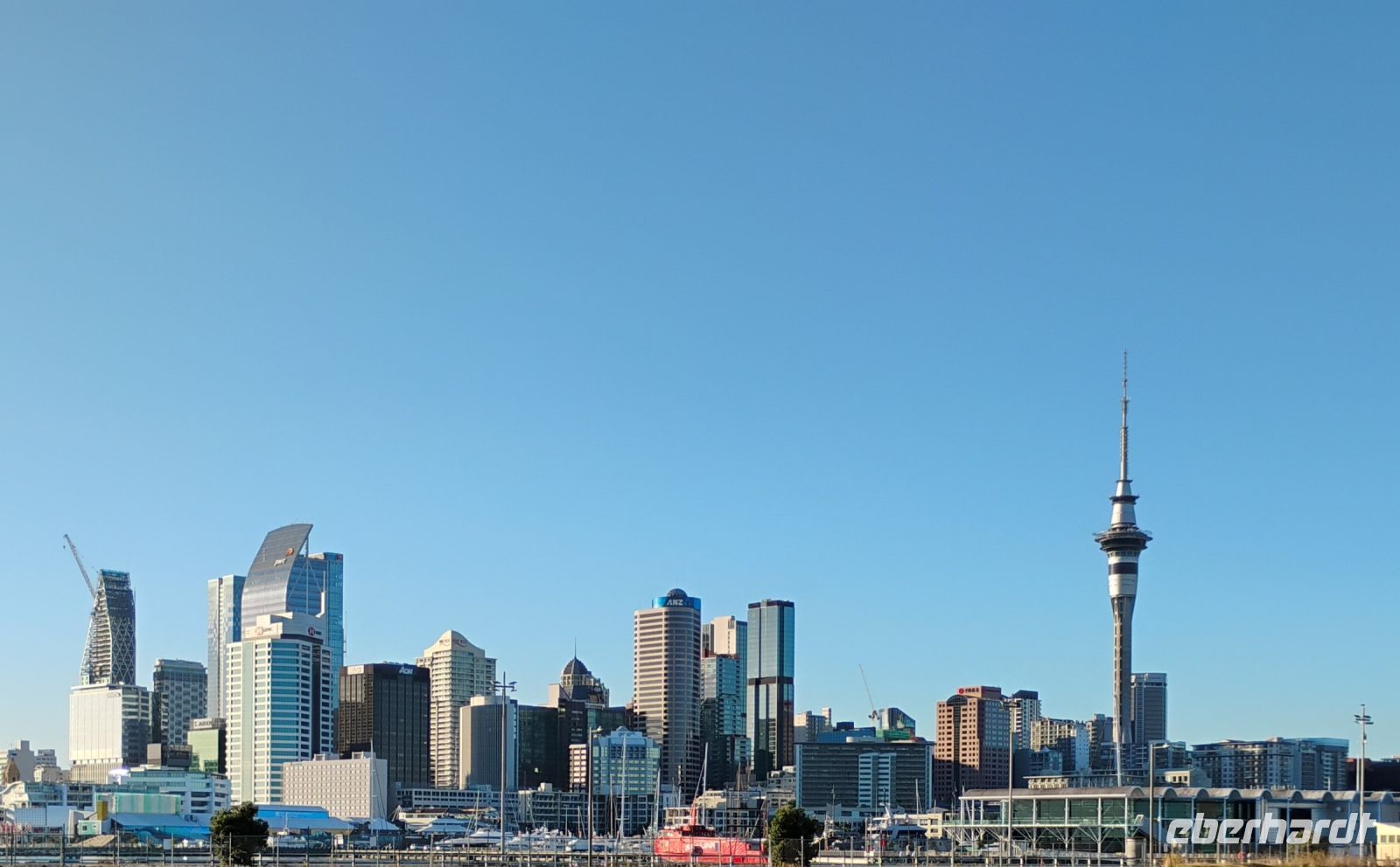 Nach dem Verladen des Gepäcks starteten wir zu einer ersten Orientierungstour durch Auckland. Mit 1,6 Millionen Einwohnern ist sie die mit Abstand größte Stadt des Landes, auch wenn sie nicht die Hauptstadt ist – diesen Titel trägt das weiter südlich gelegene Wellington.