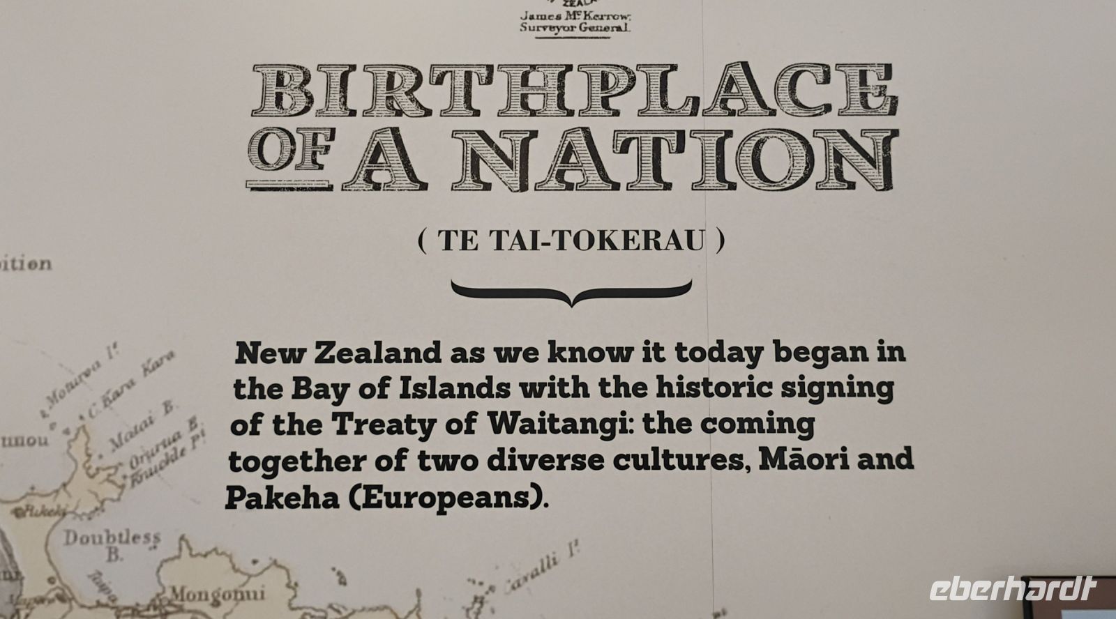 Kurz vor Paihia legten wir einen weiteren Halt ein – an einem geschichtsträchtigen Ort in der Nähe des Golfplatzes. Hier, am Waitangi Treaty Grounds, wurde 1840 der Vertrag von Waitangi unterzeichnet, der als Neuseelands Gründungsdokument gilt. Er legte die Grundlage für das Verhältnis zwischen den Maori und der britischen Krone. Bis heute wird der Waitangi Day jedes Jahr am 6. Februar als Nationalfeiertag begangen.