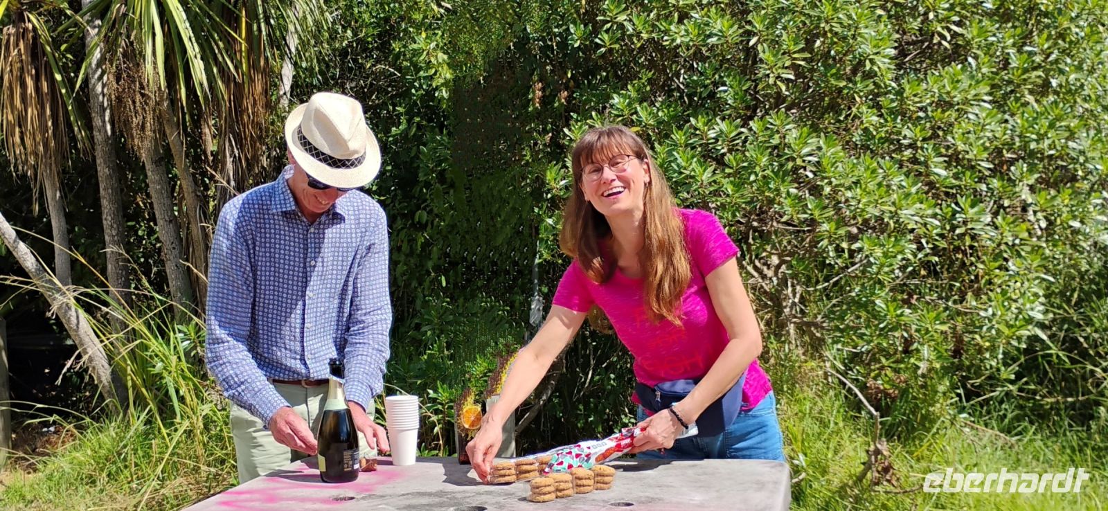 In Neuseeland gibt es in vielen Motels die Möglichkeit, ein Barbecue zu veranstalten – eine Gelegenheit, die wir gerne nutzten. Alec und ich besorgten die Zutaten, und dank der tatkräftigen Unterstützung aller Teilnehmer war schnell ein köstliches Barbecue zubereitet: verschiedene Fleischsorten, frische Salate und leckere Beilagen. Zum krönenden Abschluss gab es einen klassischen Apple Crumble mit Hokey Pokey Eiscreme, einer neuseeländischen Spezialität.