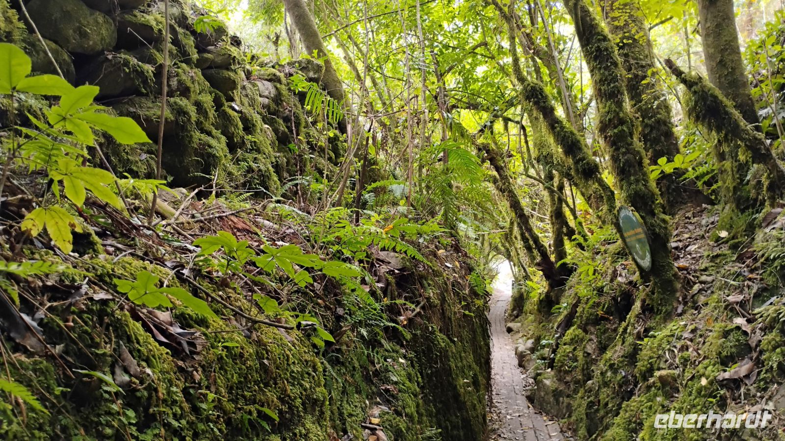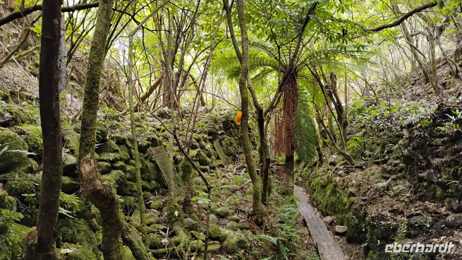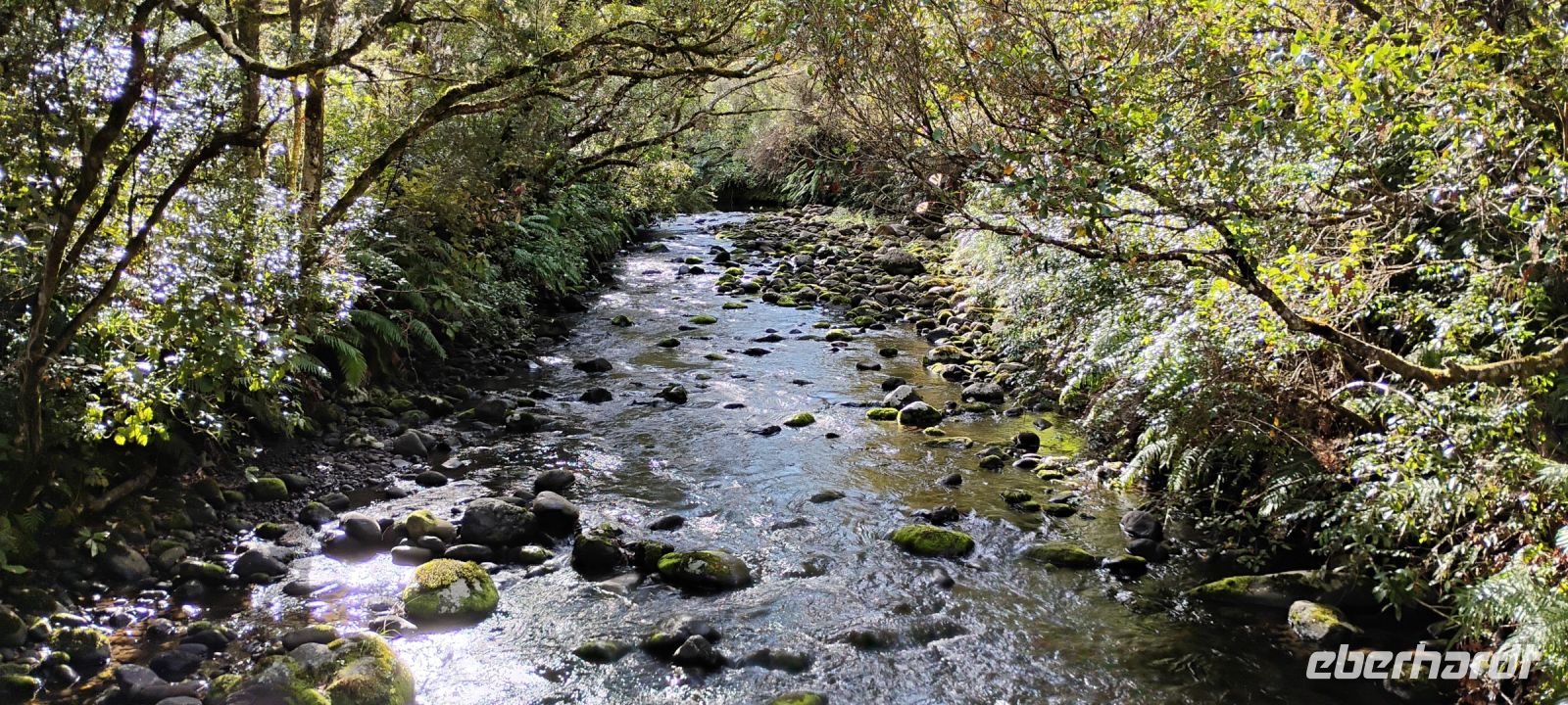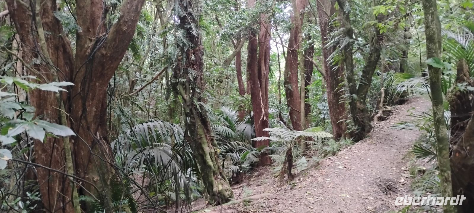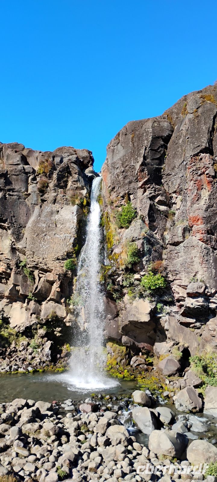 Die ersten drei Kilometer liefen wir gemeinsam auf einem wunderschönen Wanderweg, der uns durch einen dichten Wald und entlang eines plätschernden Baches führte. Unser erster Höhepunkt war der malerische Taranaki-Wasserfall, dessen Wassermassen sich spektakulär über eine Felskante in die Tiefe stürzen.