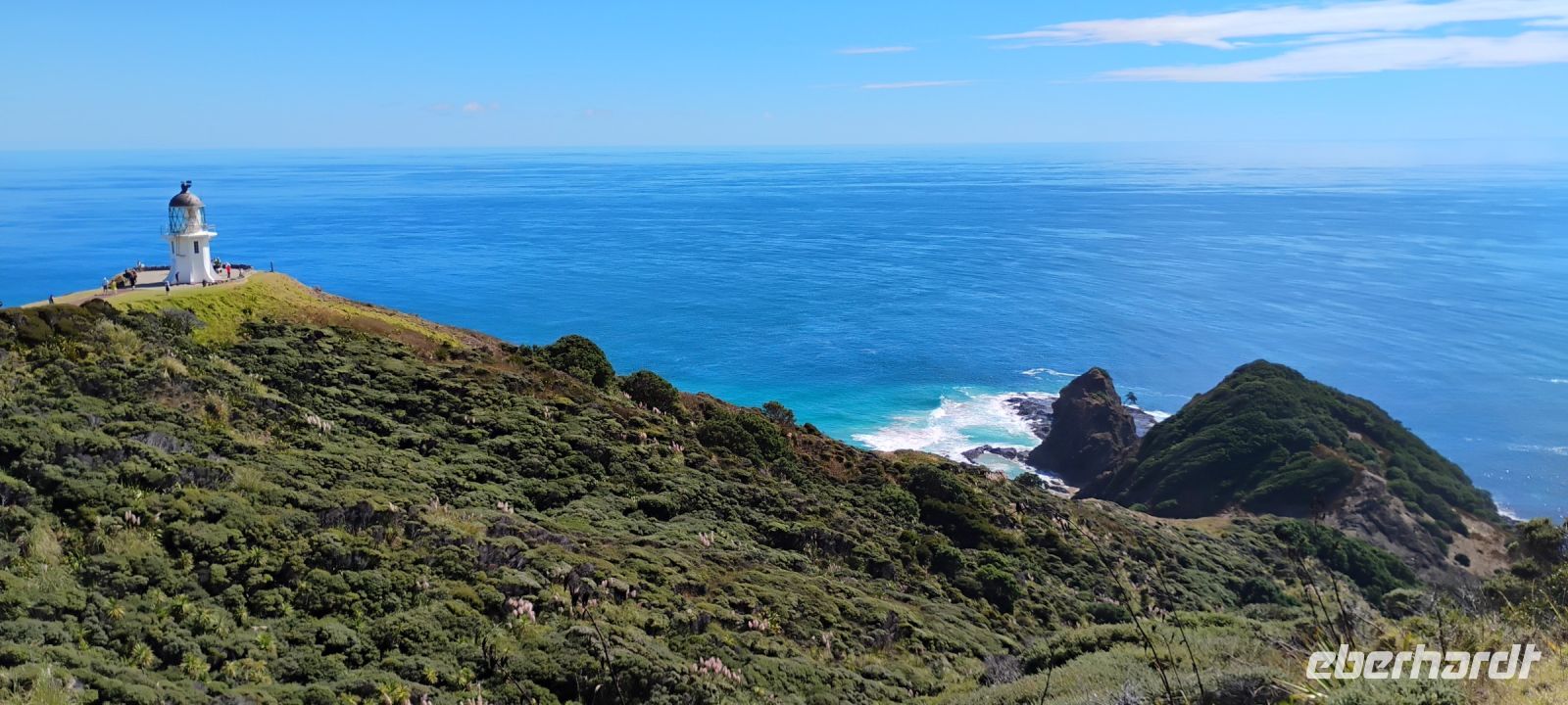 Nach einer längeren Fahrt erreichten wir schließlich Cape Reinga, einen der spirituell bedeutendsten Orte der Maori. Von hier aus, so heißt es, reisen die Seelen der Verstorbenen entlang der Küste zum Pohutukawa-Baum auf der Landzunge Te Rerenga Wairua, um ihren Weg in die andere Welt anzutreten. Nach einer entspannten Wanderung hinunter zum Leuchtturm genossen wir den einzigartigen Ausblick, wo das Blau der Tasmansee und des Pazifiks aufeinandertrifft.