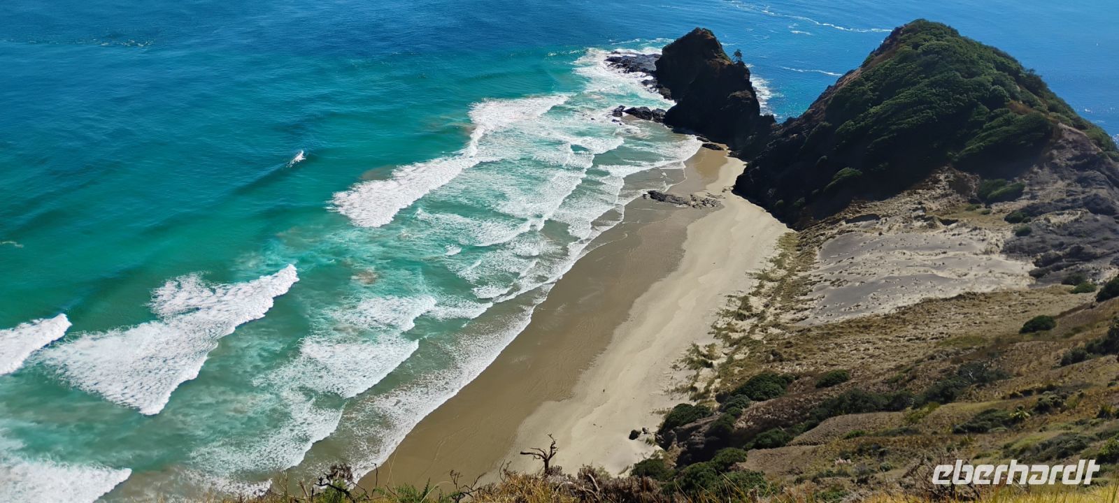 Von dort machten wir einen kleinen Abstecher abseits der Hauptstraße und erreichten einen wunderschönen Küstenabschnitt: Waipu Beach. Der feinsandige Strand mit seinen sanften Wellen lud zu einem kurzen Spaziergang ein, während wir die frische Meeresbrise genossen. Ein perfekter Moment, um durchzuatmen und den Blick über das türkisfarbene Wasser schweifen zu lassen.