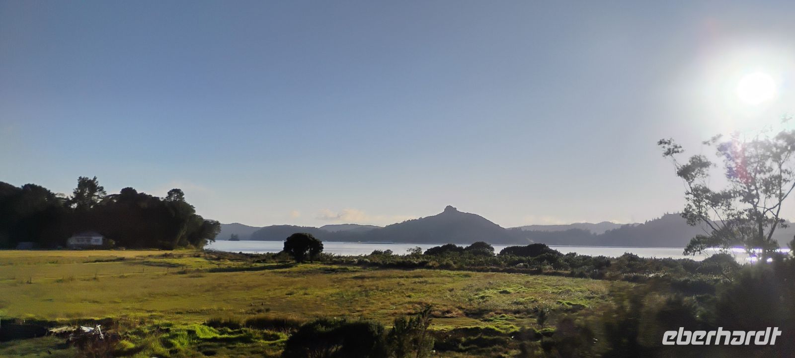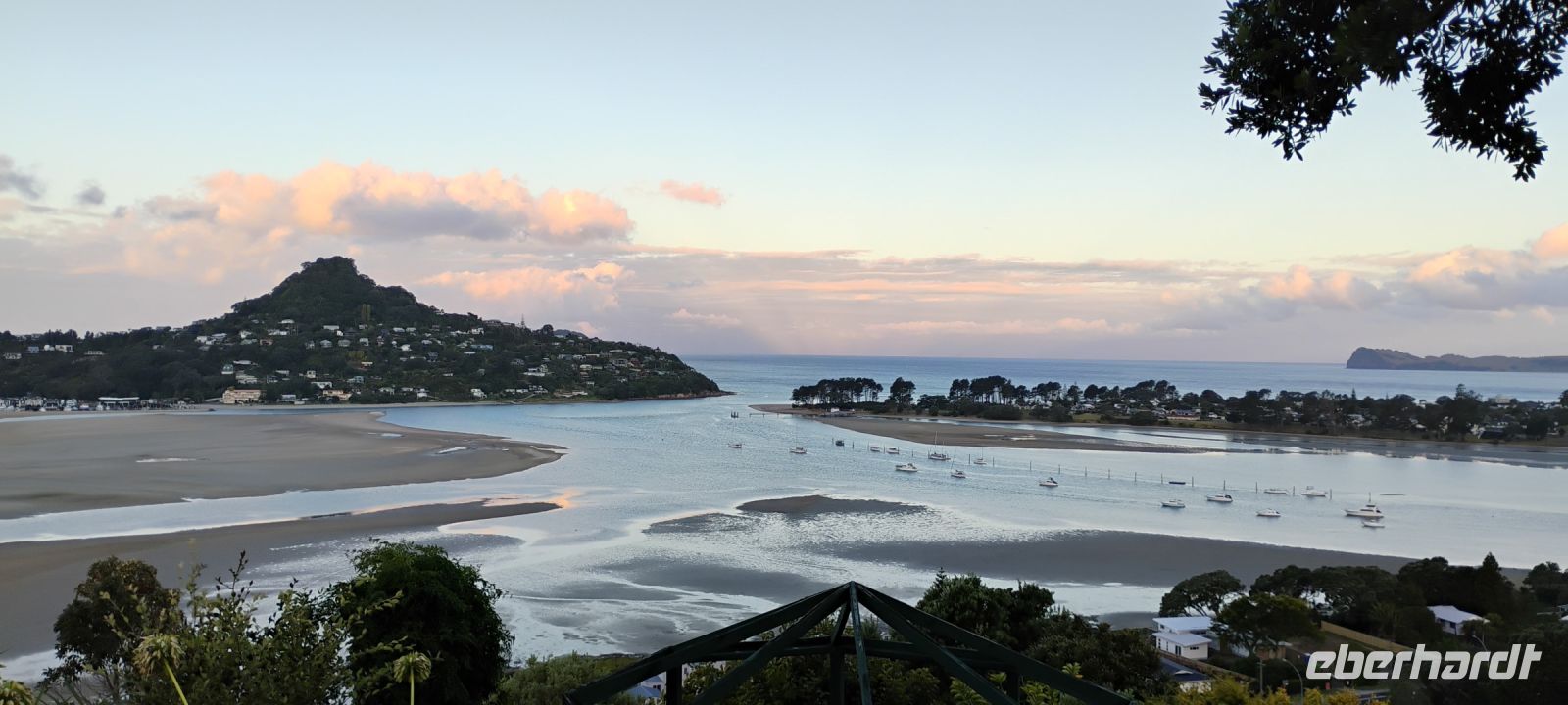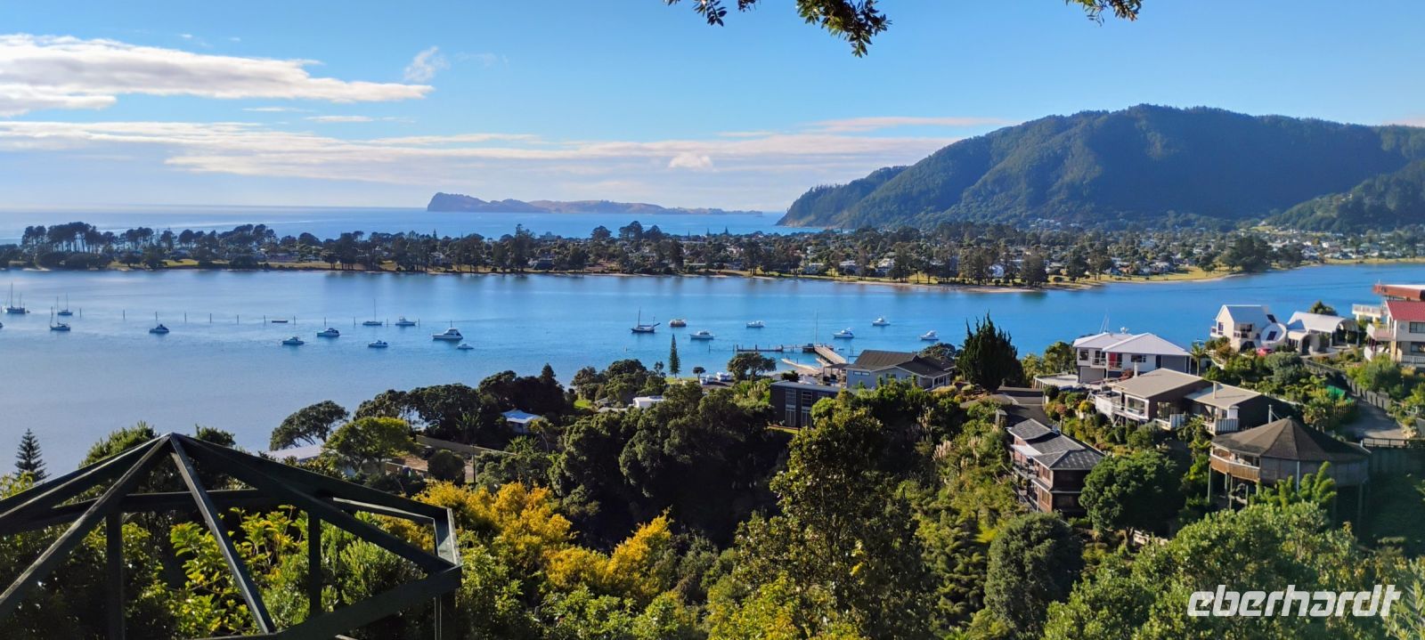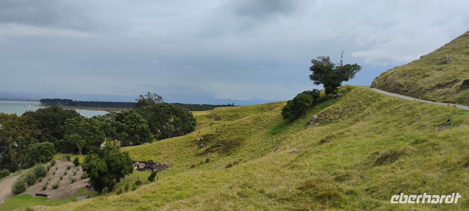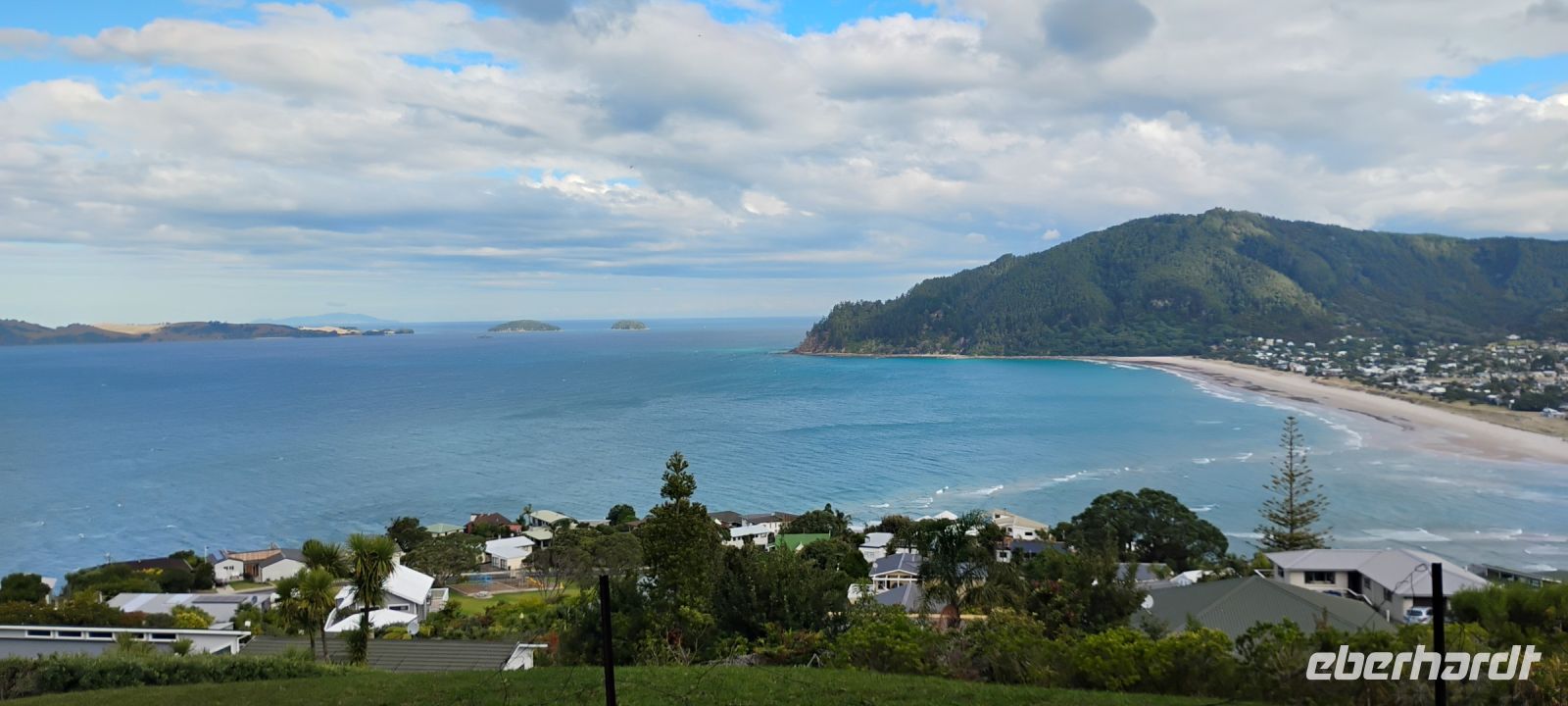 Gegen Mittag kamen wir wieder in Auckland an – leider im Regen. Nach einer kurzen Mittagspause setzten wir unsere Reise fort in Richtung Coromandel-Halbinsel. Die Landschaft wurde zunehmend grüner, die Straßen kurviger, und wir spürten, dass wir uns einer besonders reizvollen Region näherten. Bevor wir in unsere Unterkunft eincheckten, machten wir noch einen kleinen Abstecher auf den Paku Hill. Der Aufstieg war kurz, aber lohnenswert: Oben angekommen, belohnte uns ein grandioser Blick auf die Küste – und passend dazu kam auch die Sonne heraus!