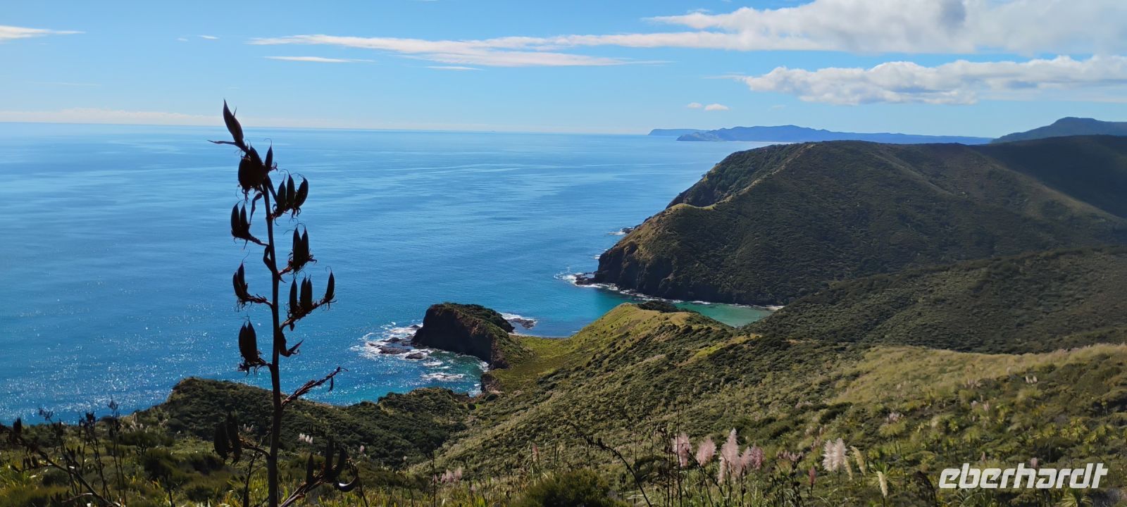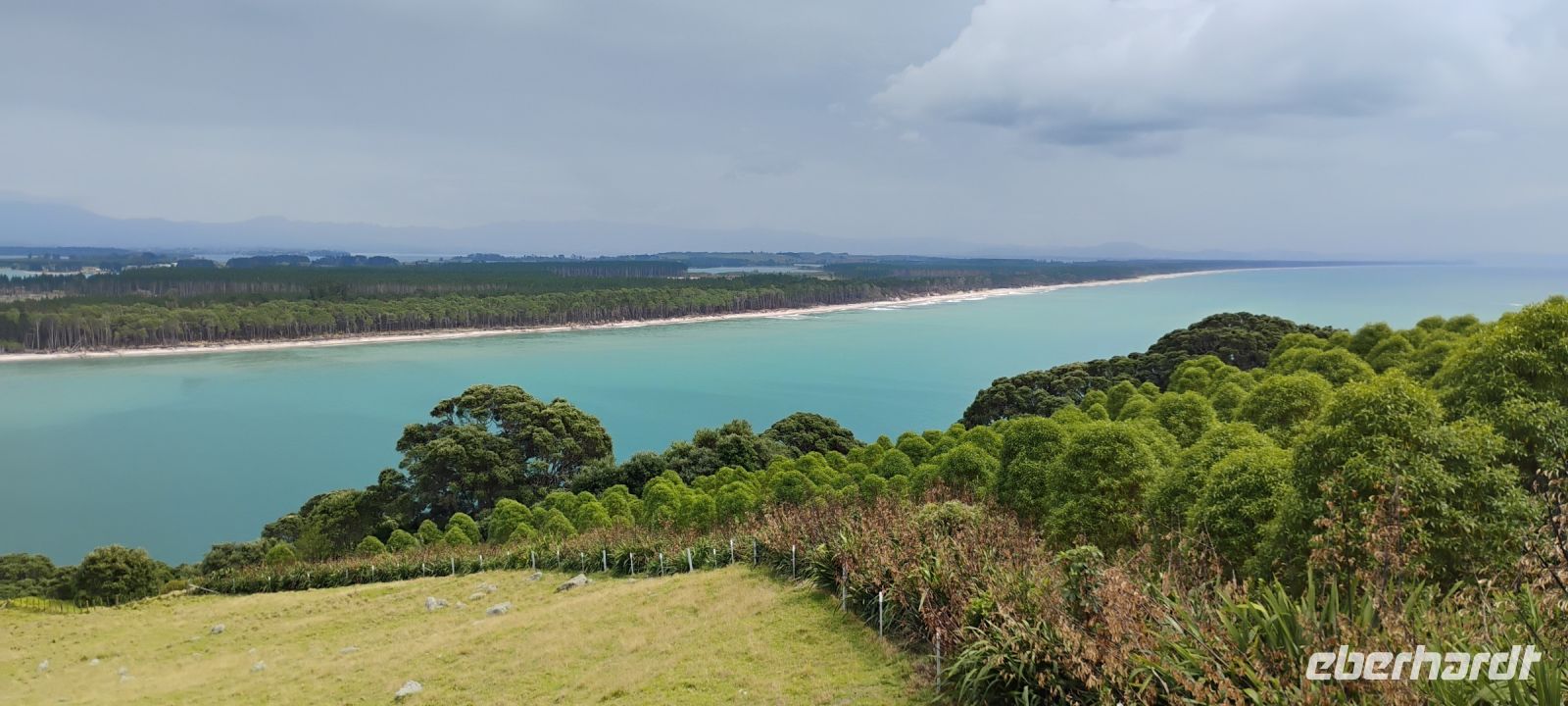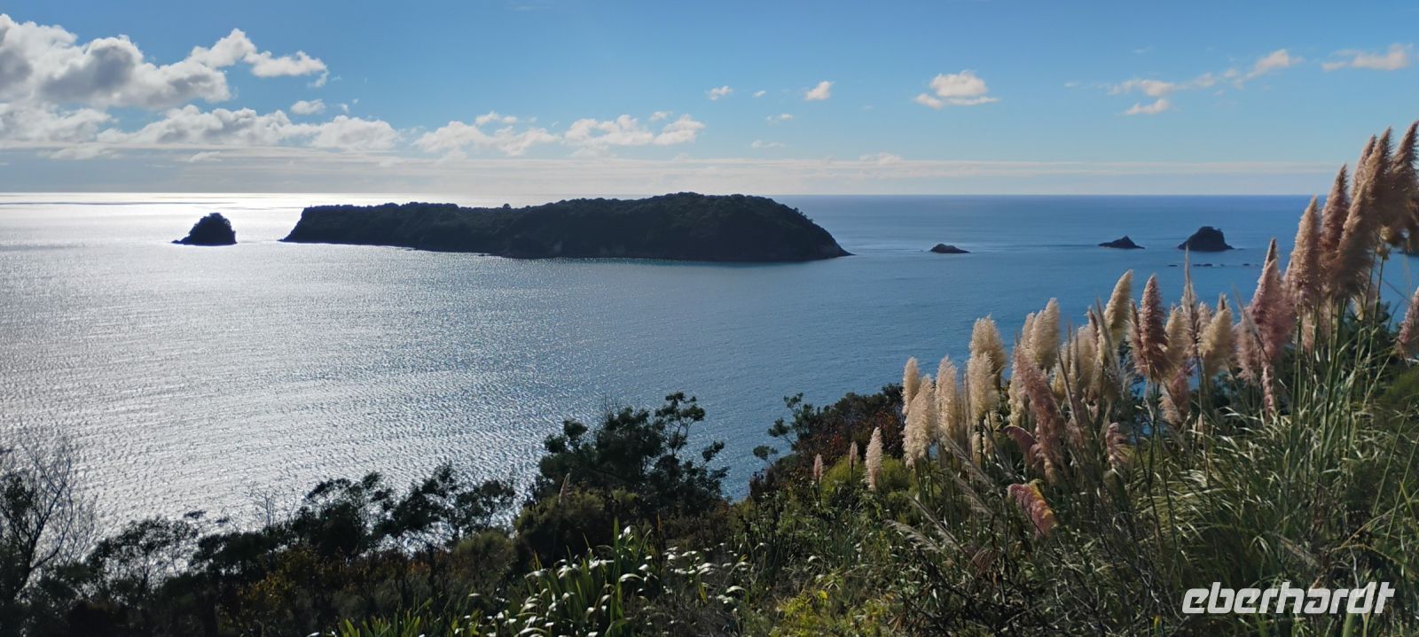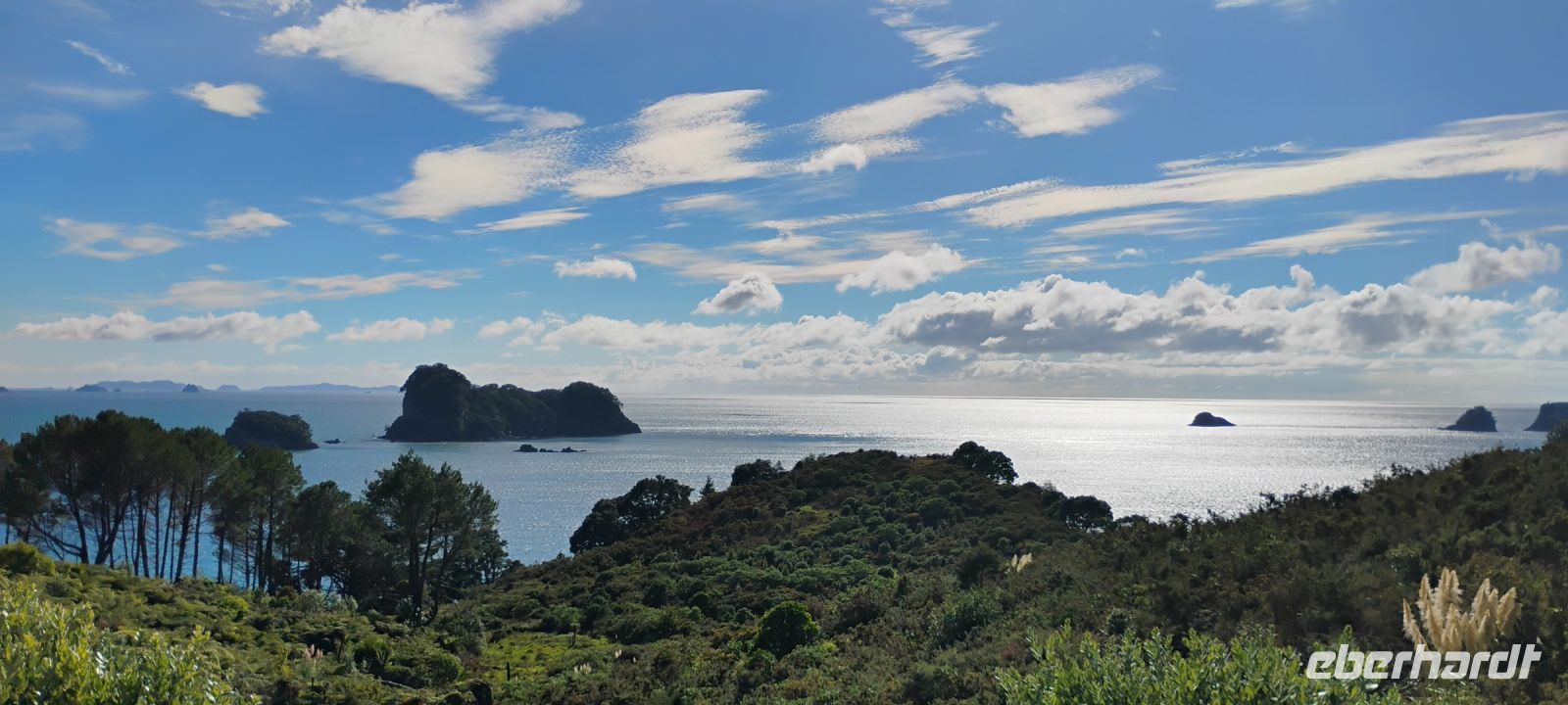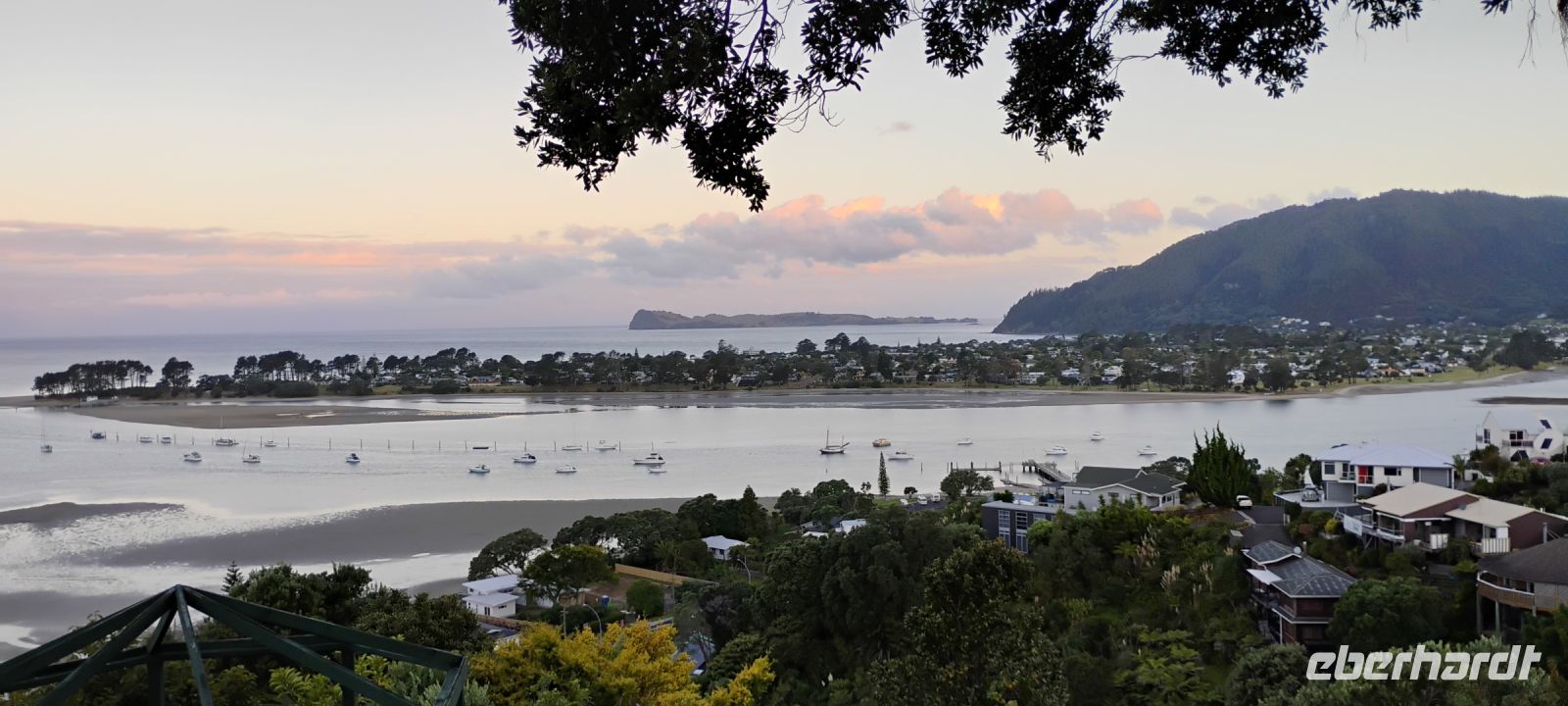 Gegen Mittag kamen wir wieder in Auckland an – leider im Regen. Nach einer kurzen Mittagspause setzten wir unsere Reise fort in Richtung Coromandel-Halbinsel. Die Landschaft wurde zunehmend grüner, die Straßen kurviger, und wir spürten, dass wir uns einer besonders reizvollen Region näherten. Bevor wir in unsere Unterkunft eincheckten, machten wir noch einen kleinen Abstecher auf den Paku Hill. Der Aufstieg war kurz, aber lohnenswert: Oben angekommen, belohnte uns ein grandioser Blick auf die Küste – und passend dazu kam auch die Sonne heraus!
