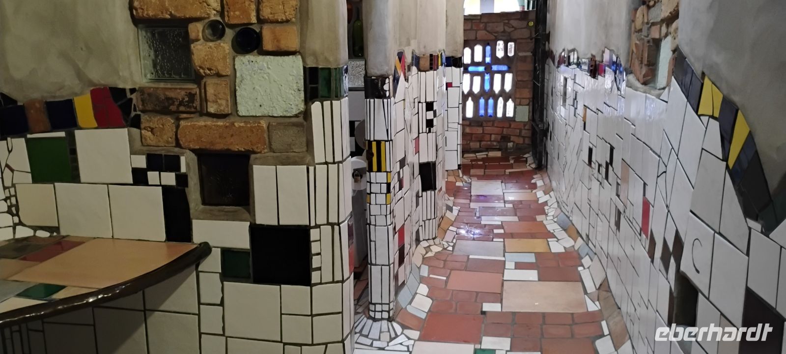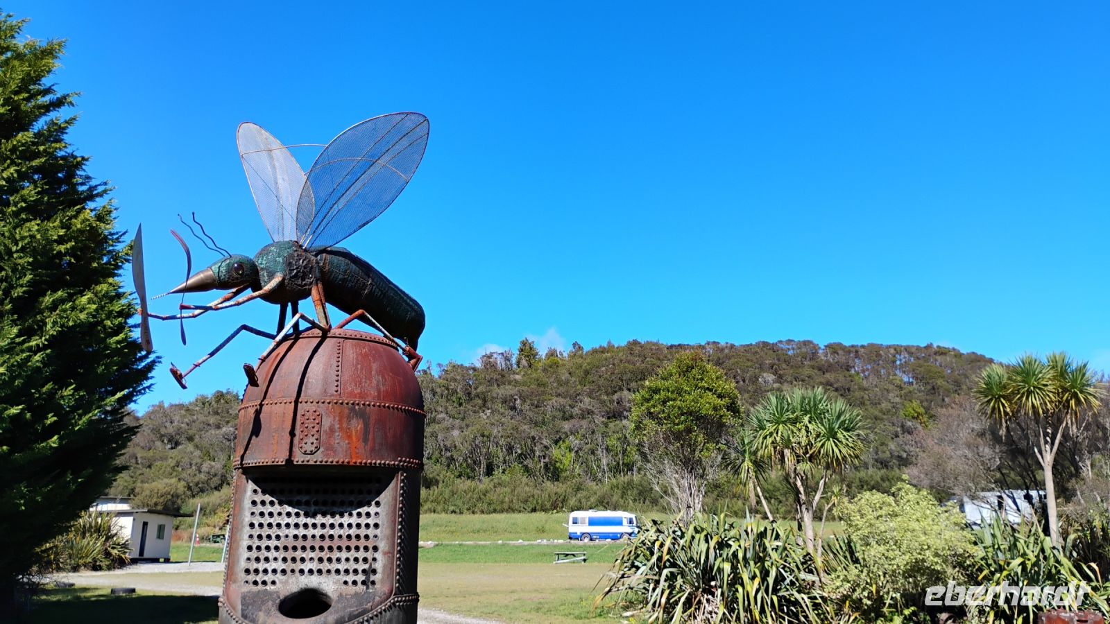 Unser Tag begann mit einem besonderen Stopp: der Hundertwasser-Toilette in Kawakawa. Der österreichische Künstler Friedensreich Hundertwasser, der in den 1970er Jahren nach Neuseeland auswanderte, hinterließ hier eines seiner ungewöhnlichen, aber faszinierenden Bauwerke. Mit seinen bunten Mosaiken, geschwungenen Linien und Säulen verwandelte er eine einfache Toilette in ein kleines Kunstwerk – ein unerwartetes, aber lohnenswertes Fotomotiv!