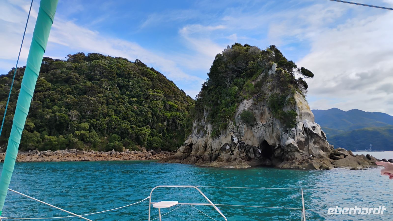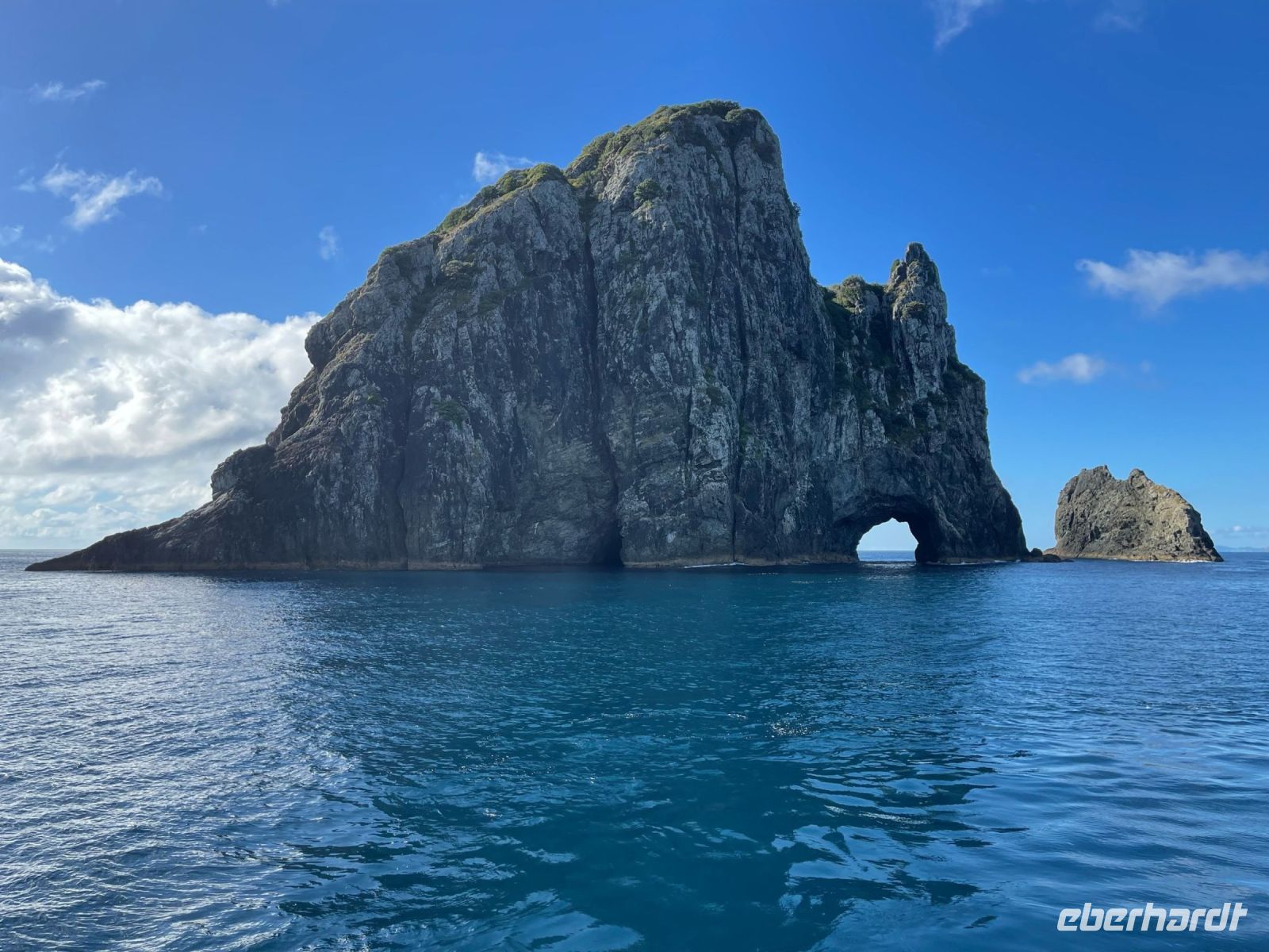 Ein Reisegast unserer Gruppe entschied sich für die Bootstour durch die idyllische Bay of Islands – und erlebte einen Tag voller magischer Momente. Und das bei strahlendem Sonnenschein und nahezu windstillem Wetter. Ein besonderes Highlight war die Begegnung mit Delfinen, die neugierig ans Boot heranschwammen. Ein weiterer unvergesslicher Moment war die Fahrt unter dem berühmten "Hole in the Rock" hindurch – ein Naturspektakel, das aus nächster Nähe noch beeindruckender wirkte. Neben den atemberaubenden Felsformationen bot die Tour auch traumhafte Ausblicke auf einsame, unberührte Strände, die die Schönheit dieser Region perfekt einfingen. Ein Tag voller Naturwunder und unvergesslicher Eindrücke!