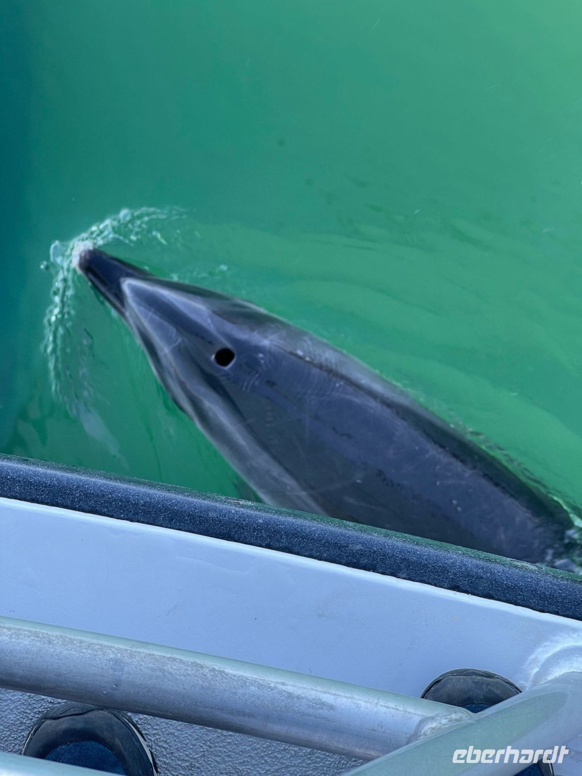 Erst als wir weiter hinaus in Richtung offene See fuhren, wurden wir schließlich belohnt: Ein einzelner Delfin tauchte auf – ein besonderer Moment, den wir allerdings nur kurz genießen konnten.