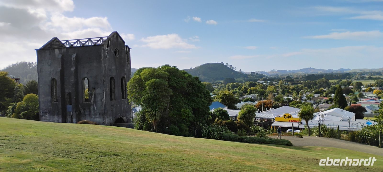 Bei Sonnenschein und von leichten Nebelschwaden begleiteter Landschaft setzten wir unsere Reise fort. Unser erster Halt war das kleine Örtchen Waihi, bekannt für die reichste Goldmine Neuseelands. Nach einem kurzen Rundgang fuhren wir weiter durch Katikati, die „Mural Town“, deren kunstvoll bemalte Hauswände wir während der Durchfahrt bestaunen konnten. An unzählige Kiwi-Plantagen vorbei erreichten wir schließlich Tauranga.