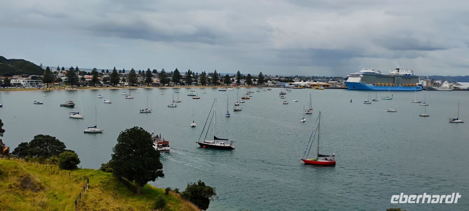Dort legten wir eine ausgedehnte Mittagspause ein. Wer wollte, konnte entlang der Strandpromenade spazieren oder eine Wanderung um den Mount Maunganui unternehmen, den Hausberg der Stadt. Die Wanderung belohnte mit schönen Ausblicken über die Küste, während andere sich lieber in einem der vielen Cafés entspannten.