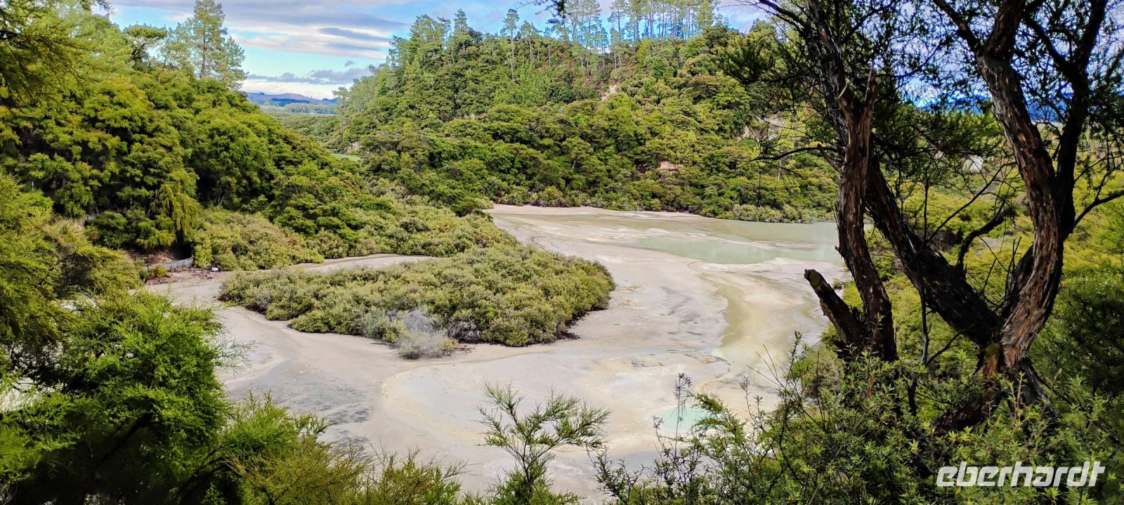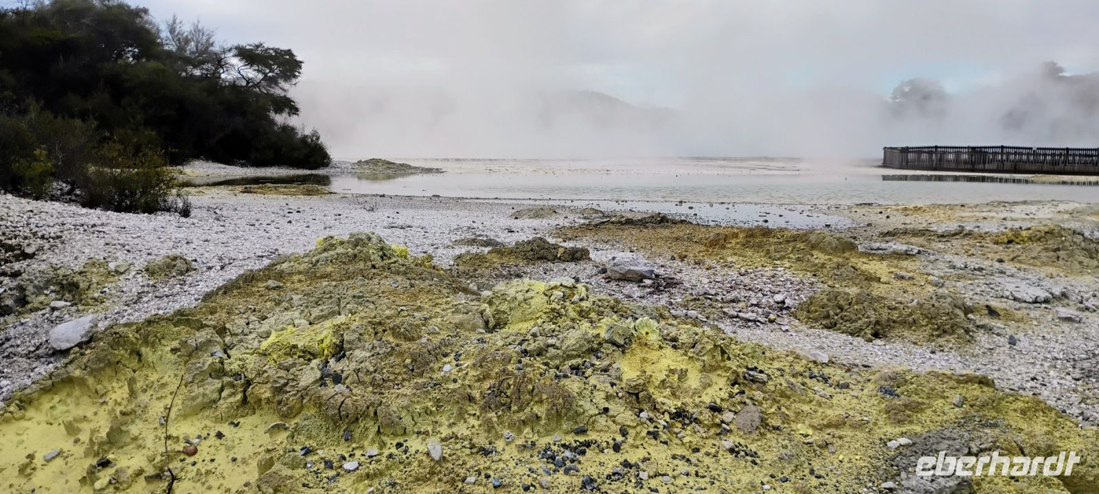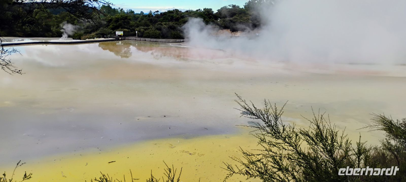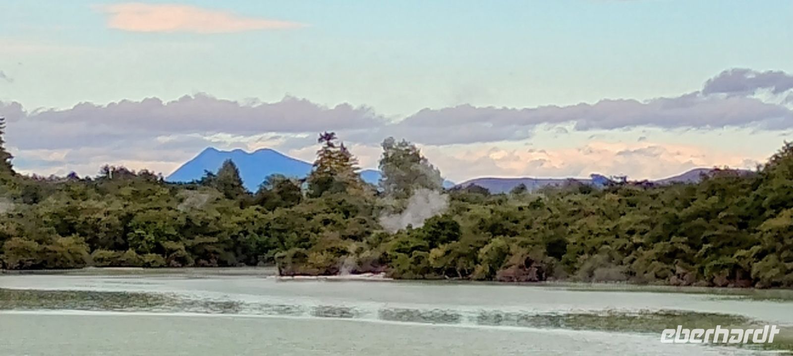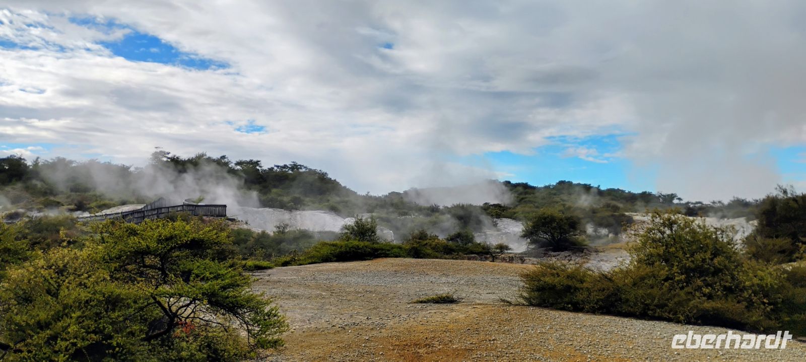 Während der Fahrt erzählte Alec unter anderem von dem großen Vulkanausbruch des Mount Tongariro, während aus der Landschaft links und rechts der Straße immer wieder Dampfschwaden aufstiegen – ein Zeichen für die geothermische Aktivität, die diese Region prägt.