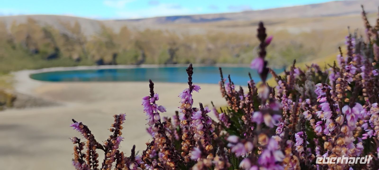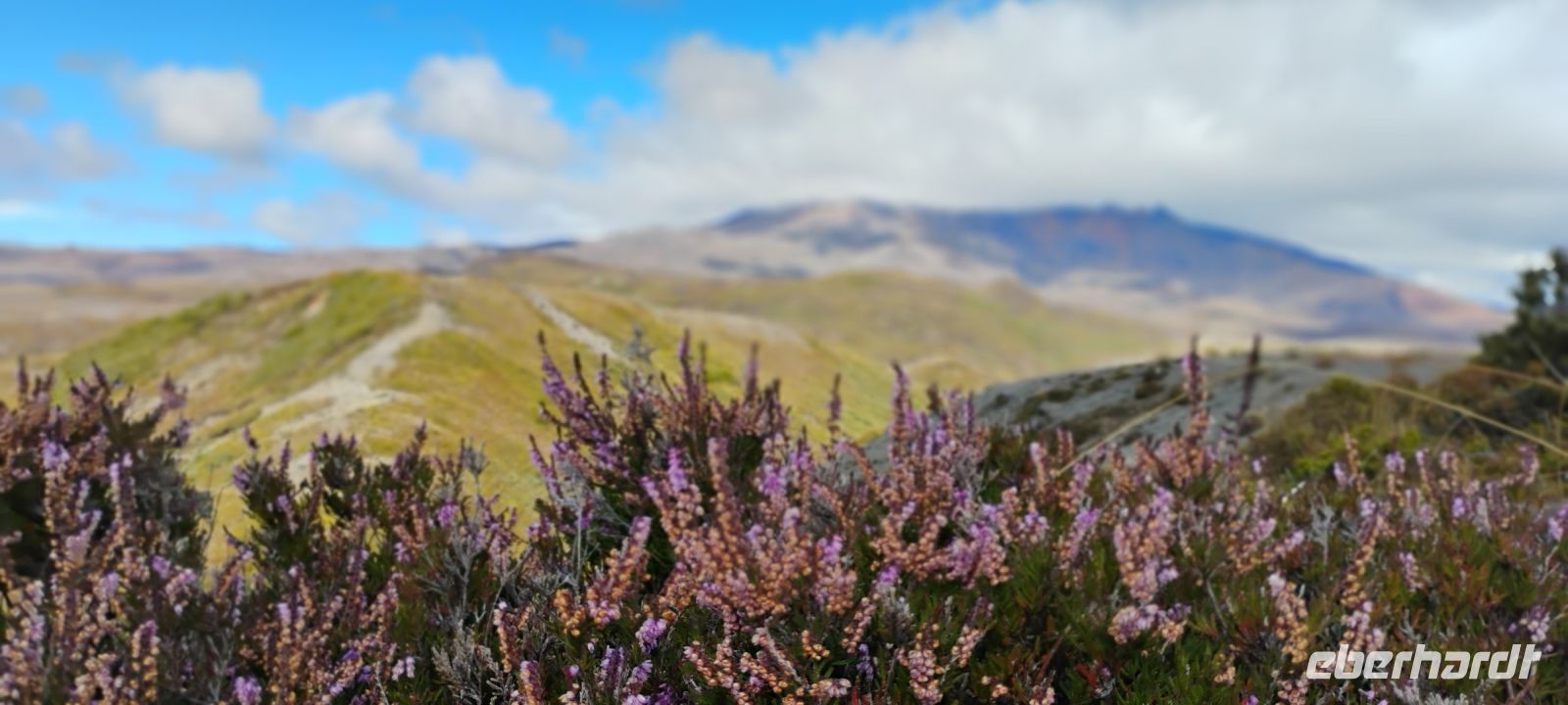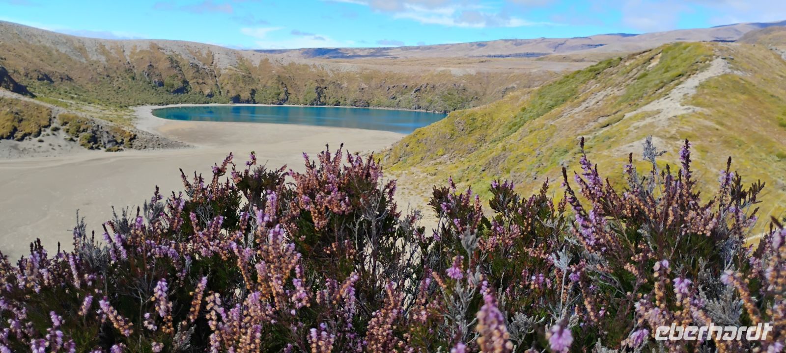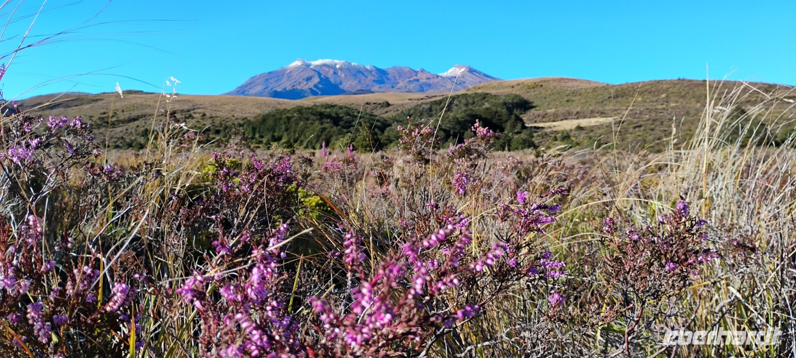 Der Weg zum Lower Tama Lake führte uns durch offene Vulkanlandschaft mit grandiosen Ausblicken. Auch die Flora entlang des Weges faszinierte uns: Neben eingeschlepptem Erika entdeckten wir auch einen einheimischen weißen Enzian.