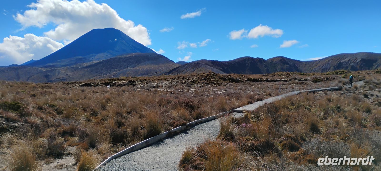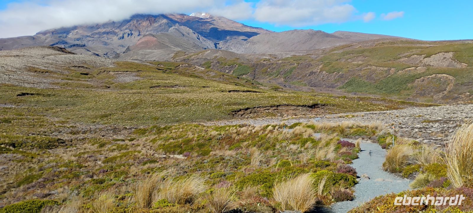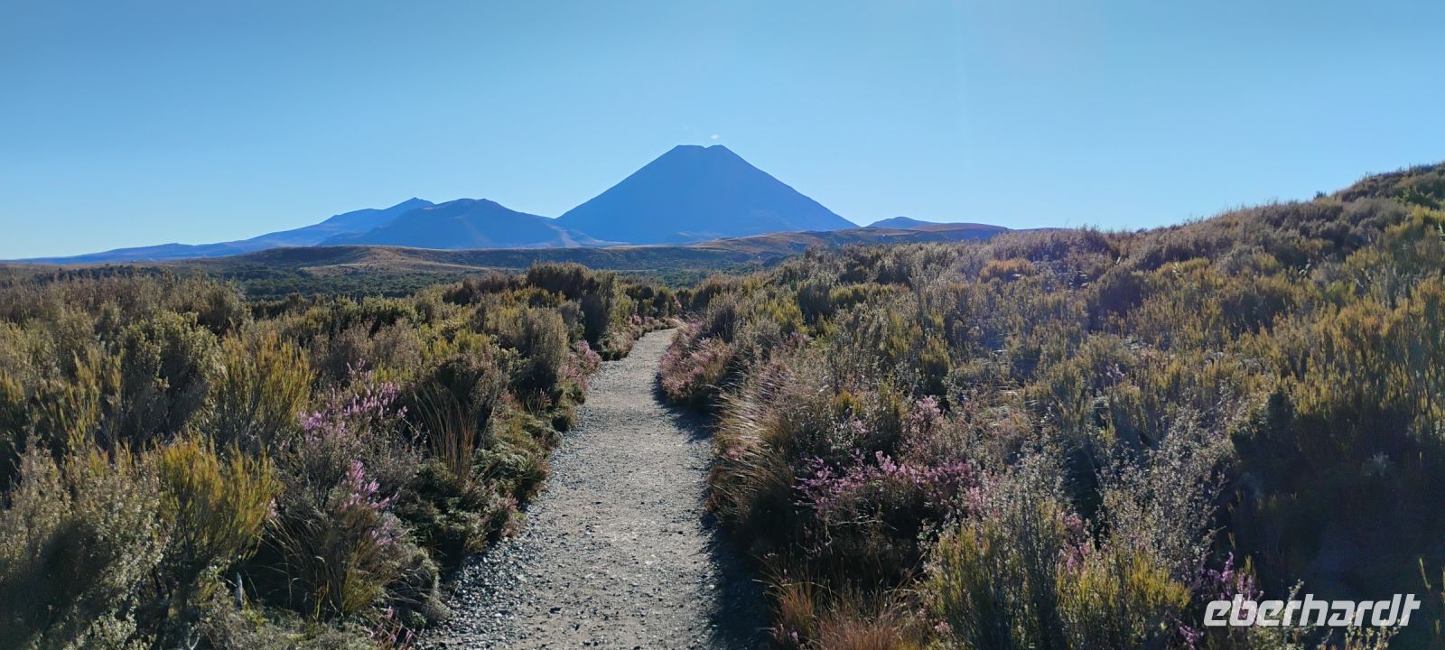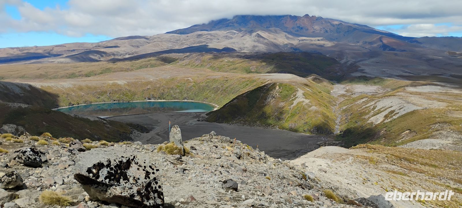 Der Weg zum Lower Tama Lake führte uns durch offene Vulkanlandschaft mit grandiosen Ausblicken. Auch die Flora entlang des Weges faszinierte uns: Neben eingeschlepptem Erika entdeckten wir auch einen einheimischen weißen Enzian.