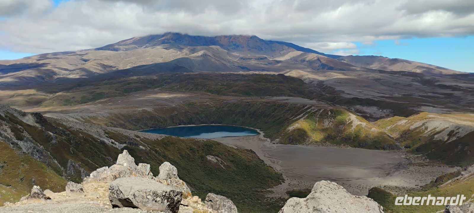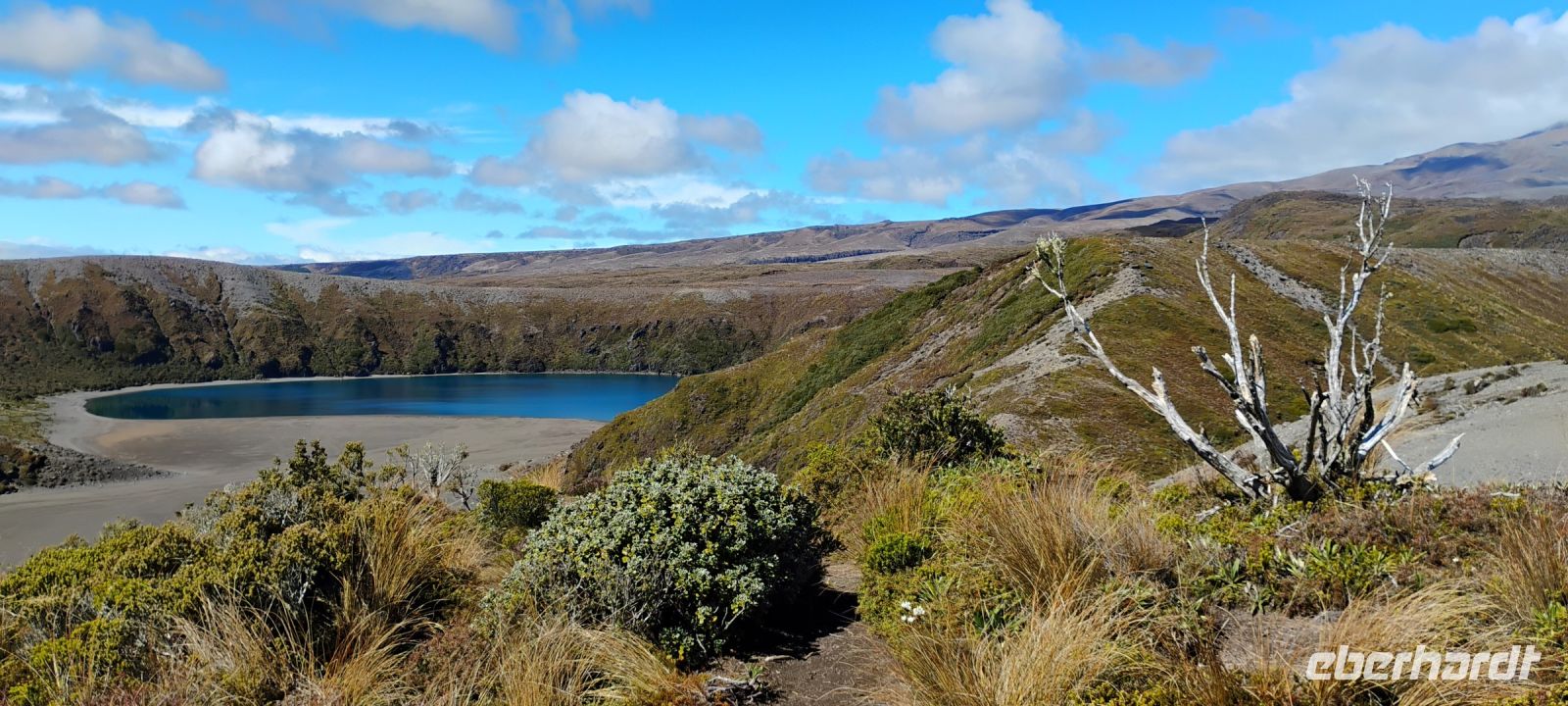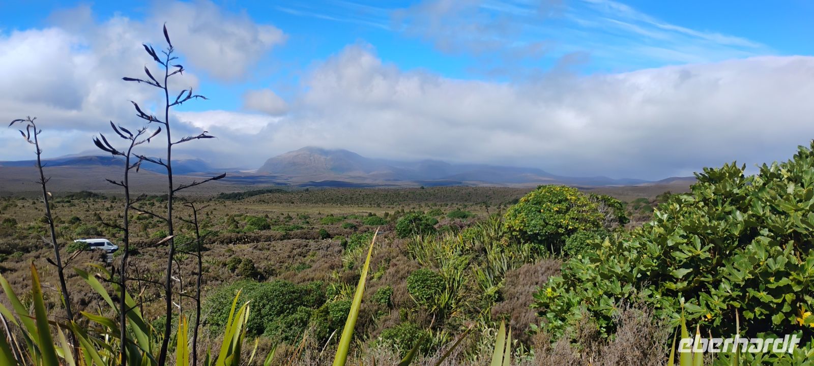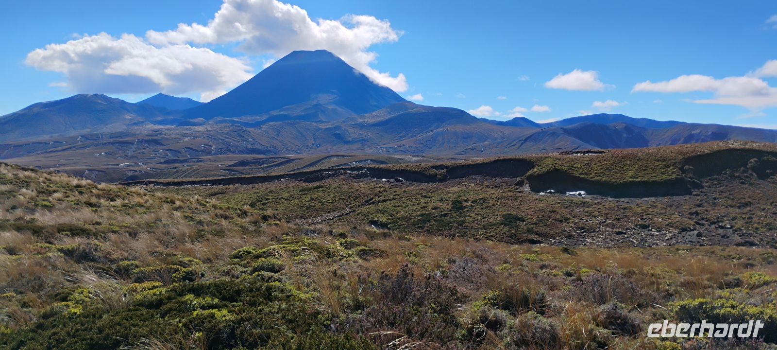 Der Weg zum Lower Tama Lake führte uns durch offene Vulkanlandschaft mit grandiosen Ausblicken. Auch die Flora entlang des Weges faszinierte uns: Neben eingeschlepptem Erika entdeckten wir auch einen einheimischen weißen Enzian.