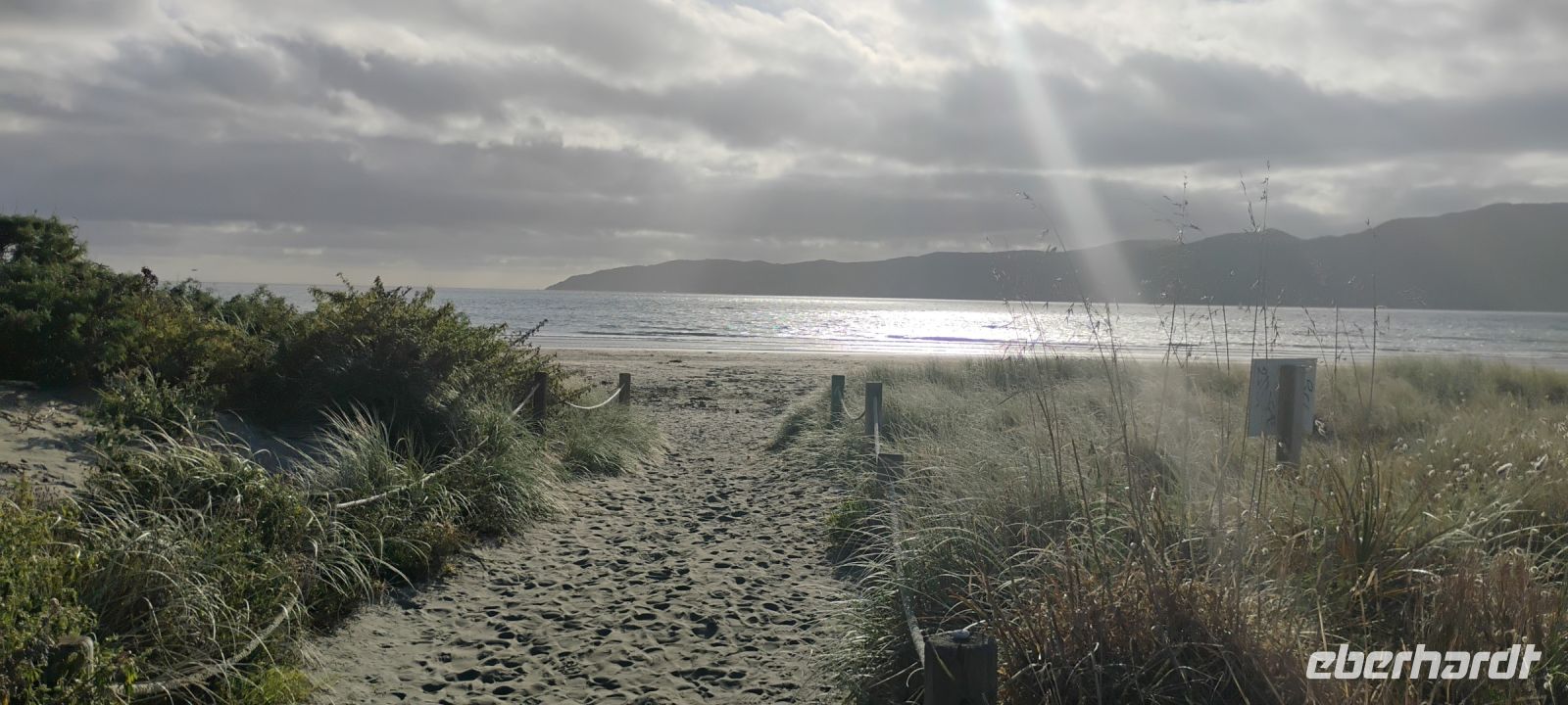Nach einem kurzen Einkauf im Supermarkt für unseren morgigen Ausflug auf Kapiti Island erreichten wir am späten Nachmittag unser Hotel in Paraparaumu. Einige von uns nutzten die Zeit für einen entspannten Spaziergang am nahegelegenen langen Sandstrand, um die salzige Meeresluft zu genießen.