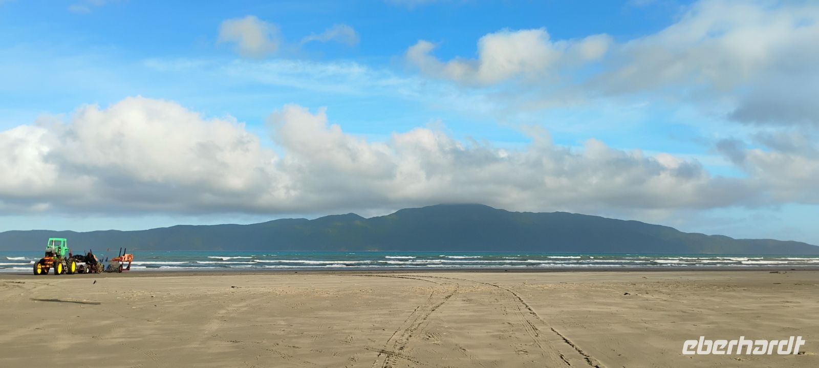 Nach einer kurzen Mittagspause setzten wir unsere Reise fort – es ging weiter zum berühmten 90 Mile Beach. Auch wenn der Name etwas anderes vermuten lässt, ist dieser Strand in Wirklichkeit nur 55 Meilen (88 km) lang. Eine beliebte Erklärung für den Namen besagt, dass europäische Siedler früher drei Tage benötigten, um ihn zu überqueren. Da ihre Pferde etwa 30 Meilen am Tag schafften, nannten sie ihn 90 Mile Beach – ohne zu bedenken, dass das Tempo im tiefen Sand deutlich langsamer war.