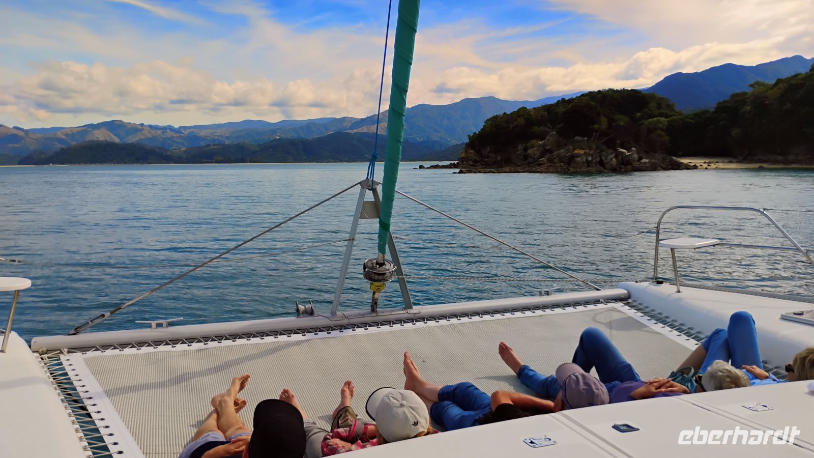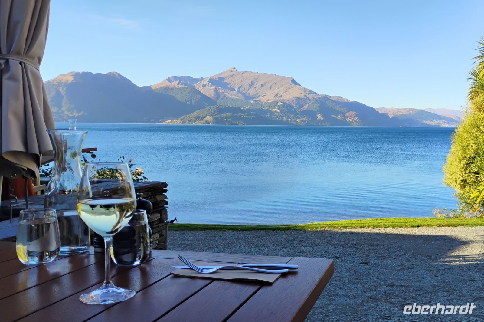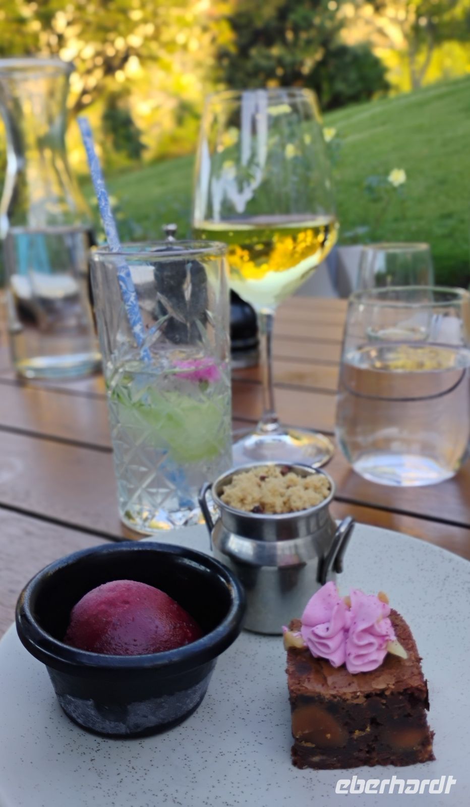 Das Essen war hervorragend, besonders das Lamb Loin begeisterte uns. Selbst der Chefkoch, ein Deutscher, der der Liebe wegen in Neuseeland geblieben ist, begrüßte uns persönlich. Auf Alex’ Empfehlung – schließlich ist Neuseeland für sein Lamm berühmt – wagten sich einige skeptische Gäste an das Gericht und wurden positiv überrascht: Das Fleisch war wunderbar zart und perfekt zubereitet.