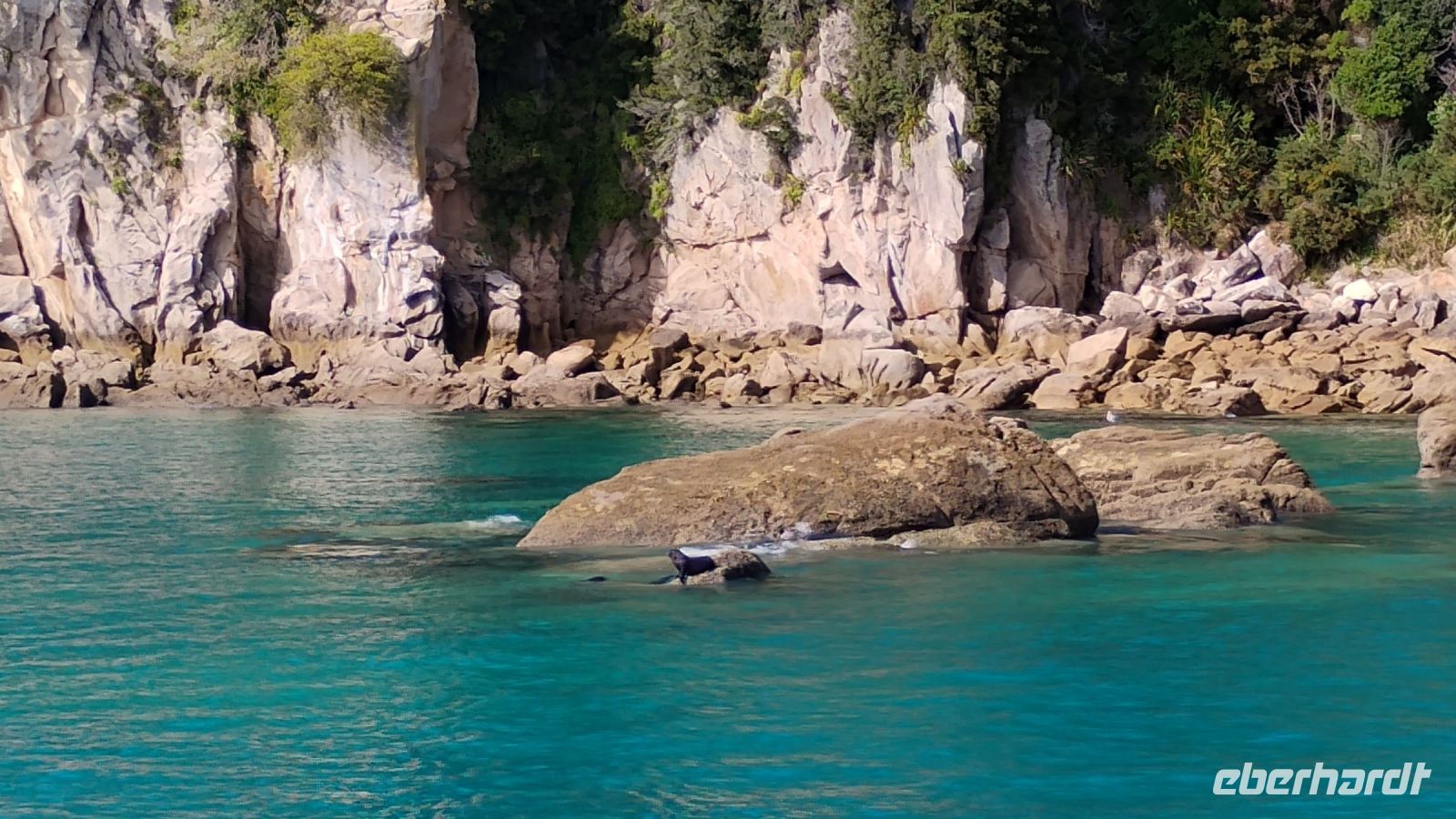 Kurz darauf begann unsere Bootsfahrt – bei leichtem Wellengang und mit Spannung an Bord. Zunächst sahen wir einige Pelzrobben und Seehunde, die sich auf den Felsen sonnten, doch die scheuen Hector-Delfine, eine der kleinsten und seltensten Delfinarten der Welt, ließen auf sich warten.