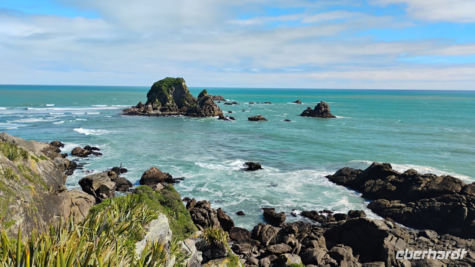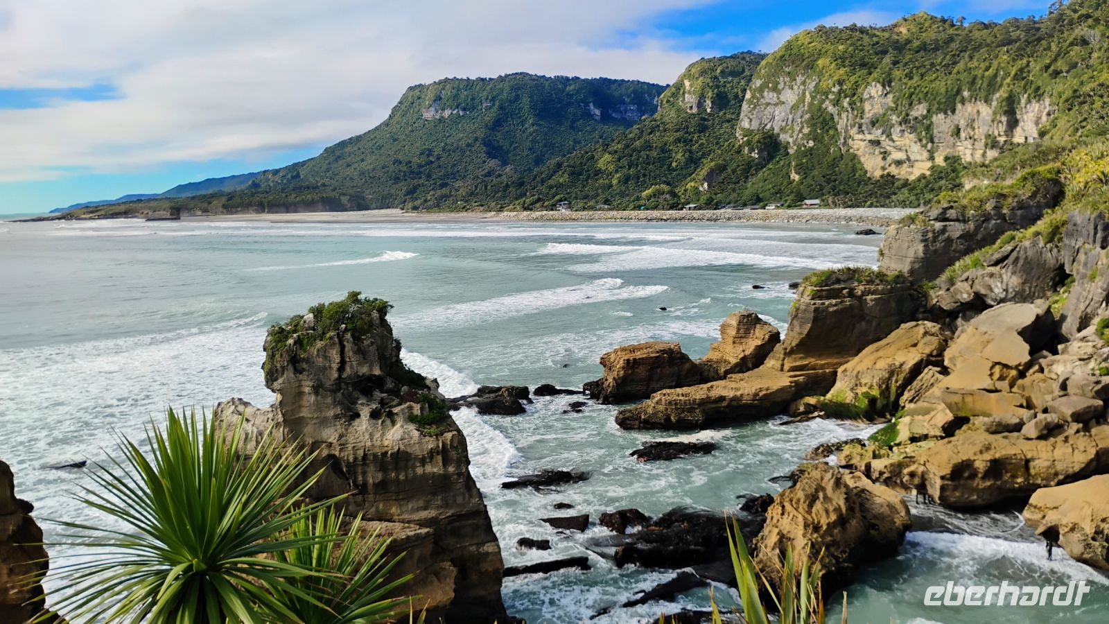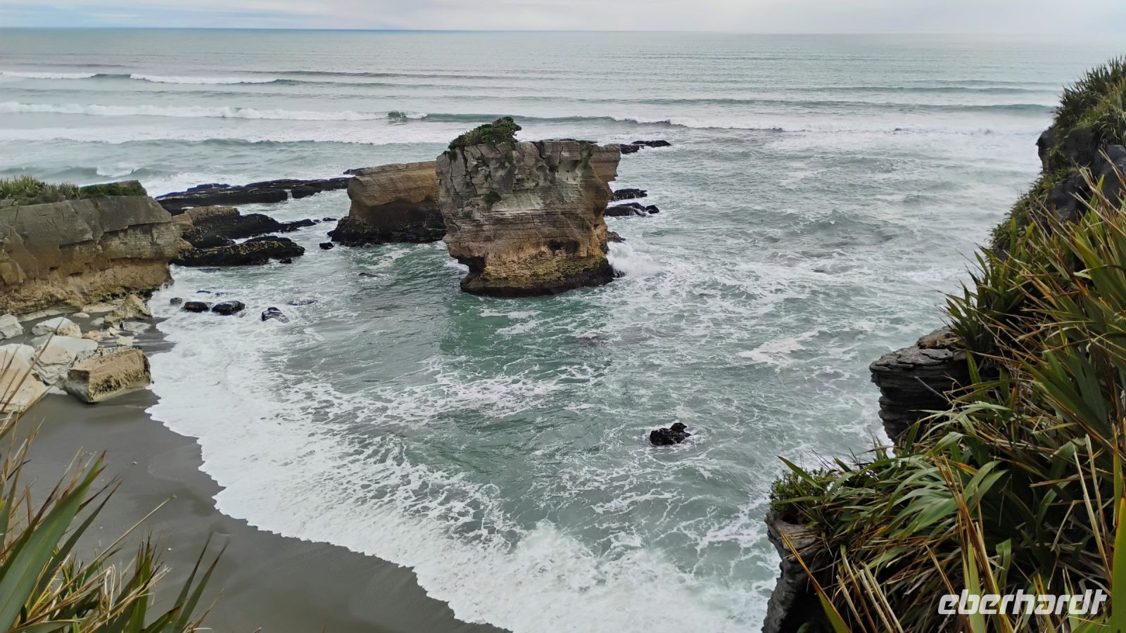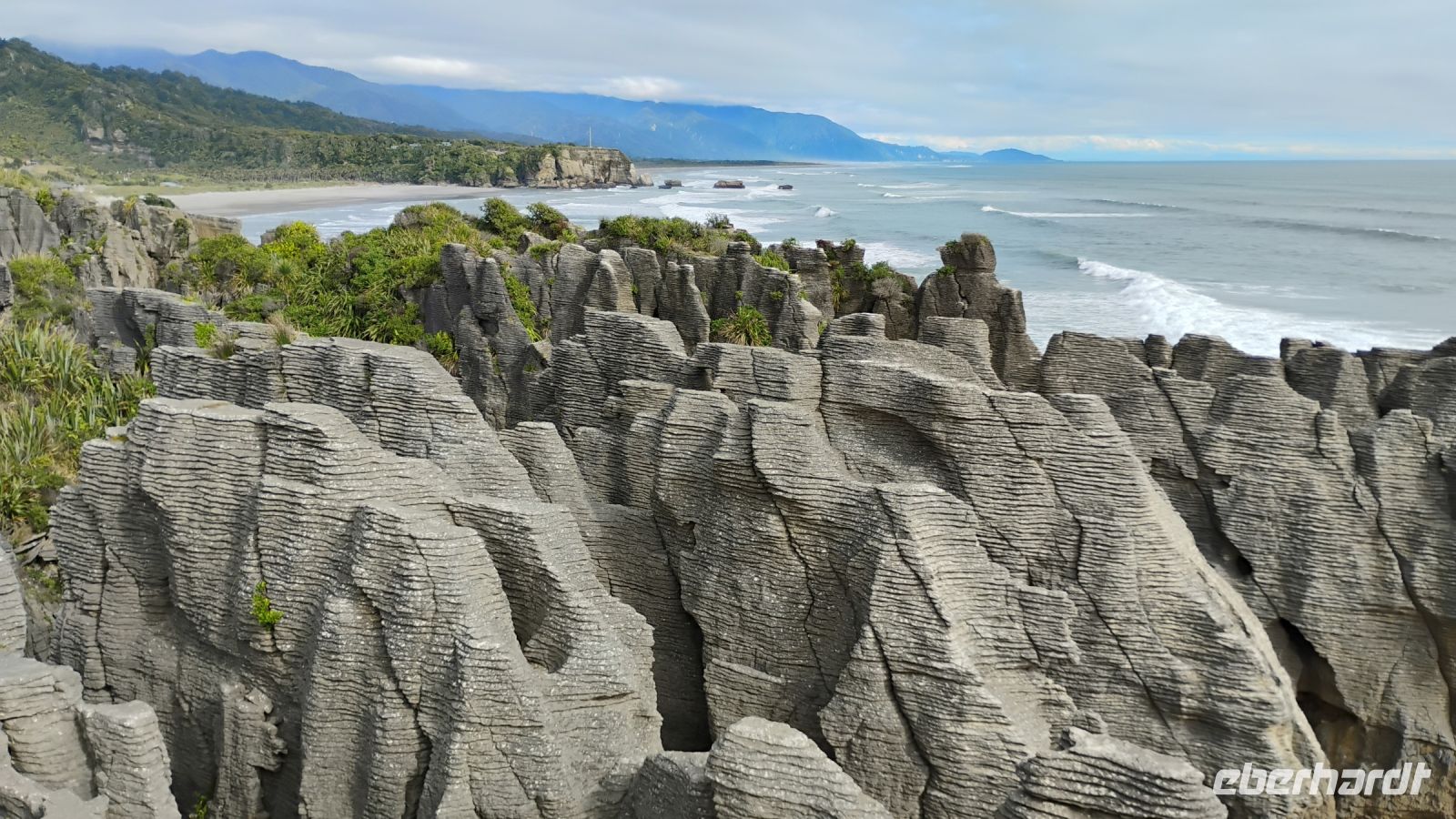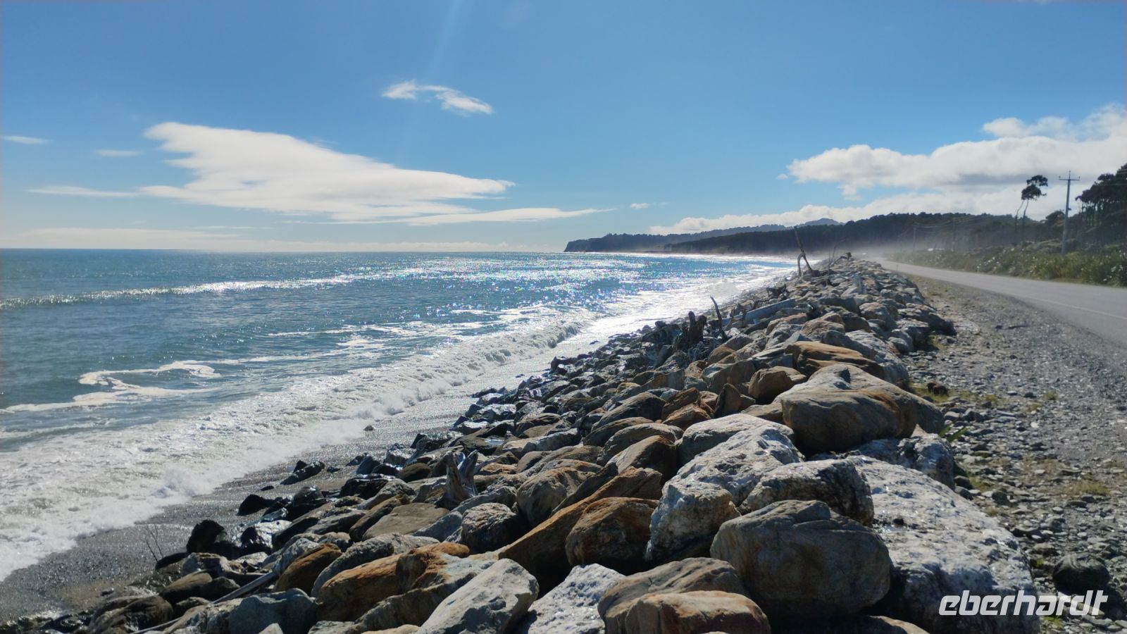 Dann setzten wir unsere Reise fort und legten immer wieder Fotostopps ein, etwa am Knights Point, wo wir die dramatische Küstenlinie bestaunten. Unsere Mittagspause verbrachten wir in dem kleinen Ort Haast.