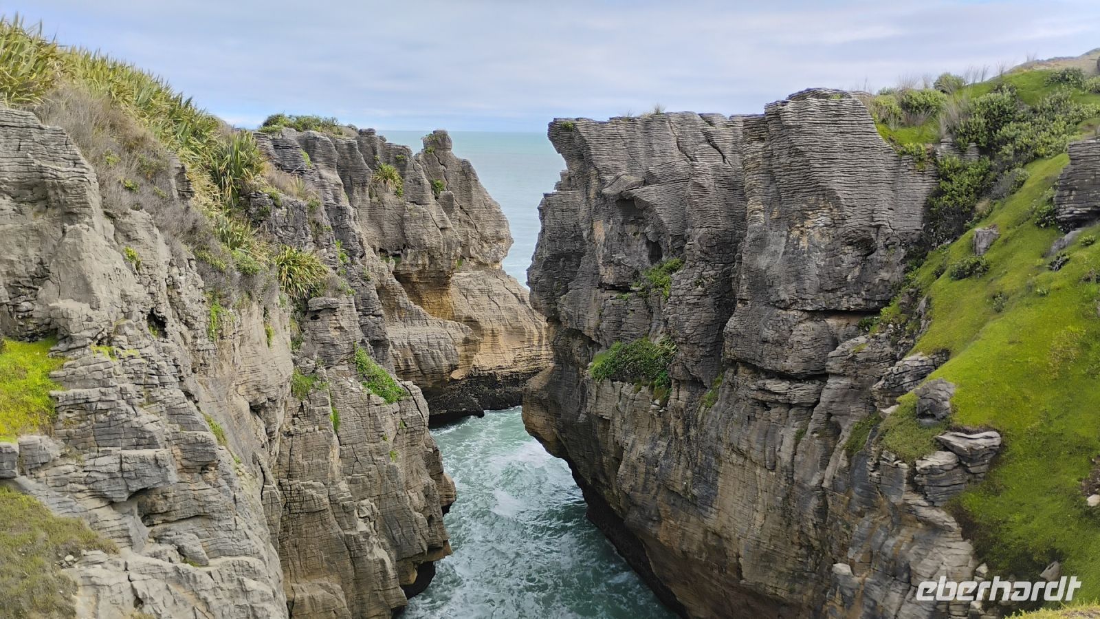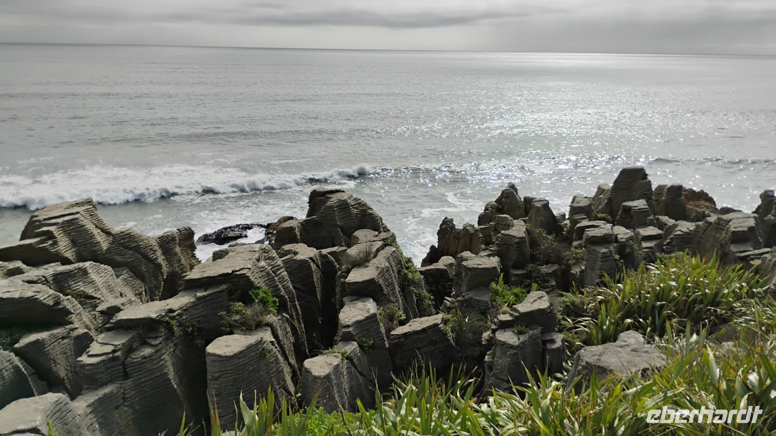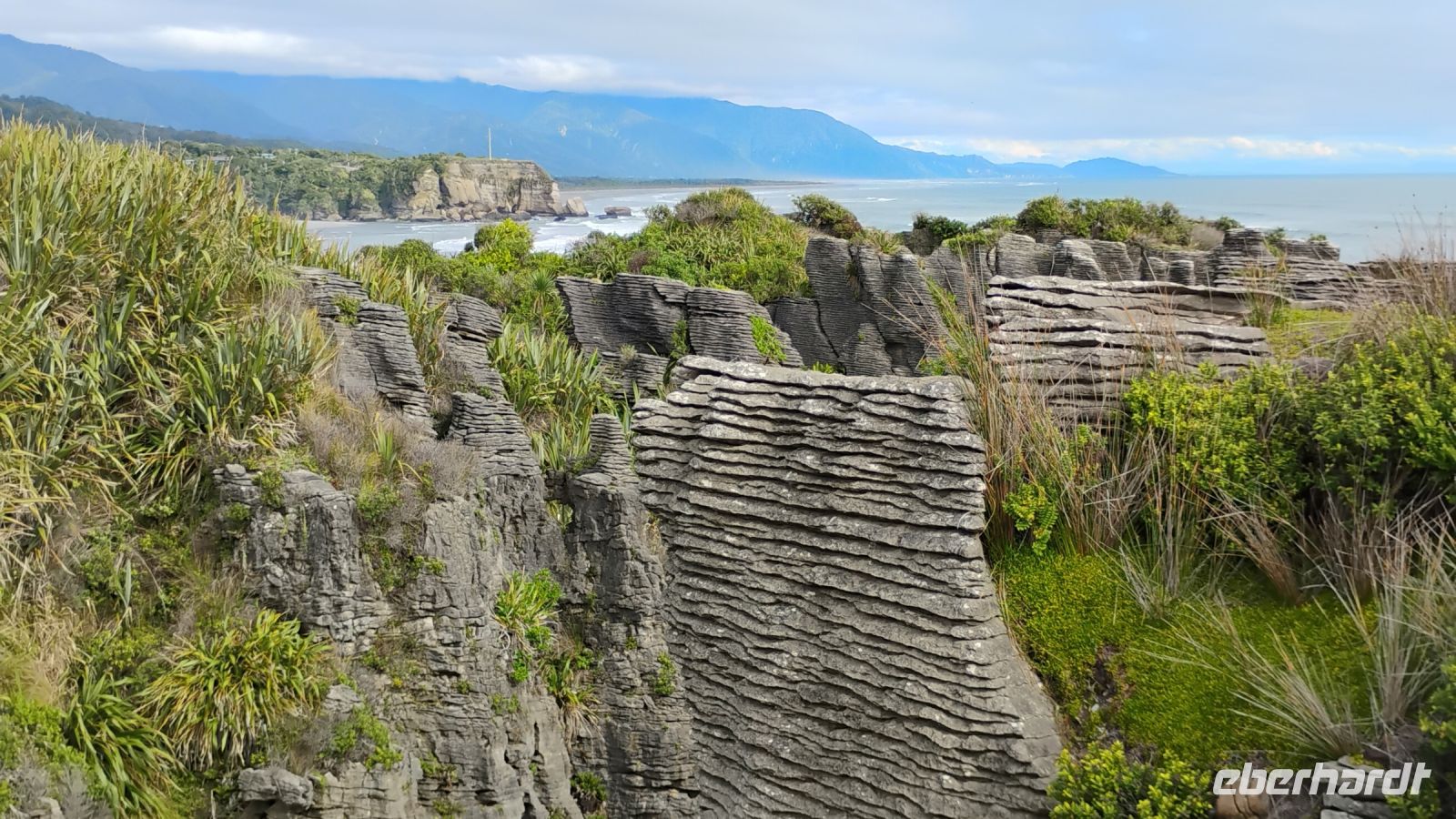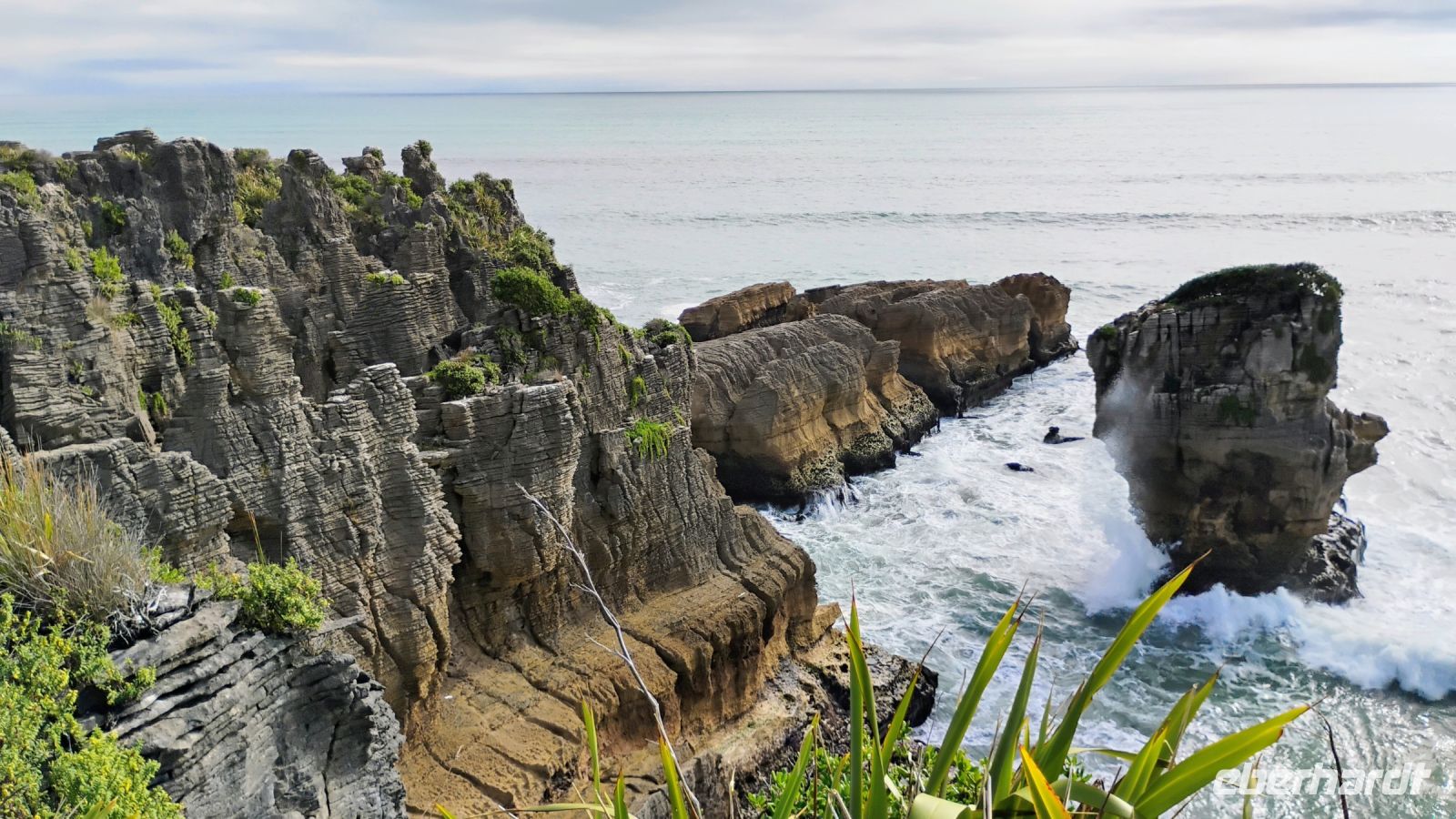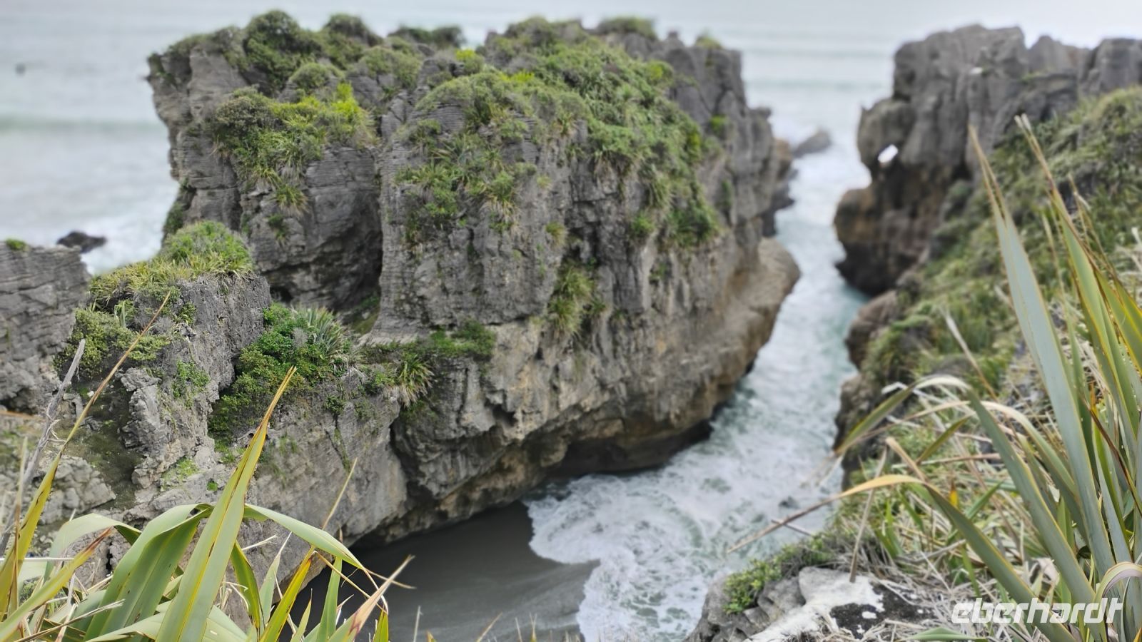 Dann setzten wir unsere Reise fort und legten immer wieder Fotostopps ein, etwa am Knights Point, wo wir die dramatische Küstenlinie bestaunten. Unsere Mittagspause verbrachten wir in dem kleinen Ort Haast.