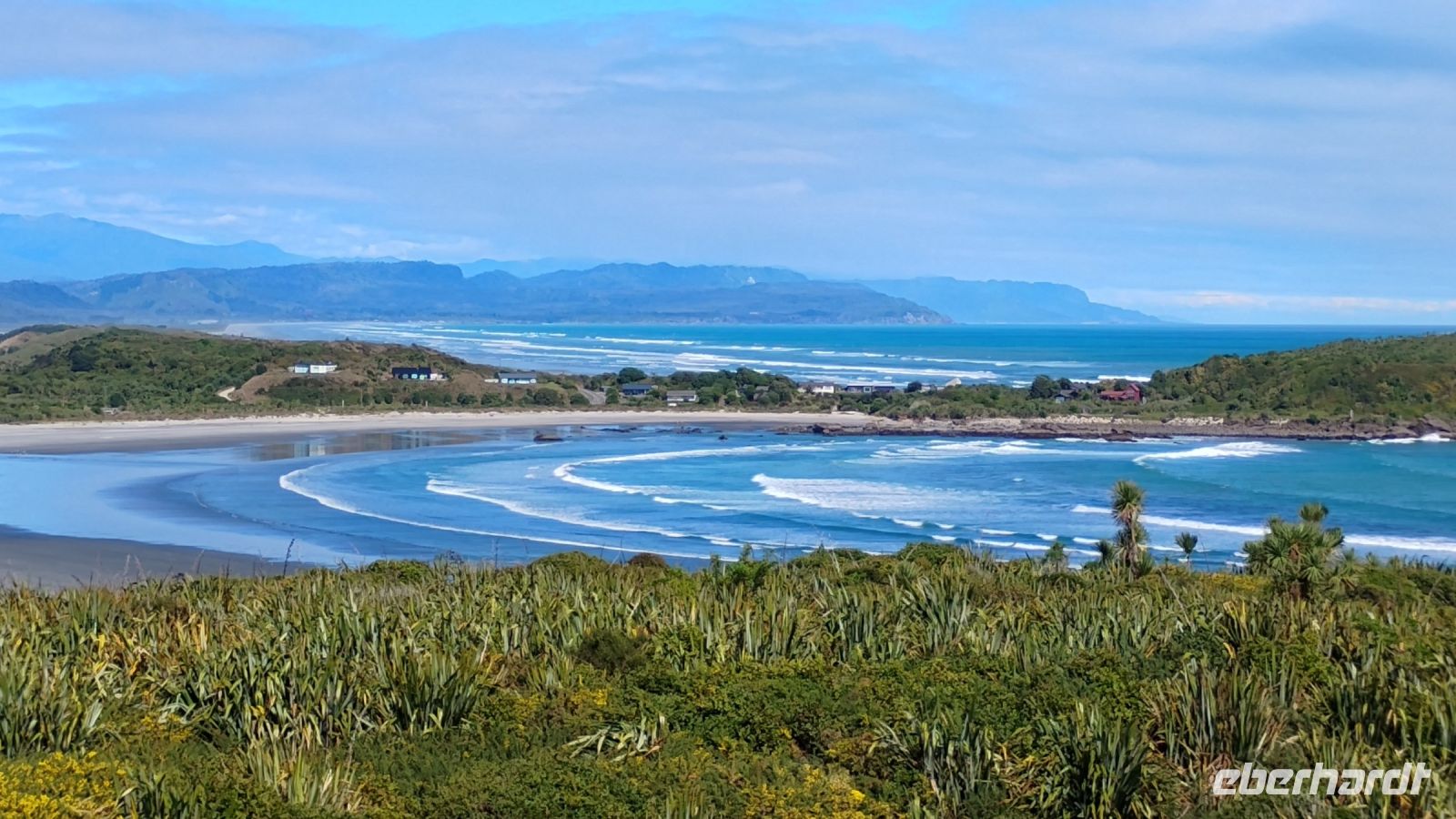 Weiter ging es durch Clinton, wo wir an eine besondere Anekdote erinnert wurden: Als US-Präsident Bill Clinton 1999 Neuseeland besuchte, erhielt er ein Foto einer Straßentafel, die die Orte Clinton und Gore in entgegengesetzten Richtungen zeigte – eine humorvolle Anspielung auf ihn und seinen damaligen Vizepräsidenten Al Gore. Seitdem wird die Straße zwischen den beiden Orten inoffiziell als „Presidential Highway“ bezeichnet.