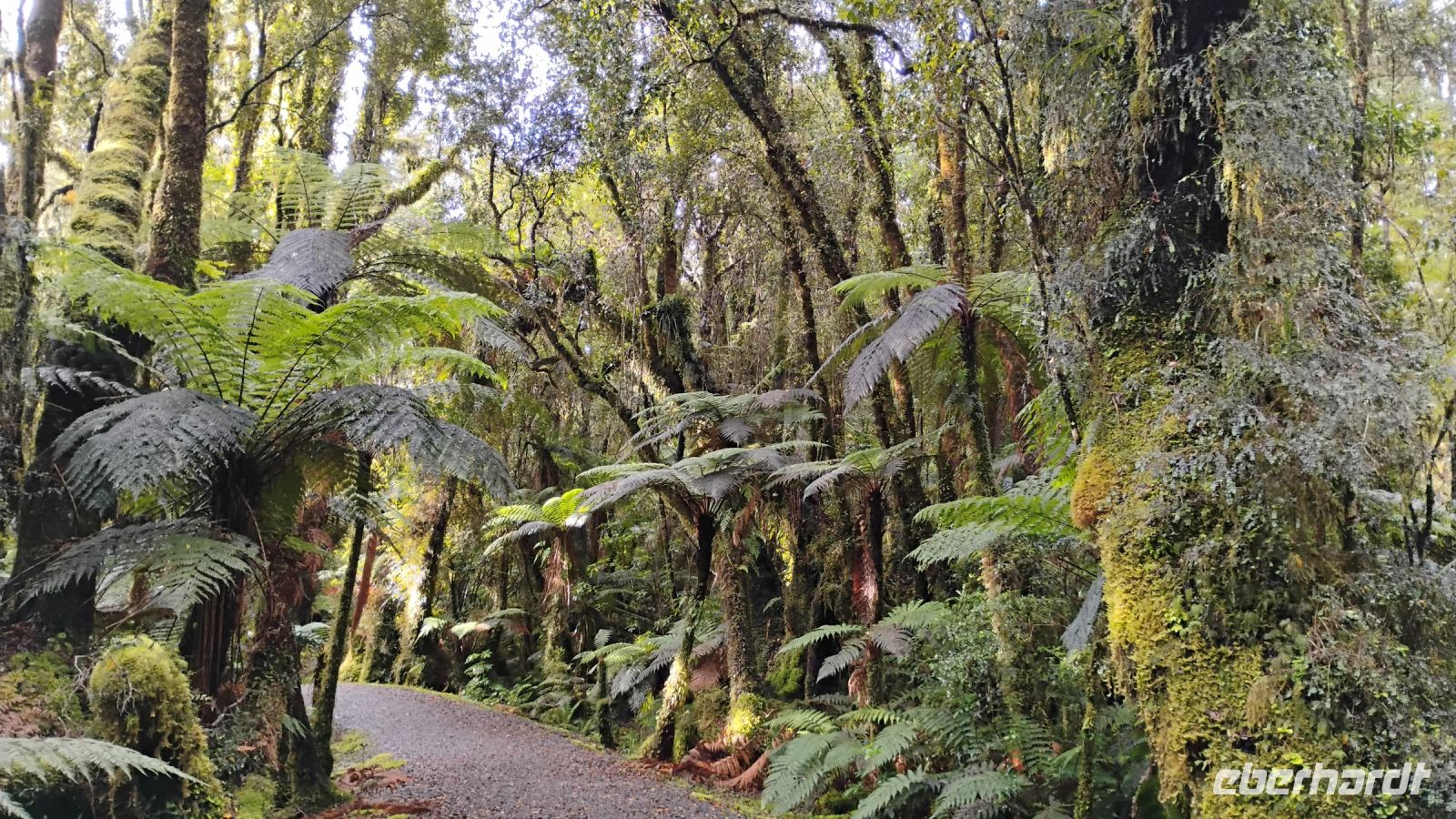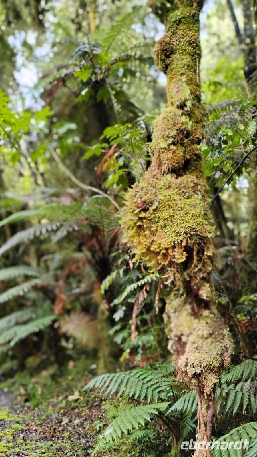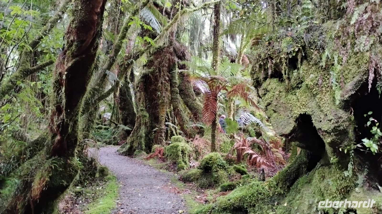 Nach einem kurzen Transfer erreichten wir Fox Glacier und unternahmen eine Wanderung auf dem Minnehaha Walk im Westland Tai Poutini National Park. Die Szenerie wirkte wie aus einem Märchen: Auf den Baumstämmen und Wurzeln wuchsen dicht an dicht Moose, Flechten, Farne und andere Pflanzen in den unterschiedlichsten Grüntönen. Jeder Blick offenbarte neue Details – von feinen Blattstrukturen bis hin zu weichen Moospolstern –, sodass der Wald eine fast unwirkliche, verwunschene Atmosphäre ausstrahlte. Ein Anblick, der uns staunen ließ und dessen besondere Stimmung sich kaum in Fotos einfangen lässt.