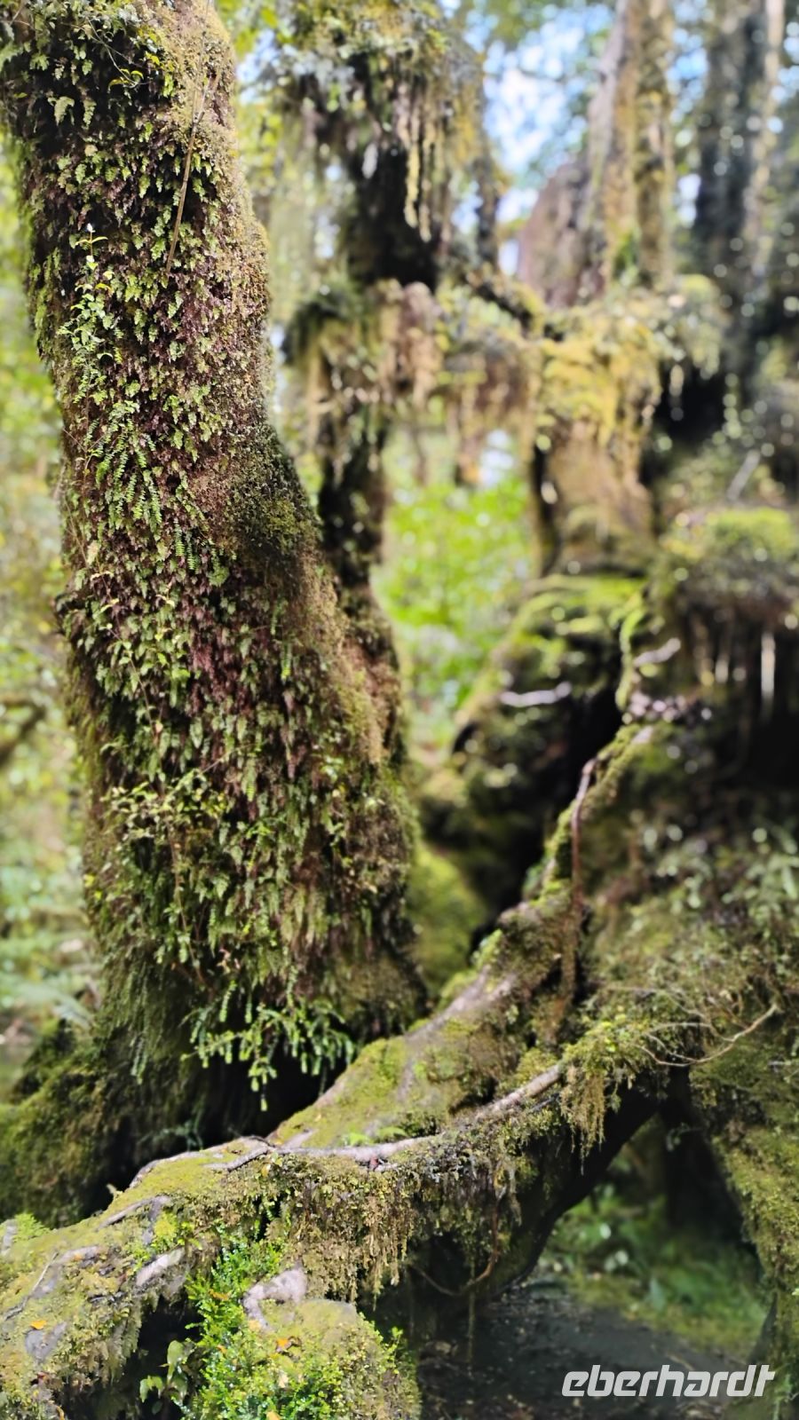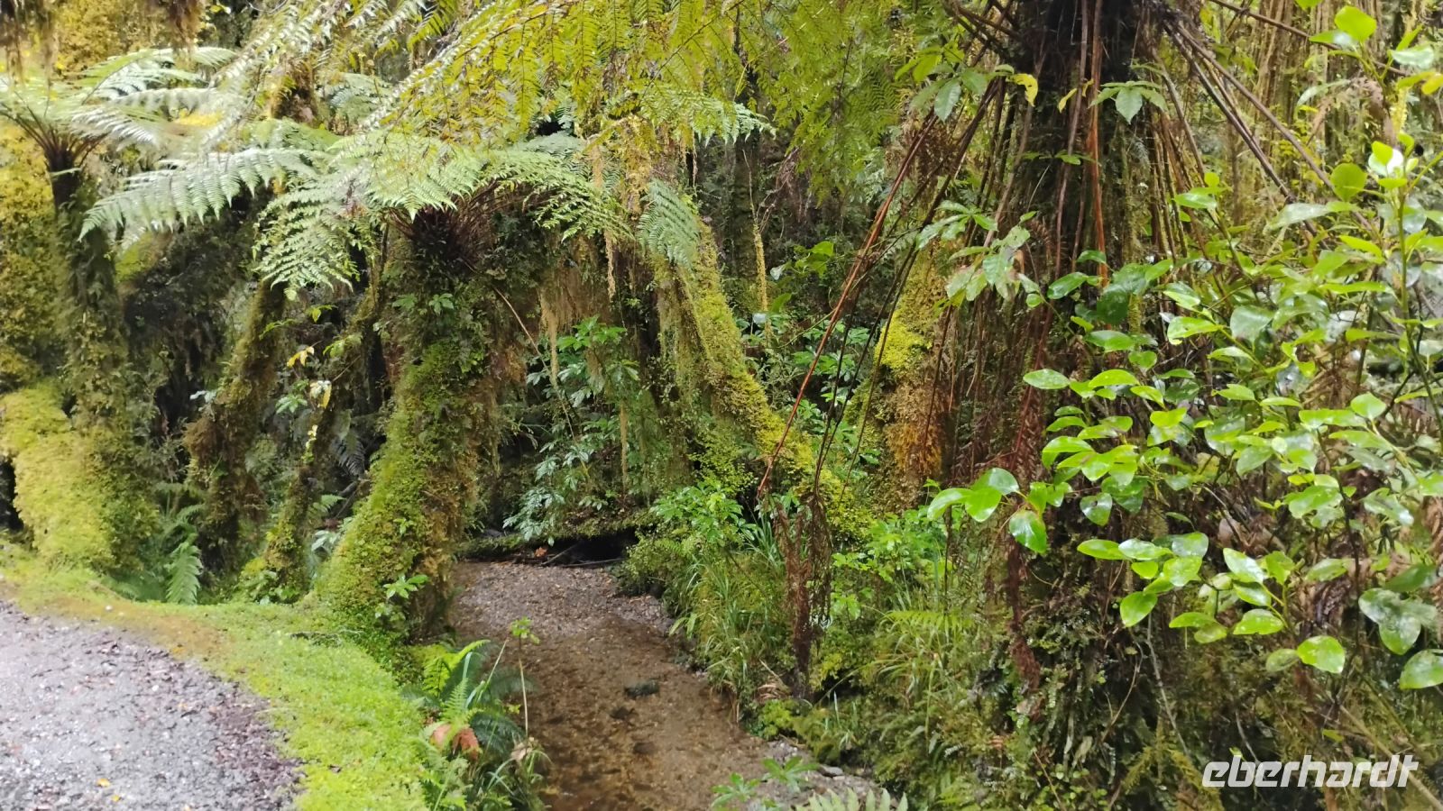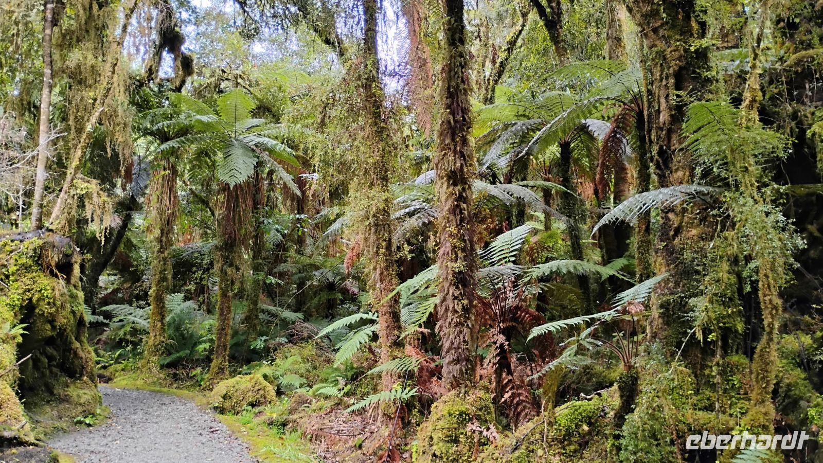 Nach einem kurzen Transfer erreichten wir Fox Glacier und unternahmen eine Wanderung auf dem Minnehaha Walk im Westland Tai Poutini National Park. Die Szenerie wirkte wie aus einem Märchen: Auf den Baumstämmen und Wurzeln wuchsen dicht an dicht Moose, Flechten, Farne und andere Pflanzen in den unterschiedlichsten Grüntönen. Jeder Blick offenbarte neue Details – von feinen Blattstrukturen bis hin zu weichen Moospolstern –, sodass der Wald eine fast unwirkliche, verwunschene Atmosphäre ausstrahlte. Ein Anblick, der uns staunen ließ und dessen besondere Stimmung sich kaum in Fotos einfangen lässt.